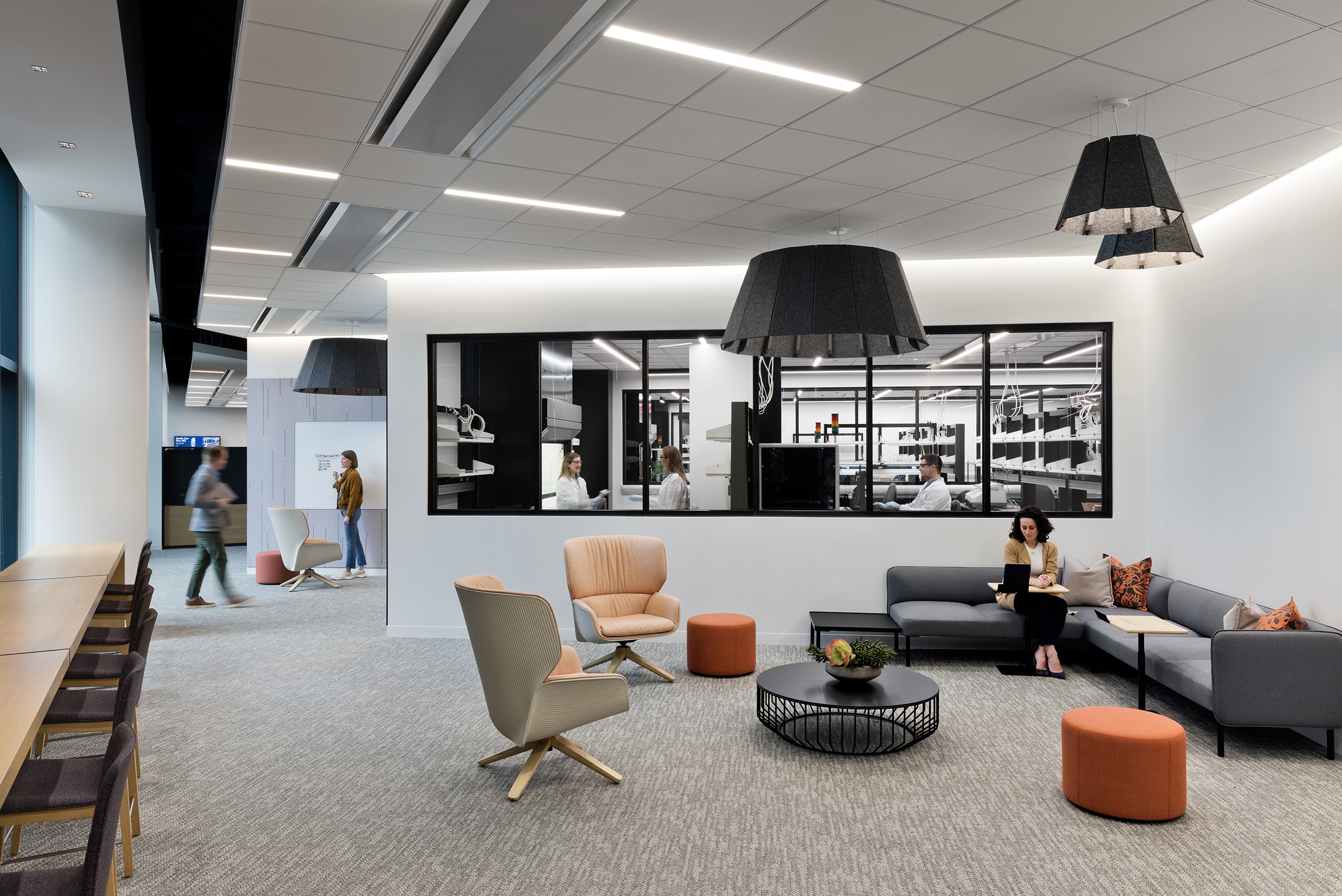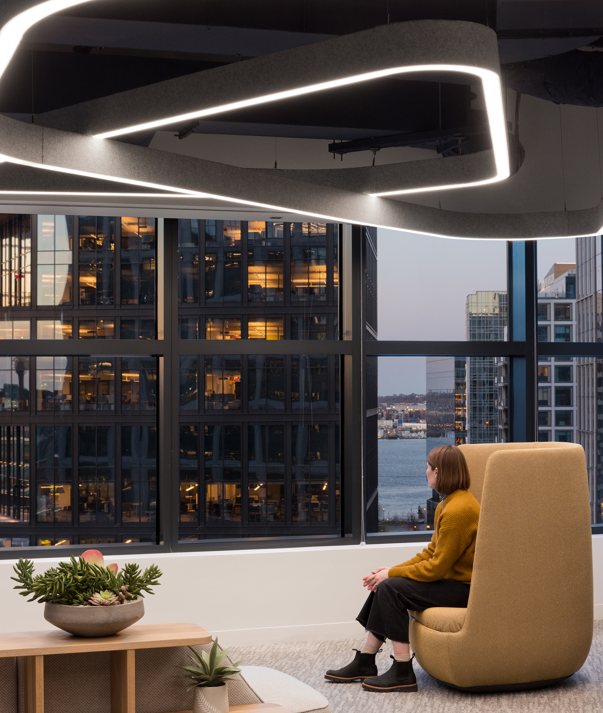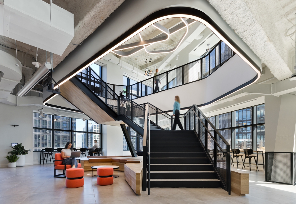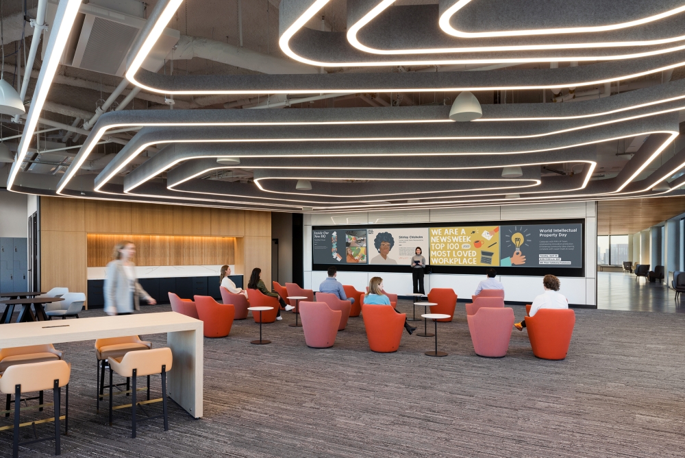 Entry DescriptionThis newly unveiled headquarters in Boston’s Seaport District, a 600,000SF space, unites over 1,000 employees under one roof. This move strengthens the organization's mission to pioneer the future of cancer care. The lighting, a key feature of the overall design, enhances movement throughout and fosters interconnectivity between various areas. Thoughtfully curated lighting elements are seamlessly integrated throughout, complementing the building's unique architecture while creating inviting spaces for collaboration and creativity. A series of custom curvilinear suspended organic forms of light represents the journey to find a cure, symbolizing progression and hope. This journey starts at the main town hall stairs at level 6, continues up the more intimate stacked corner spaces of the office and culminates as a full ceiling expression at the 16th floor. The labs, serving as the emotional and visual heart of the campus, are strategically visible from surrounding workspaces, promoting collaboration and innovation. To foster the circadian rhythm of shift workers and lab researchers, especially in spaces with limited natural light, circadian-boosted lighting is employed to enhance productivity and well-being. Overall, the new headquarters reflects the organization's commitment to cutting-edge cancer research while prioritizing the well-being and collaboration of its employees.