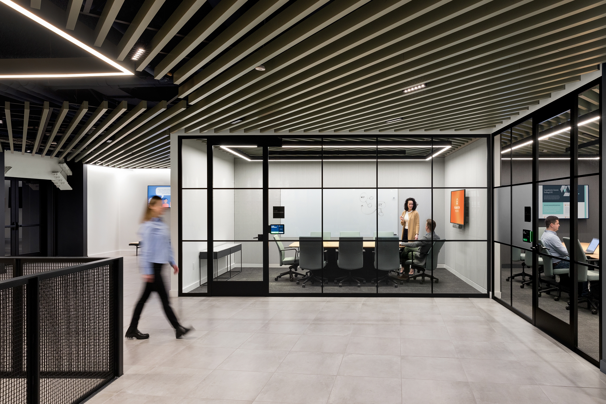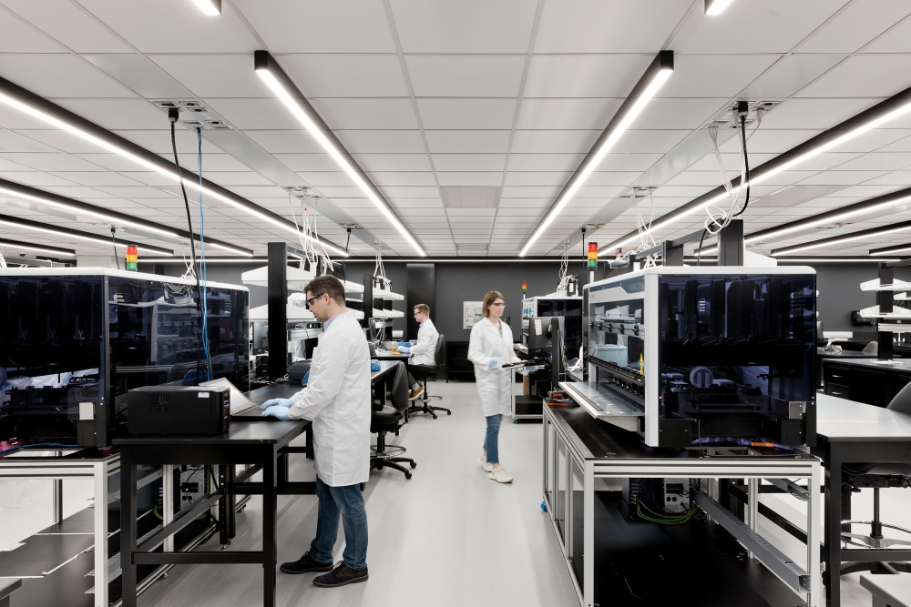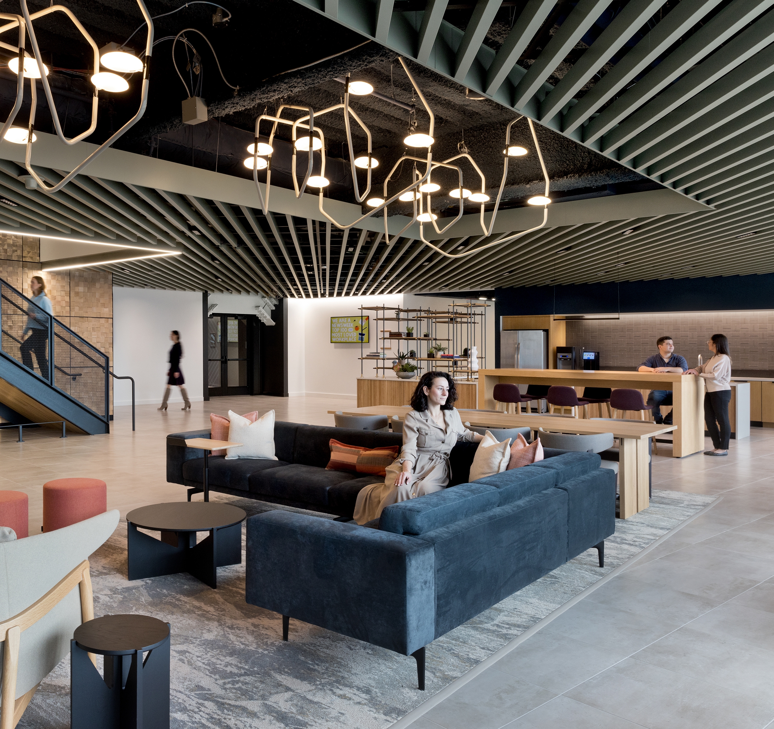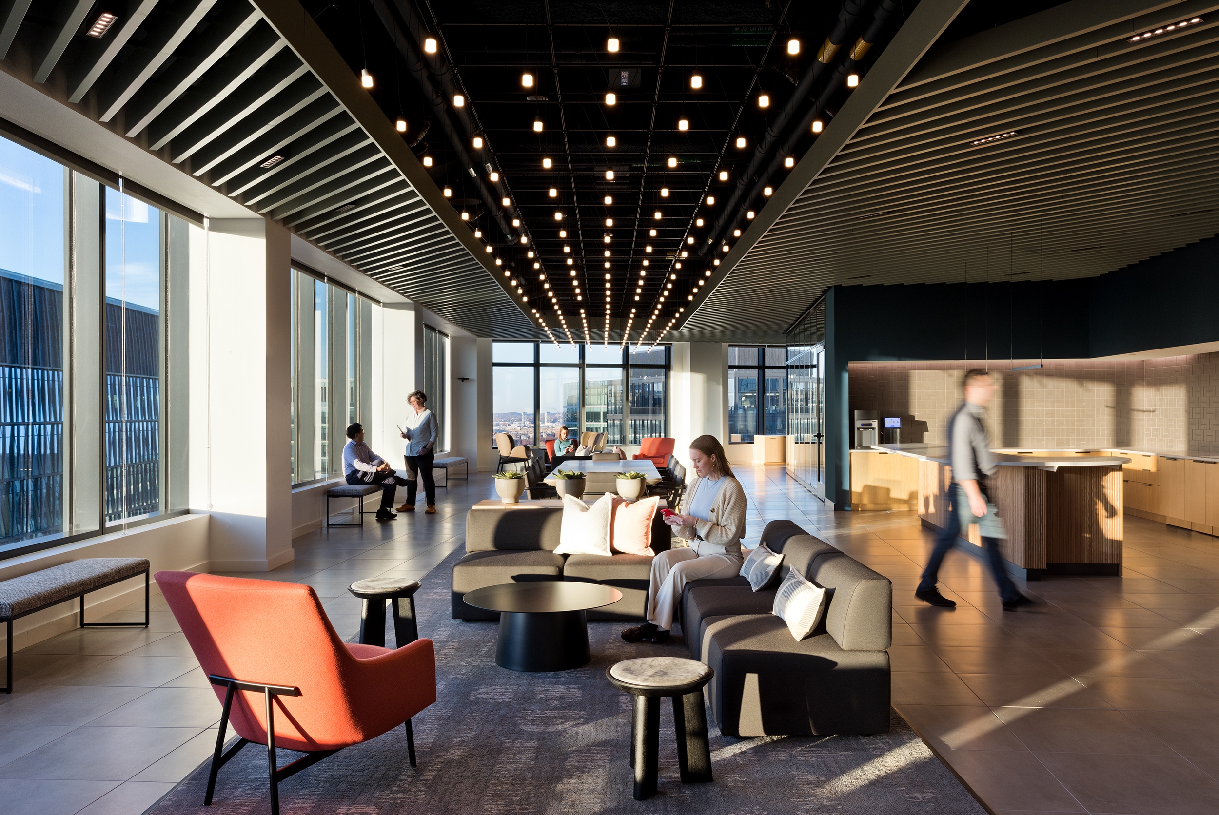 Entry DescriptionThis newly unveiled headquarters in Boston’s Seaport District, a 600,000SF space, unites over 1,000 employees under one roof. This move strengthens the organization's mission to pioneer the future of cancer care. The lighting, a key feature of the overall design, enhances movement throughout and fosters interconnectivity between various areas. Thoughtfully curated lighting elements are seamlessly integrated throughout, complementing the building's unique architecture while creating inviting spaces for collaboration and creativity. A series of custom curvilinear suspended organic forms of light represents the journey to find a cure, symbolizing progression and hope. This journey starts at the main town hall stairs at level 6, continues up the more intimate stacked corner spaces of the office and culminates as a full ceiling expression at the 16th floor. The labs, serving as the emotional and visual heart of the campus, are strategically visible from surrounding workspaces, promoting collaboration and innovation. To foster the circadian rhythm of shift workers and lab researchers, especially in spaces with limited natural light, circadian-boosted lighting is employed to enhance productivity and well-being. Overall, the new headquarters reflects the organization's commitment to cutting-edge cancer research while prioritizing the well-being and collaboration of its employees.
