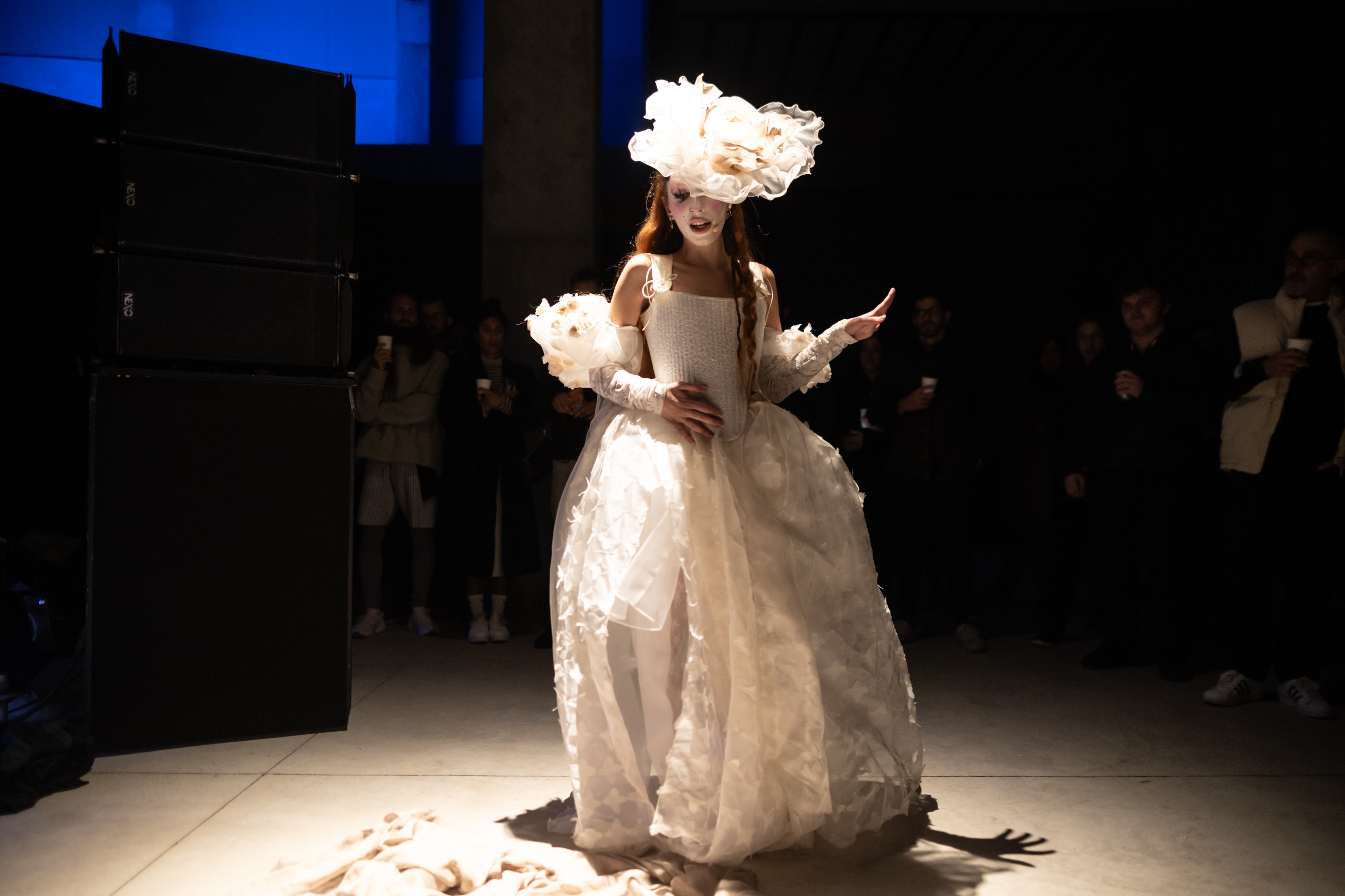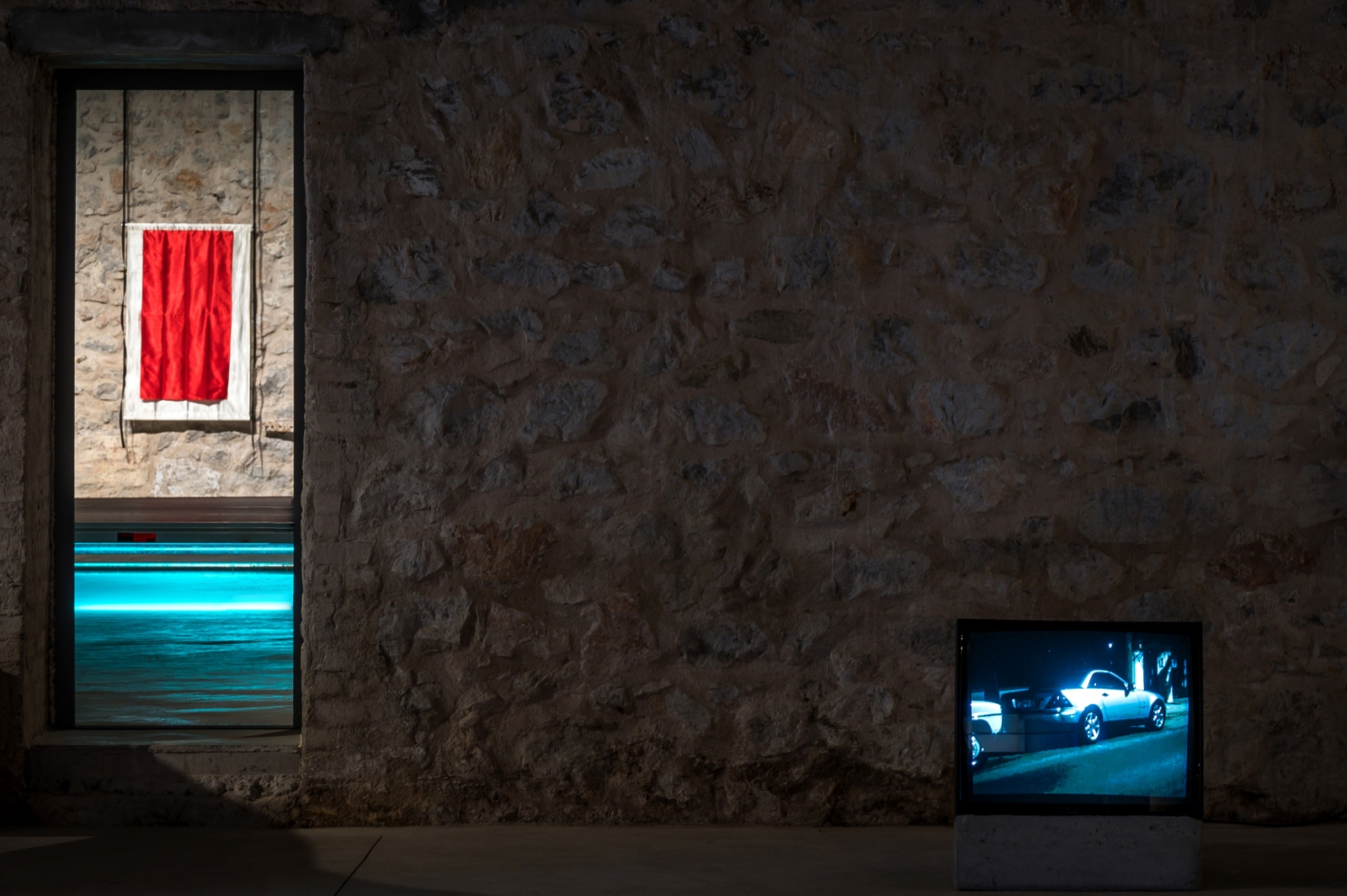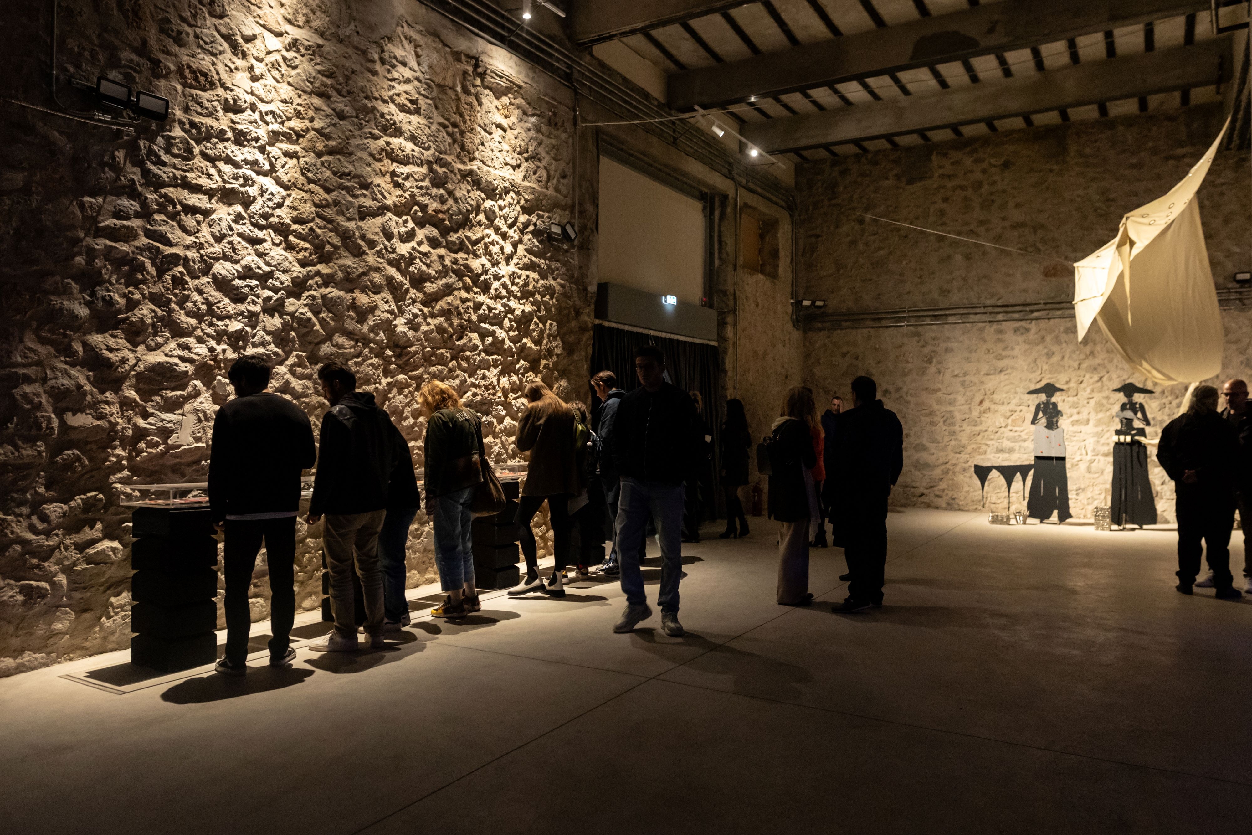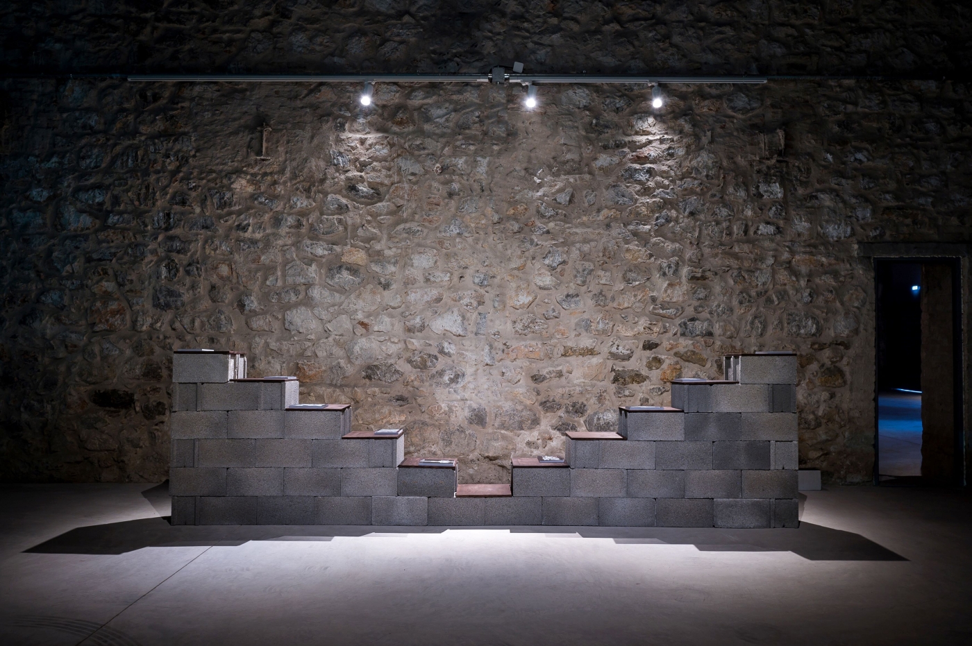 During the opening night, the dark parts of the exhibition were filled with pools of light, marking the route of a performance, thus creating a momentary stage, with the audience still in the darkness of their wondering.