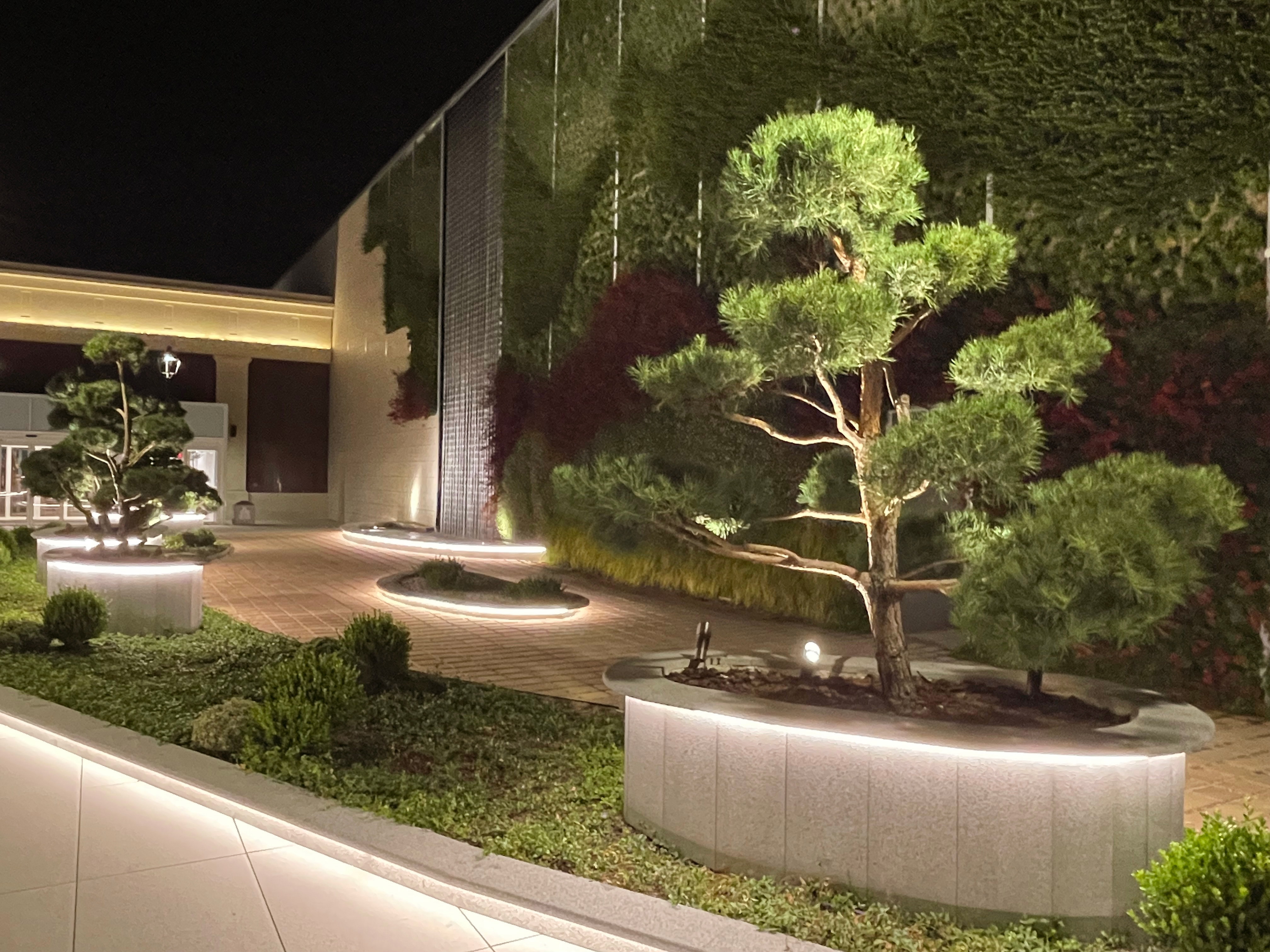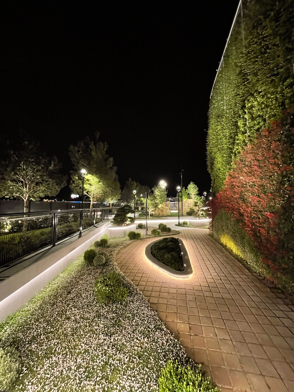 All lighting fixtures were carefully chosen and integrated into the architecture and vegetation to be as much as possible invisible to the eye, driving the light to where was needed, and making sure that being day or night, the public could fully enjoy the experience.