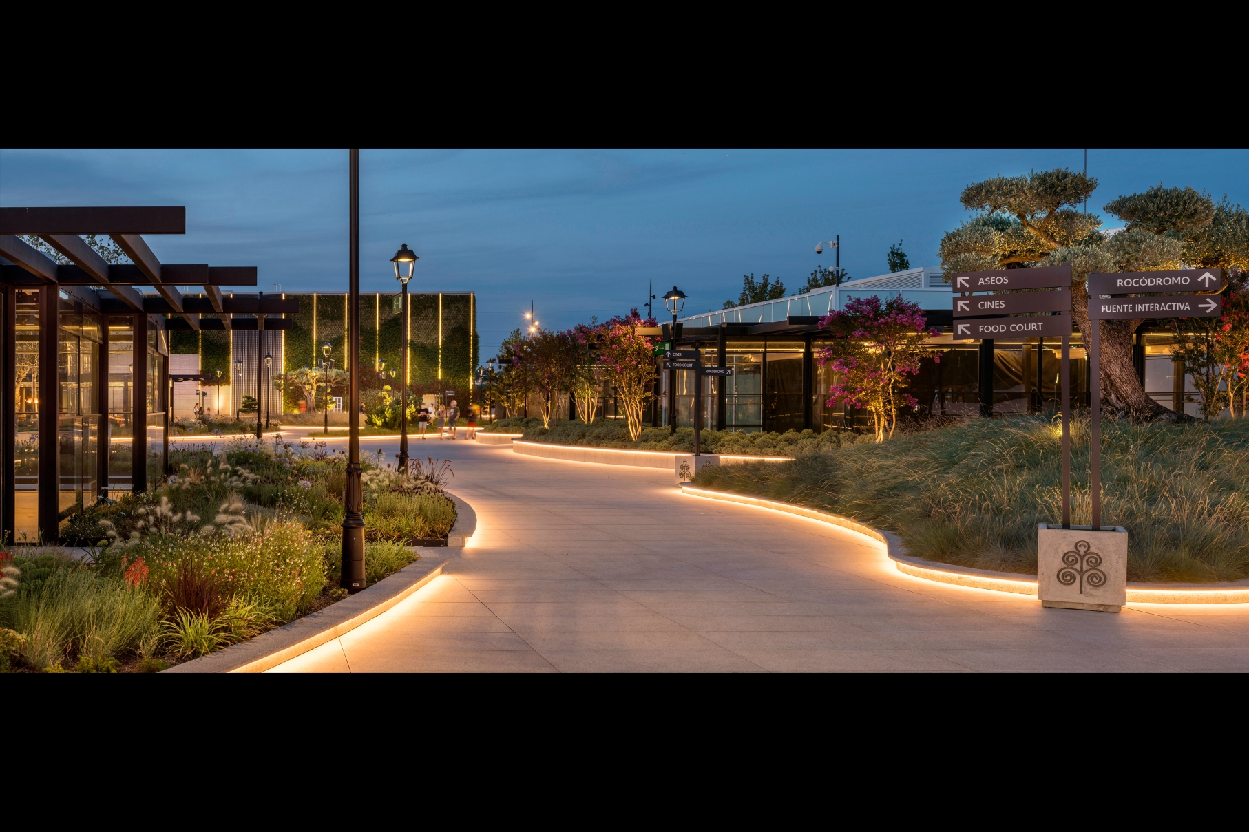 Located beside the Gran Plaza 2 Shopping Mall, the transformed area would connect the inner gardens with the outside, featuring walk paths, restaurant terraces, playgrounds including a pirate ship, a digital cinema façade, climbing structures, an extensive fountain for kids to play in the summer days, an exquisite vegetation layout.. all, smoothly designed and integrated with one another, not only by the architecture and the landscape, but also through lighting becoming part of the experience.