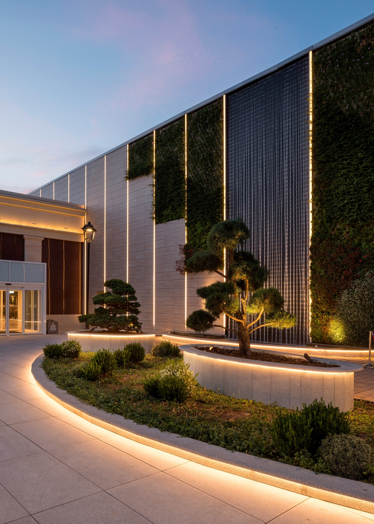 The lighting comes to play a key role to connect inside and outside of the building,plus enhance the features of each of the different elements, while recreating an atmosphere of magical harmony.