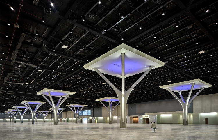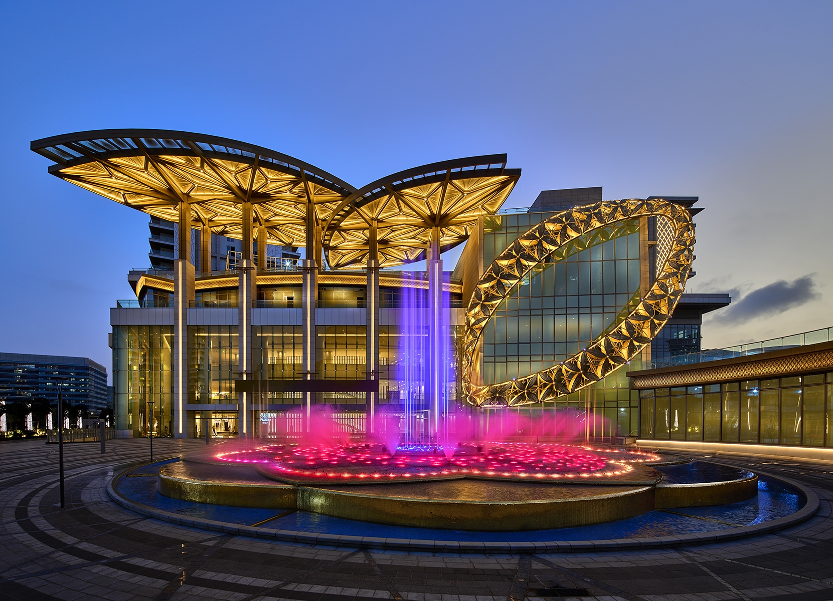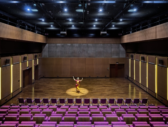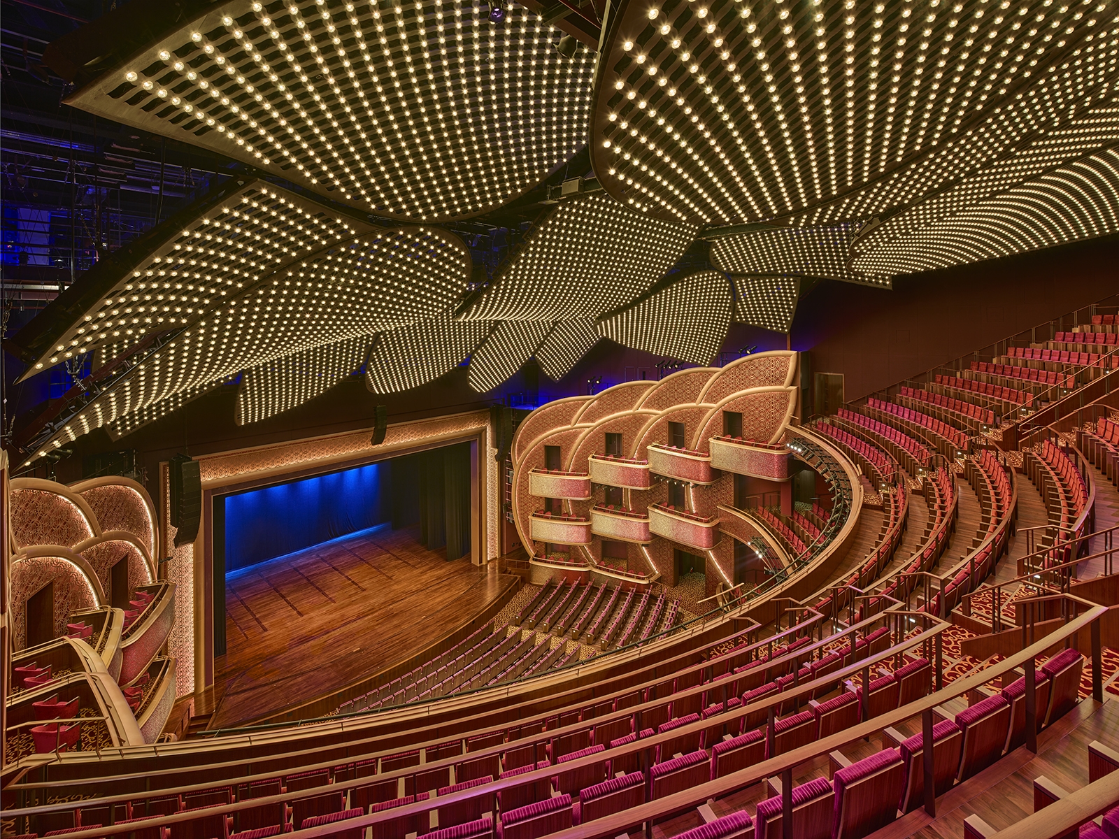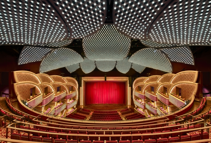 Sustainability ApproachWhile retaining all its beauty, the project was also LEED Platinum Certified, a testament to its sustainability. The owner requested the project to be a "Technology Showcase". Every light fixture was individually controlled and programmed with a modern DALI control system, the largest ever built by the vendor. Dynamic lighting included 4 channel RGBA DMX controlled LEDs, all coordinated through the same lighting control system. All combined, there are over 14,500 unique control zones. The advanced control system also included photocells for the expansive 4 story daylit pre-function area, as well as occupancy sensors in all non-performance spaces. ALL light fixtures are high-efficiency LED, with the majority of light fixtures are sourced in this region of India, reducing the carbon footprint of the project.