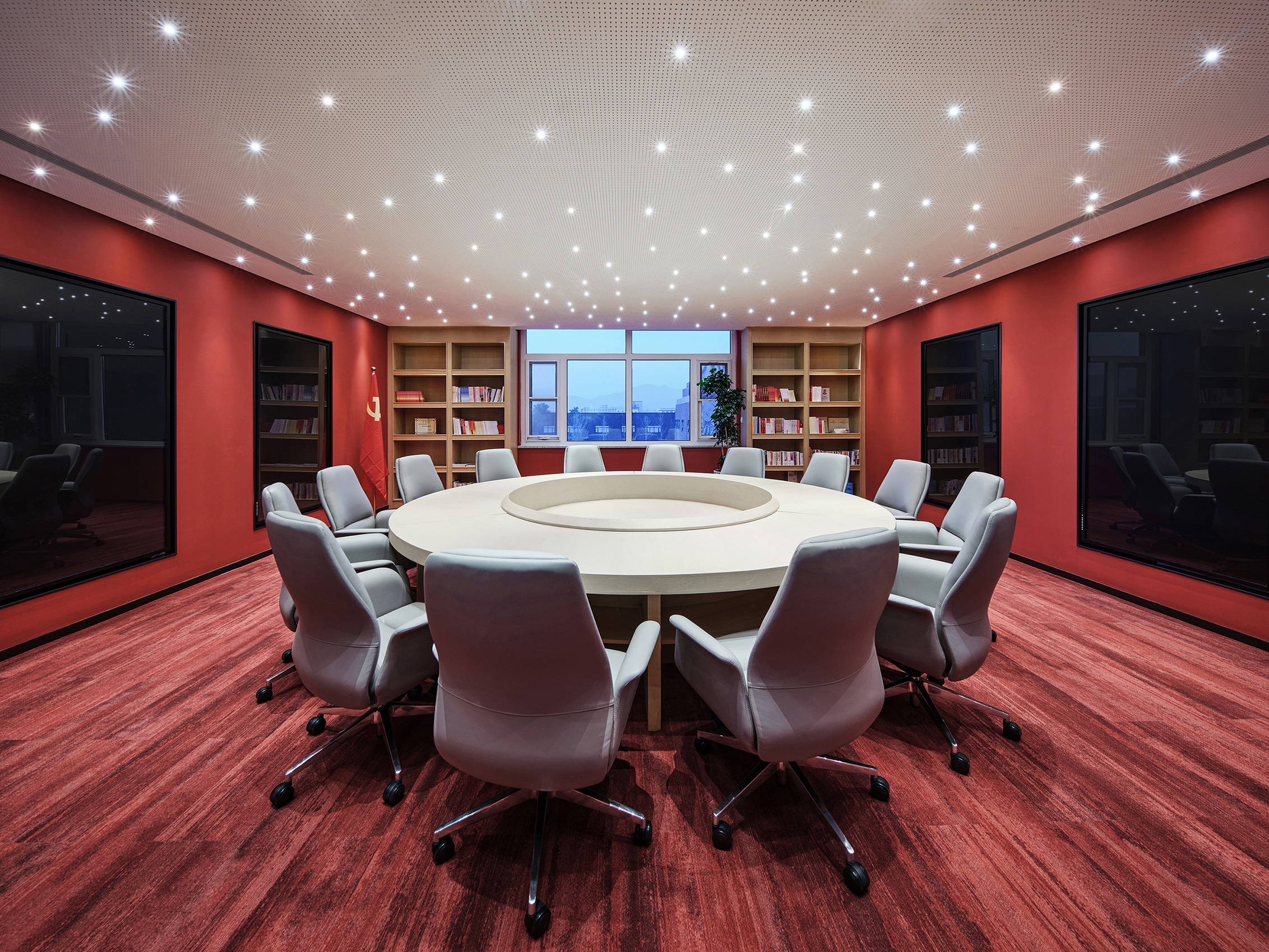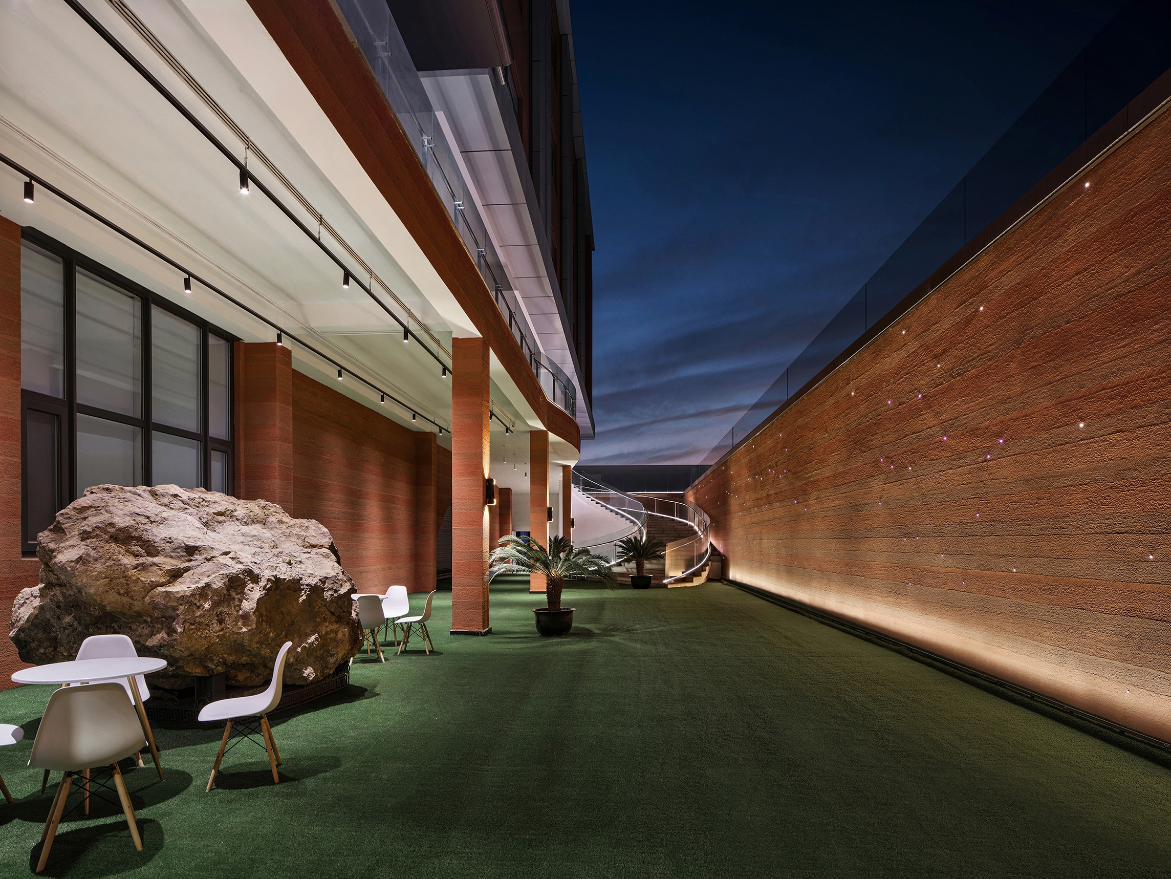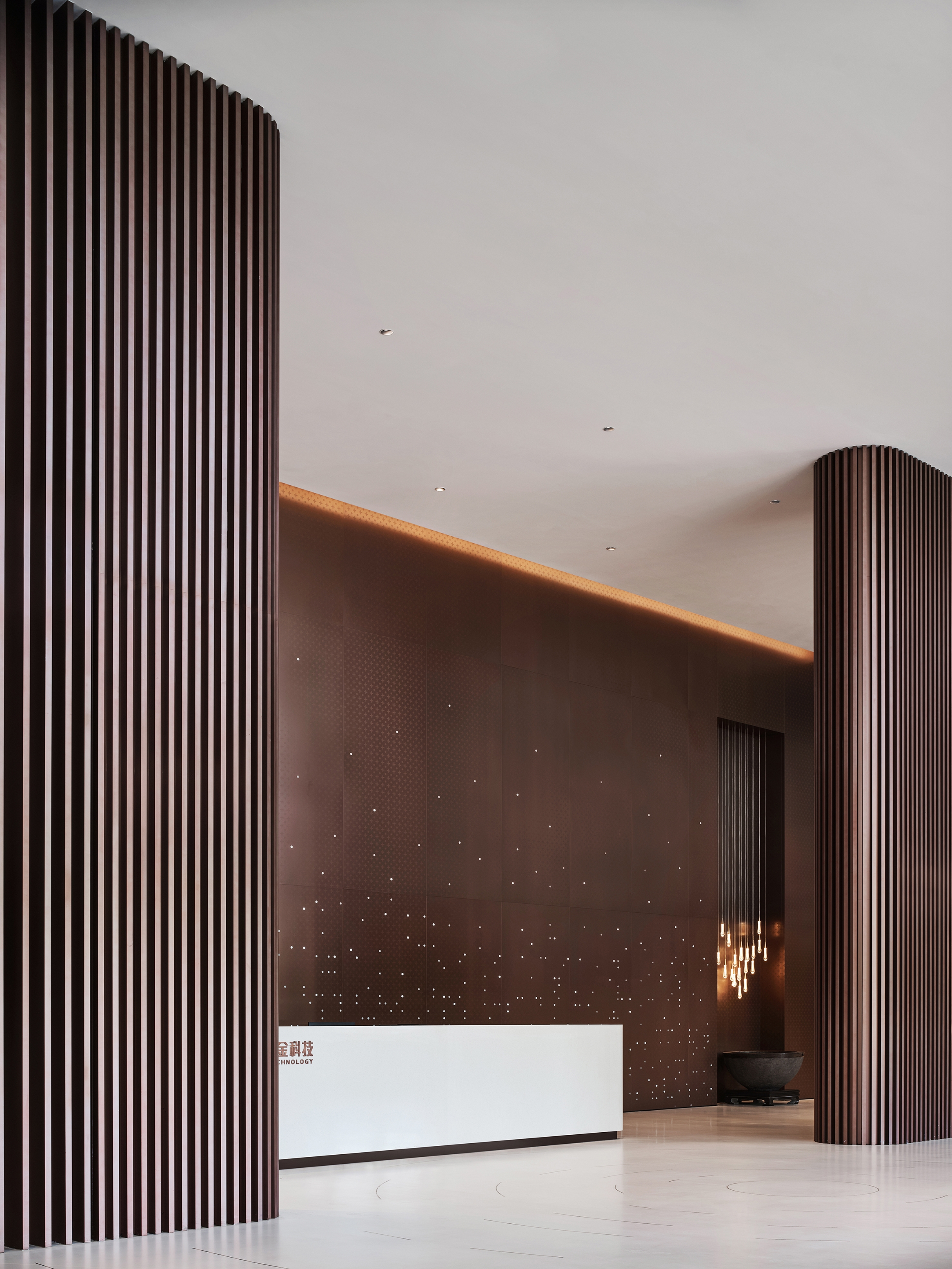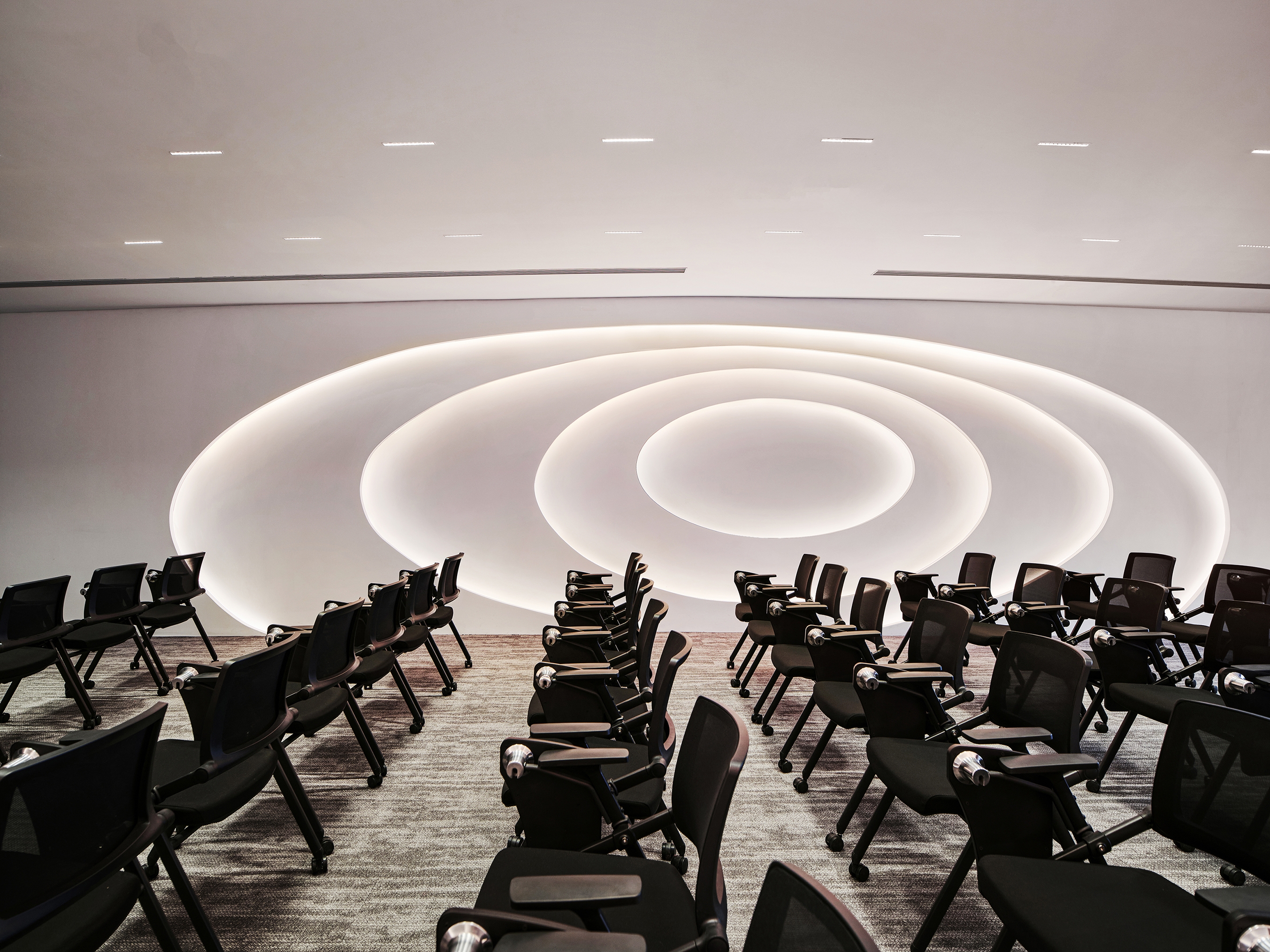 The office space chooses healthy and comfortable lighting close to natural light, creates different atmospheres with different light colors, and forms a bright and mild lighting environment by matching with each other. In different partitions of the space, geometric dot lighting or arc lighting design is integrated, which means nourishing O. R. G with wisdom rain and dew to make it endless.