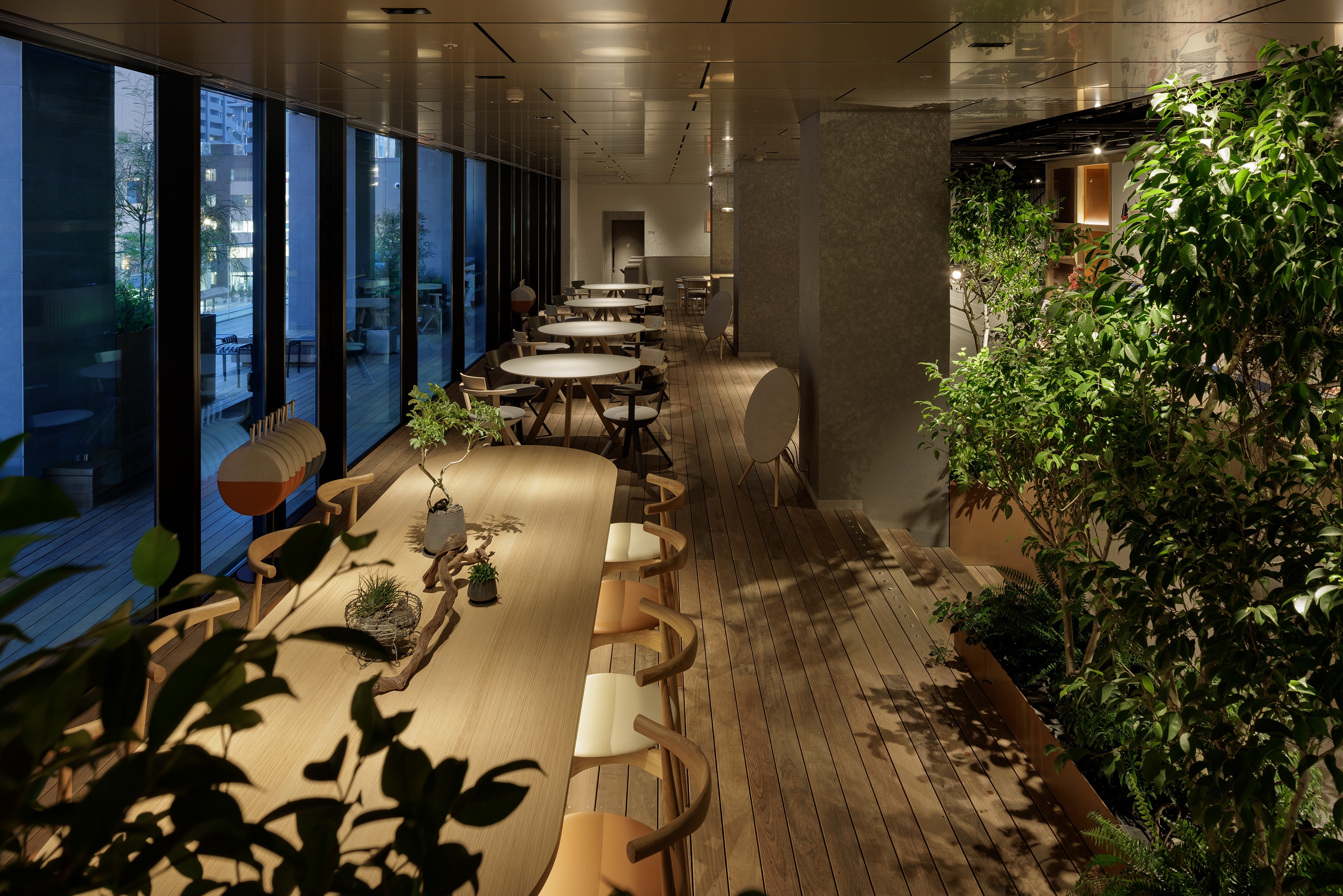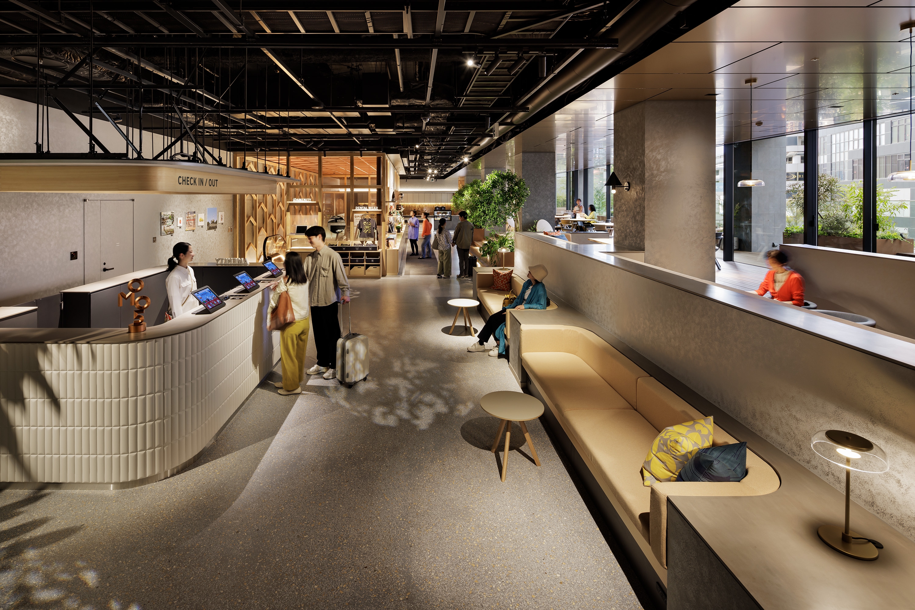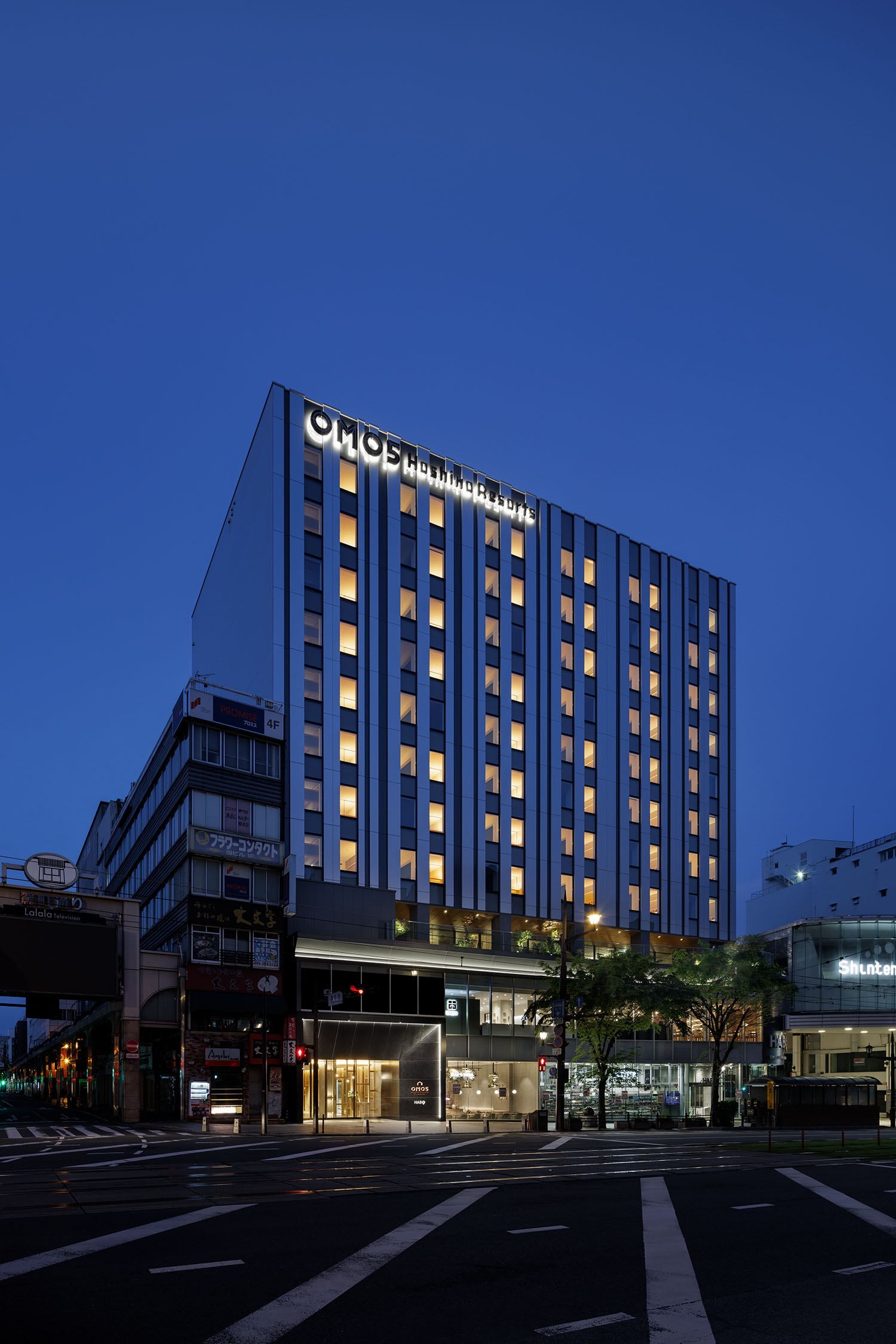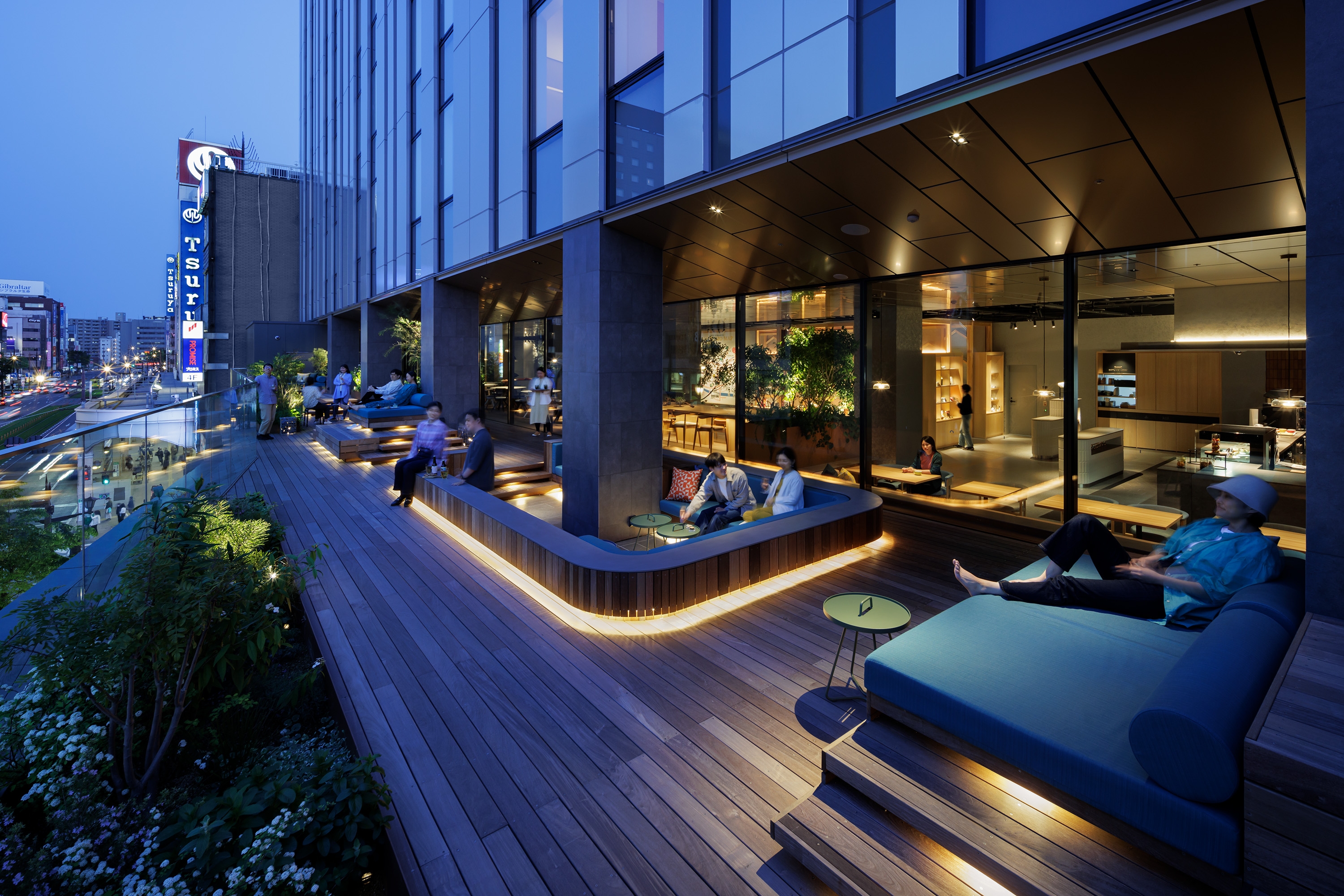 Sustainability ApproachFour scenes were created for the entire hotel: daytime, after-sunset, nighttime, and late- night. Energy was reduced by setting scenes according to the time of day, such as reducing the overall brightness at night. The exterior of the hotel was not lit up, but rather the light leaking from the guest rooms was used to create the nightscape as it is. The lighting plan was designed to be close to the local community, just like the hotel's concept of connecting guests with the charm of the local area.