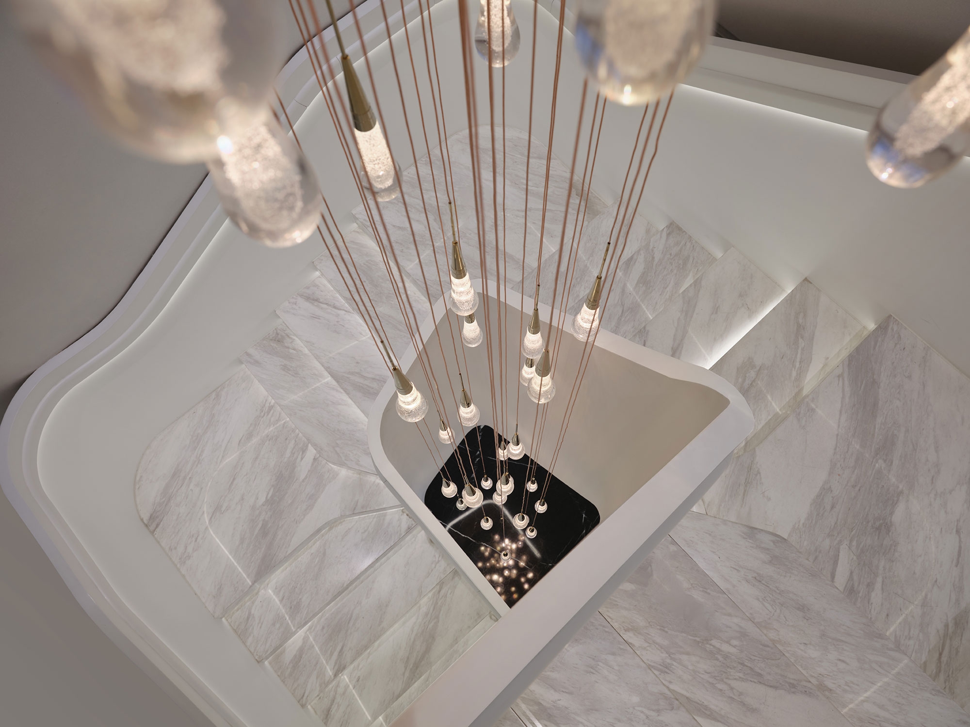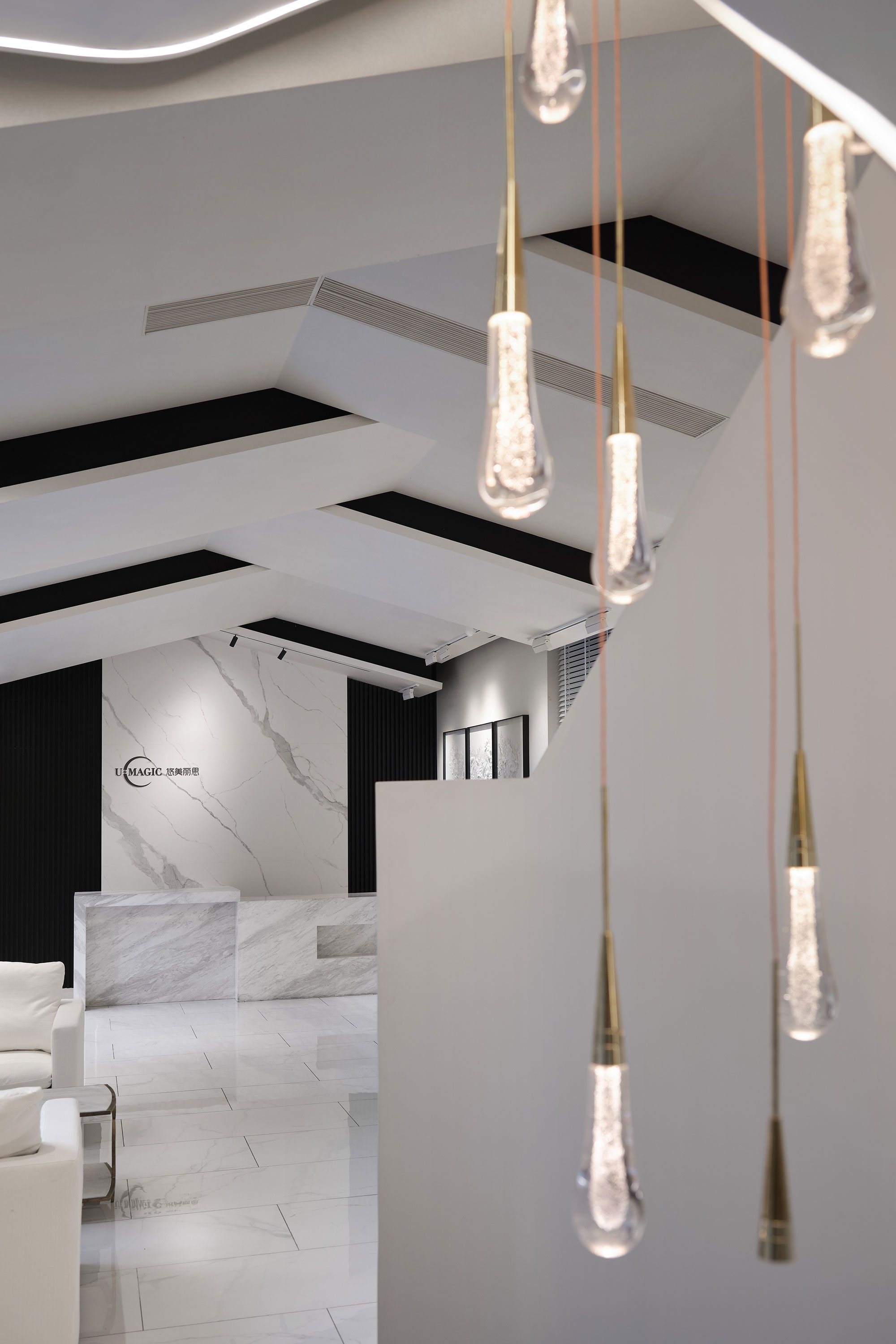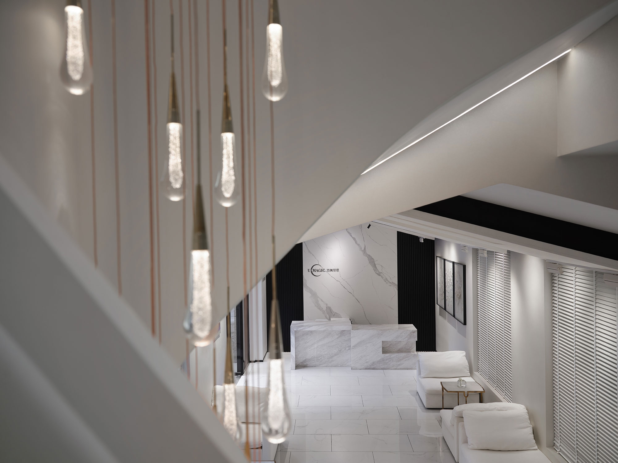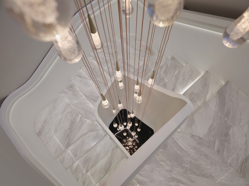 The design follows a balanced spatial construction principle to reconstruct contemporary beauty and commercial spaces using a combination of lines and curves. The transition of different blocks within the space reorganizes the structure, creating overlapping and undulating forms that evoke a sense of mystery and romance. These immersive spatial transitions unfold a captivating narrative, enhanced by the interplay of light and shadow.