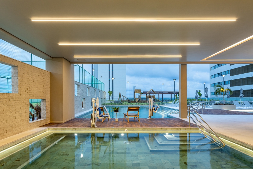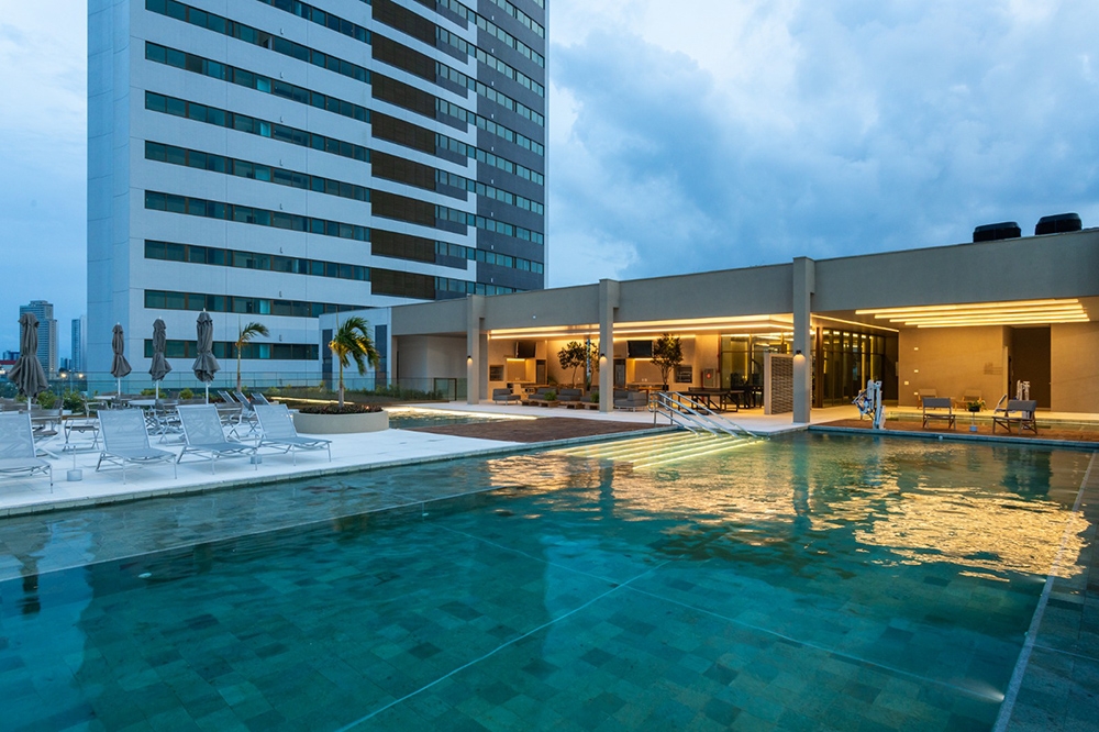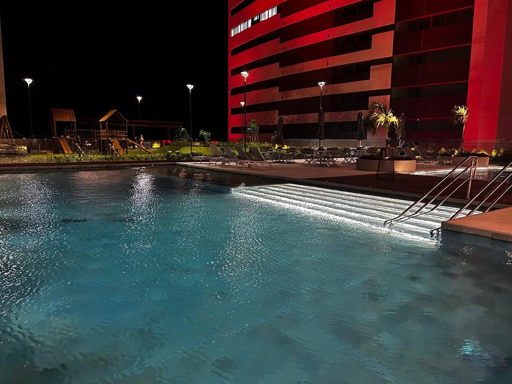 Entry DescriptionThe Mirante do País and Parque do Cais buildings are located in one of the most beautiful spots in the city of Recife, PE, Brazil. The Capibaribe River and a large stretch of Recife can be seen from the buildings. The lighting design consists of 3 buildings where all external and internal common areas were contemplated. The elaboration of the project had the collaboration of the Landscaping, Architecture and Interior Architecture projects. In the external areas, special lighting was provided for the trees, water mirror, sculptures and sidewalks. In common areas such as access halls, party rooms, game rooms, coworking, gyms, special LED luminaires with color temperatures of 2700K and sized according to the needs of each space. In the leisure area, poles with a height of 4m and direct lighting were installed in the playgrounds, vegetable garden and paths. The pools were illuminated with 4000k color temperature LED. On the paths, low bollards were provided to guide the user.The lighting of the façade was composed of a delicate light detail at its crown.