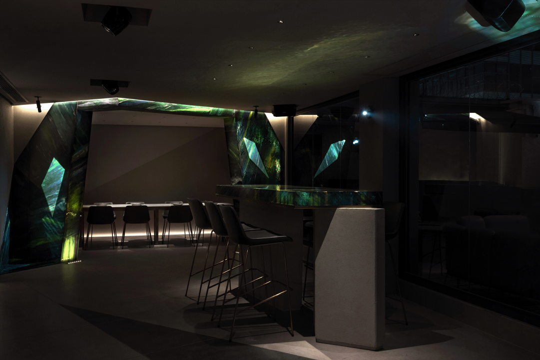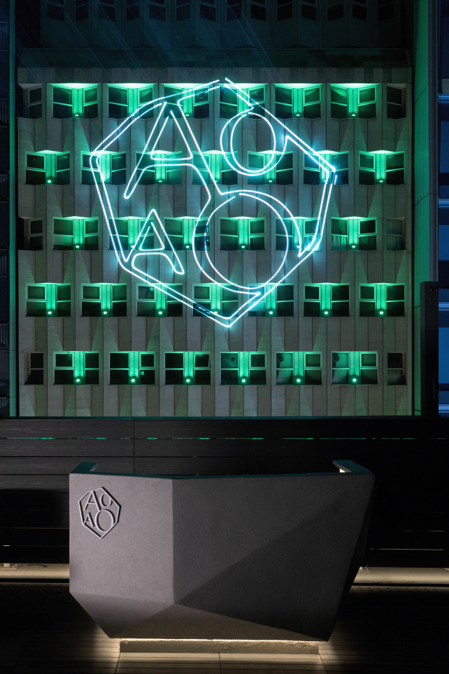Entry DescriptionAOAO, a contemporary Japanese izakaya & rooftop bar located in Central, fuses dining with an immersive experience of art and music within a gemstone-inspired interior. Imbued with the rich hues of jewels, smooth concrete at the entrance ushers visitors on an intriguing journey into a dining space imagined as an enchanting green realm.