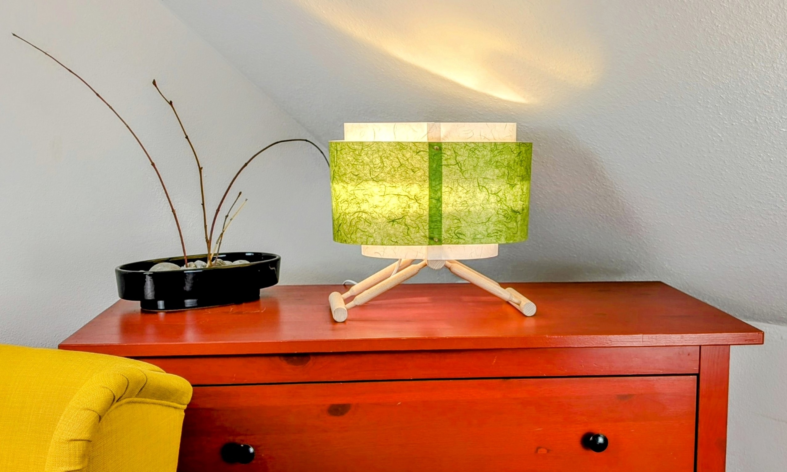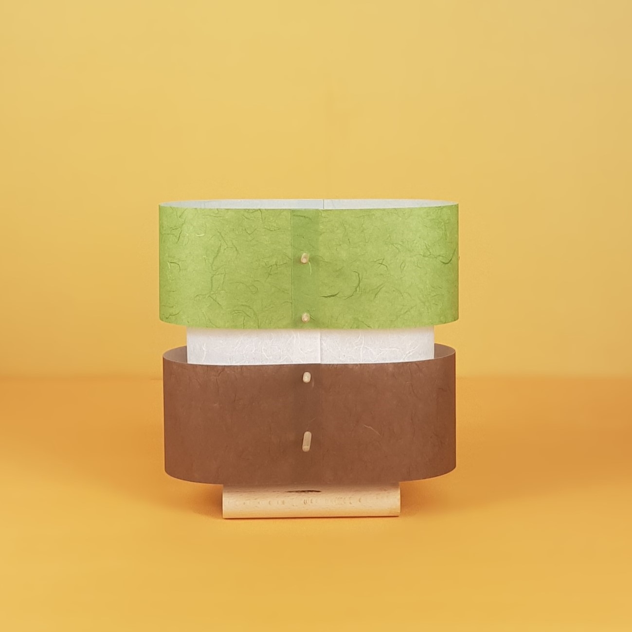 Sustainability is embedded in both the material choices and the modular design of this lighting system. The frames are made from untreated beech wood, often sourced from collected or salvaged material, while the paper panels are renewable and recyclable. Salvaging waste wood as material e.g. from discarded Christmas trees is also possible. The construction is entirely glue-free and designed for disassembly, enabling easy repair, replacement, or upgrading of individual parts — extending product life and reducing waste. The customization options foster emotional durability by encouraging personal expression. Additionally, the product ships flat-packed to minimize transport volume and carbon emissions. By supporting low-energy LED bulbs and discouraging over-consumption through modularity and repairability, the system contributes to a more responsible lighting culture.