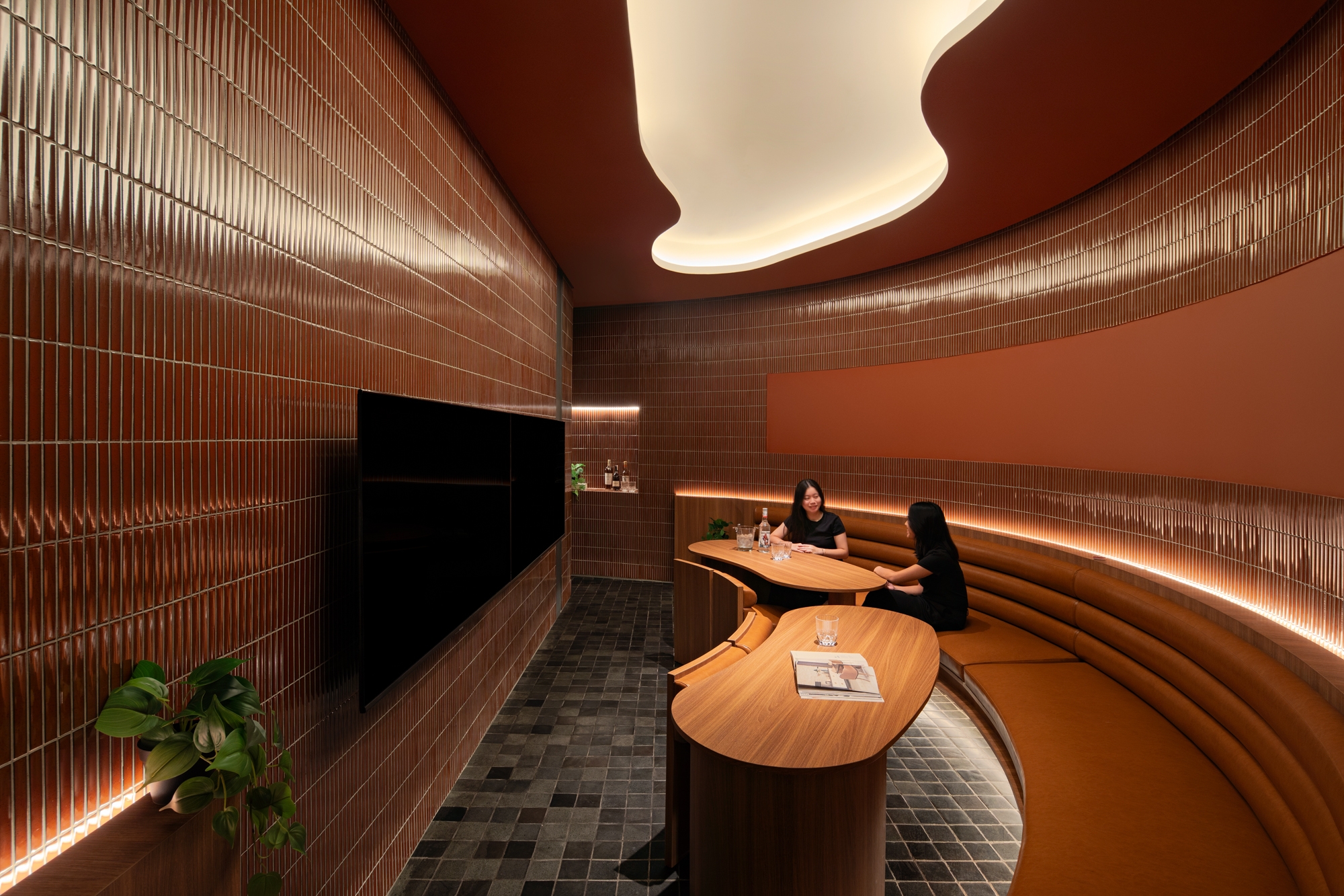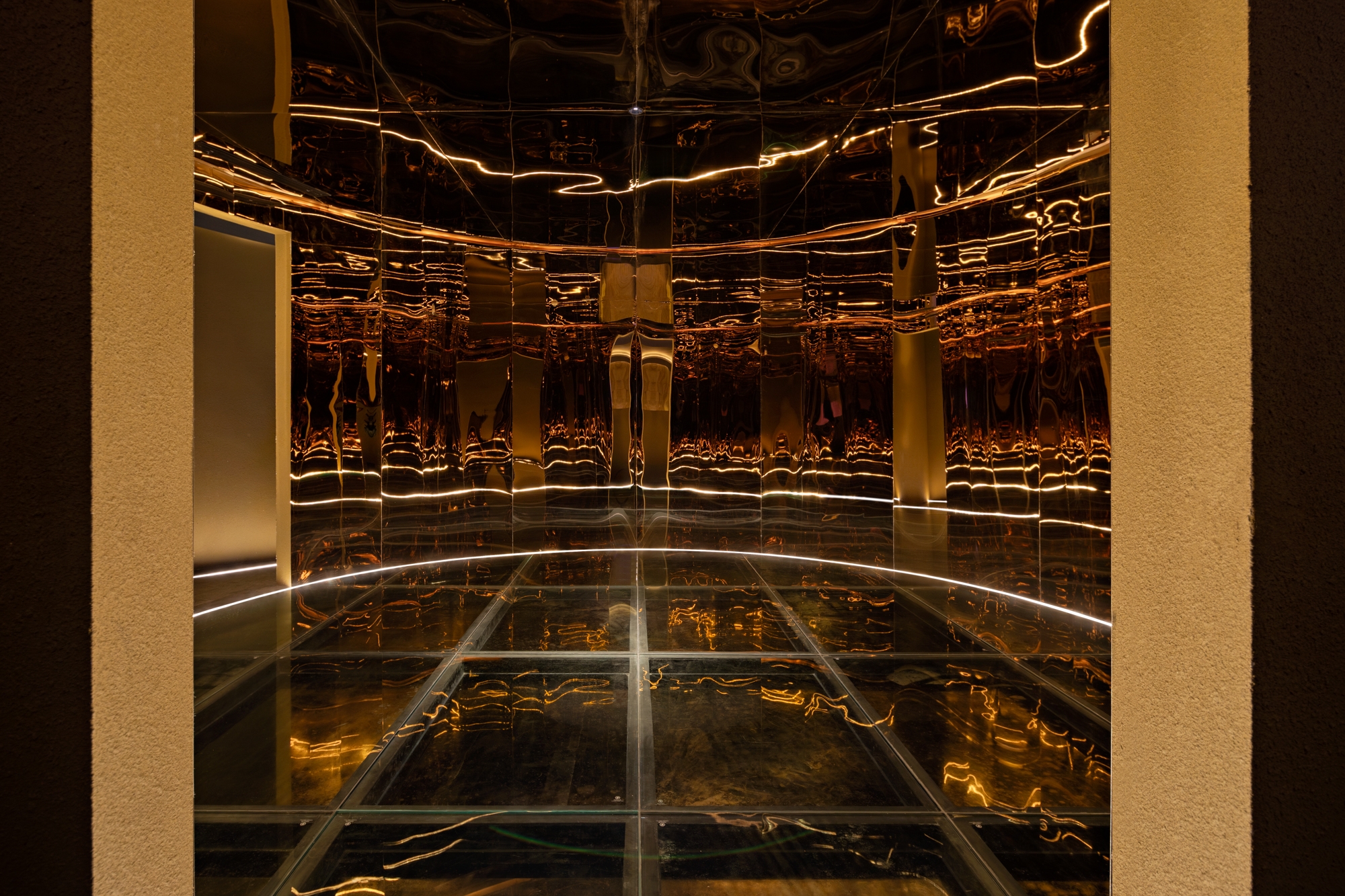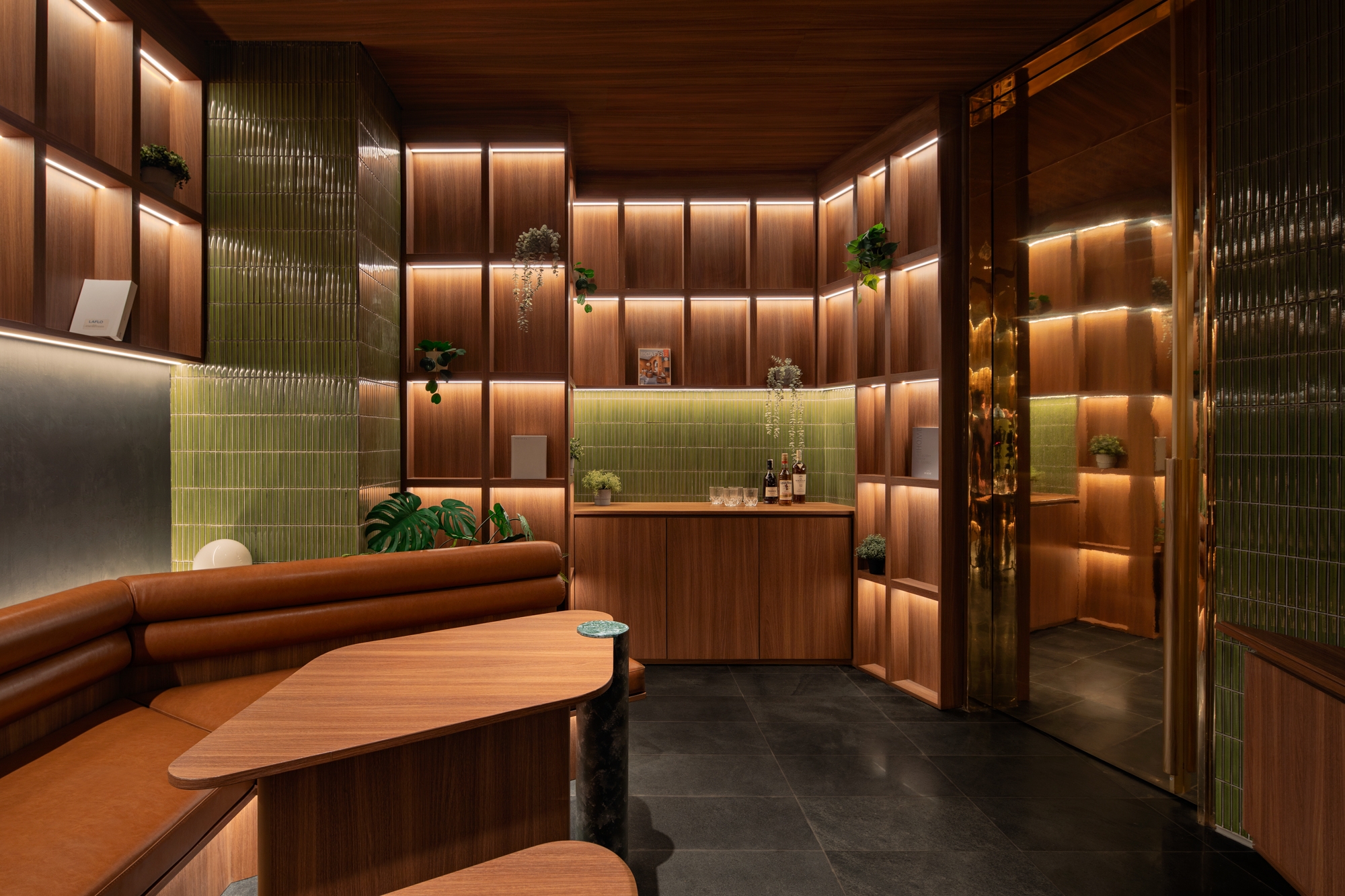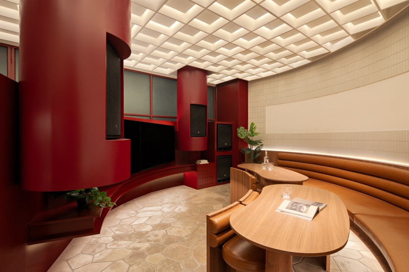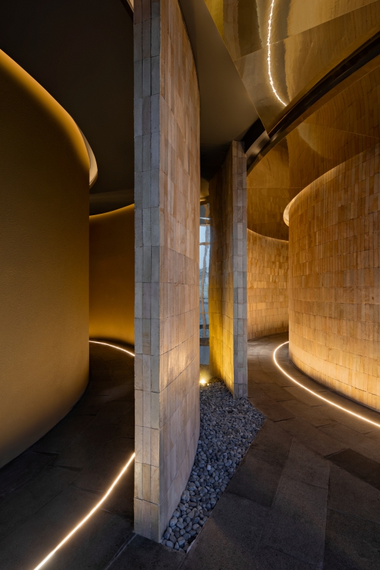 Entry DescriptionThe design features modern architecture with sleek, angular lines and a prominent purple and gold colour scheme. Neon lighting highlights the contours of the building, giving it a futuristic appearance. Lighting creates a vibrant and inviting atmosphere, typical of entertainment venues. The overall aesthetic suggests a stylish and potentially upscale location.