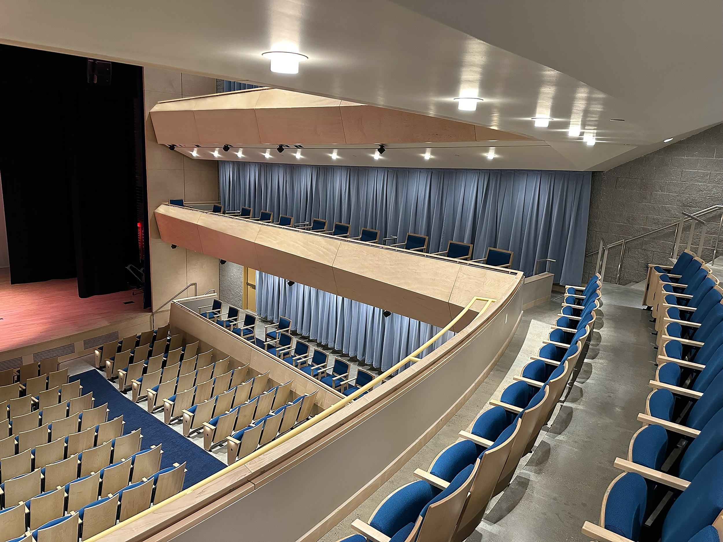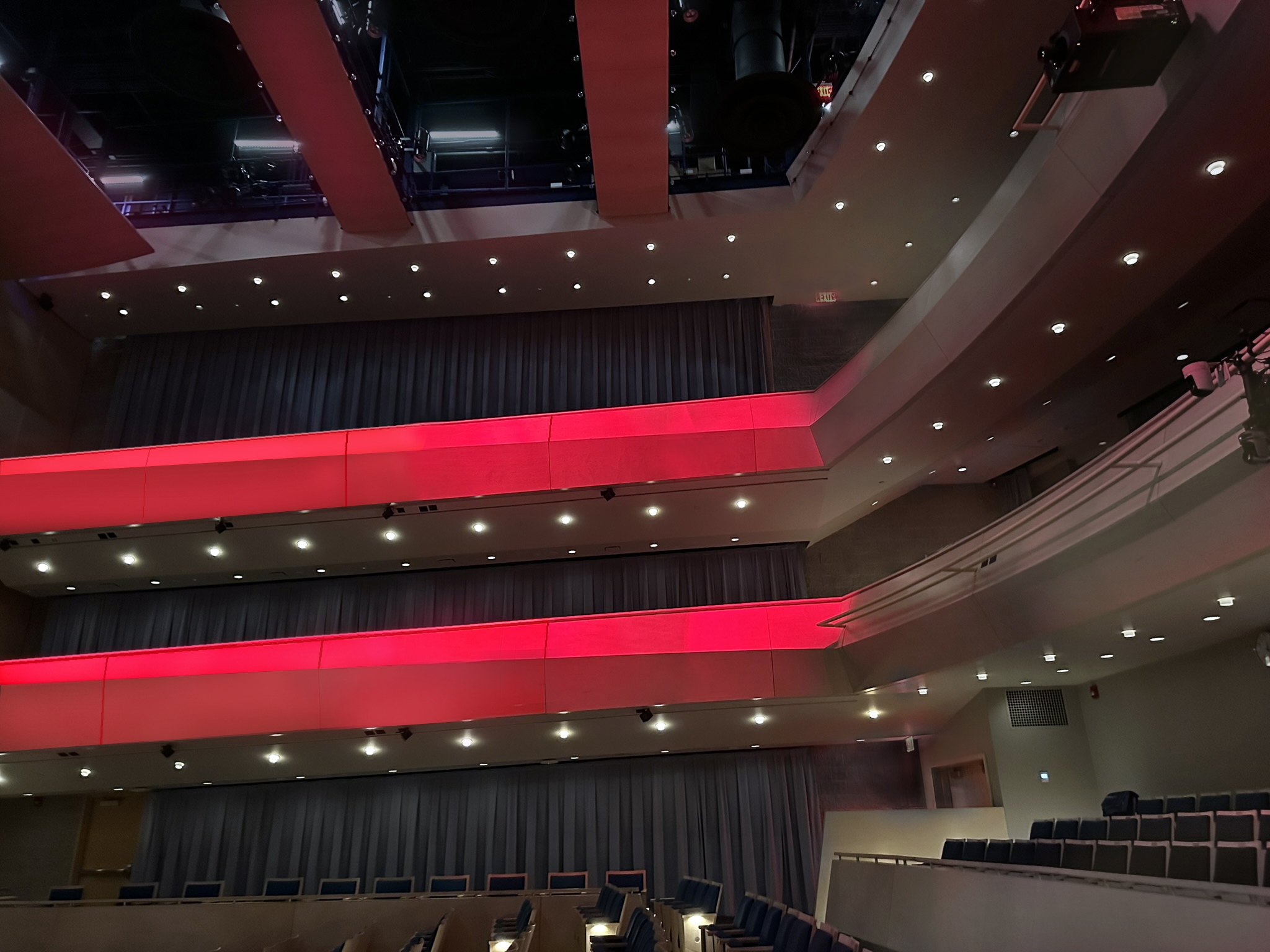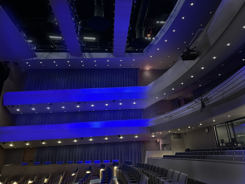 Framing projectors, easily accessed via the catwalk, add dynamic color to the side balcony fronts—underscoring the auditorium’s role as a vibrant connection for creativity and performance.