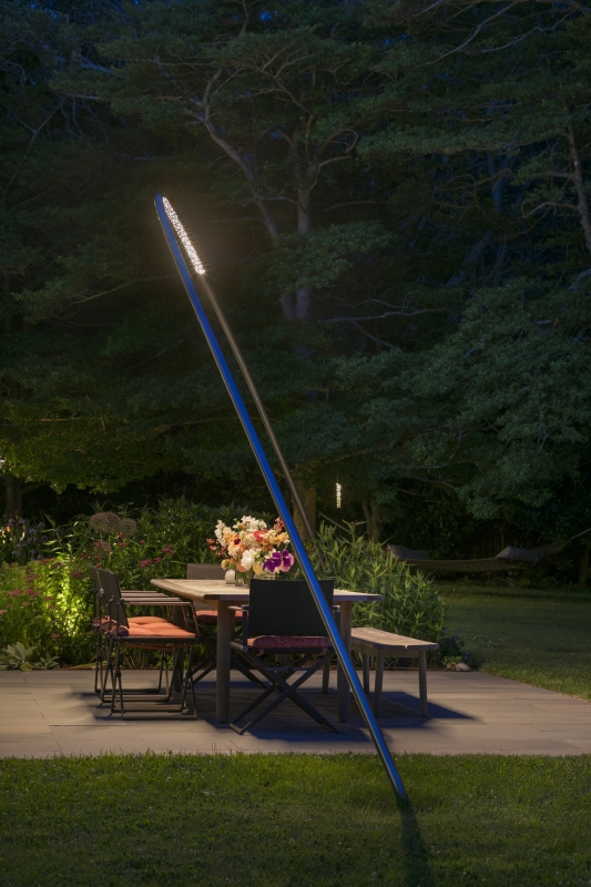 Tailored for the residential setting, the arch’s fine brushed stainless-steel finish offers both a refined aesthetic and durability against coastal environmental conditions. Internal wiring and a below grade anchoring system allowing appearance of weightless while ensuring structural stability. The lighting strategy was carefully developed to balance ambient illumination with the night sky, softly highlighting the dining area without overpowering the landscape's natural darkness.