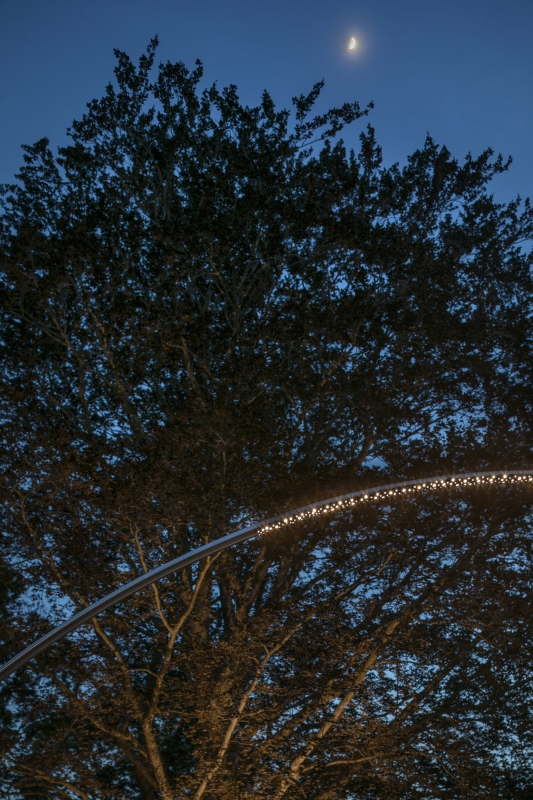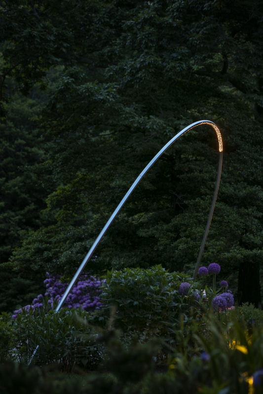 Prototypes and site mockups informed final tuning of the brightness, color temperature, and perforated locations. Designed to act as both structure and light source, the arch transforms the garden into an intimate and immersive nighttime experience. By day, the arch blends in and reflects the sky achieving a subtle and celebratory presence with minimal intervention.