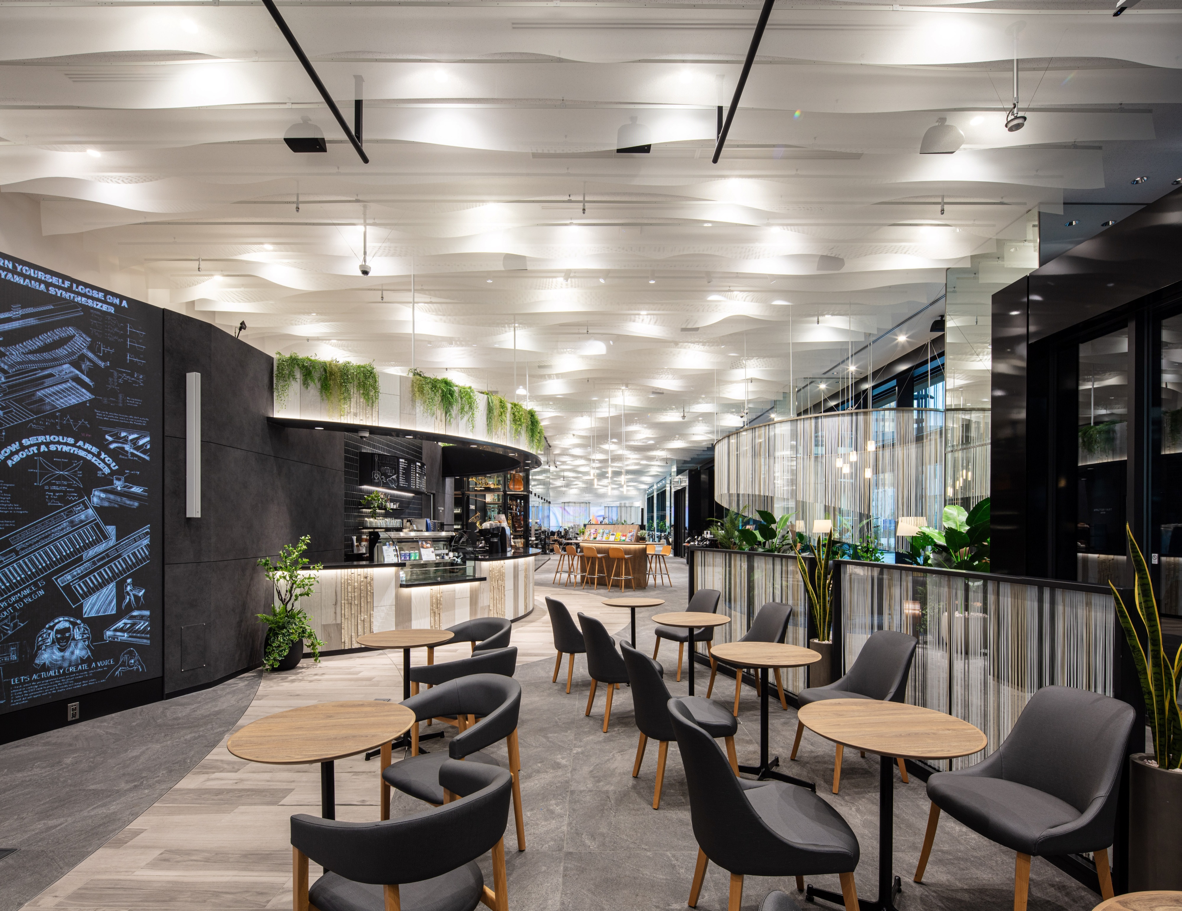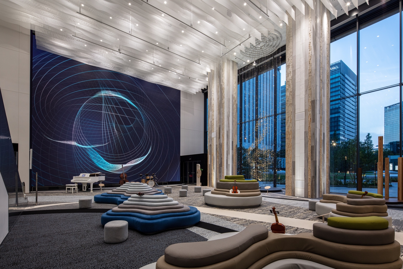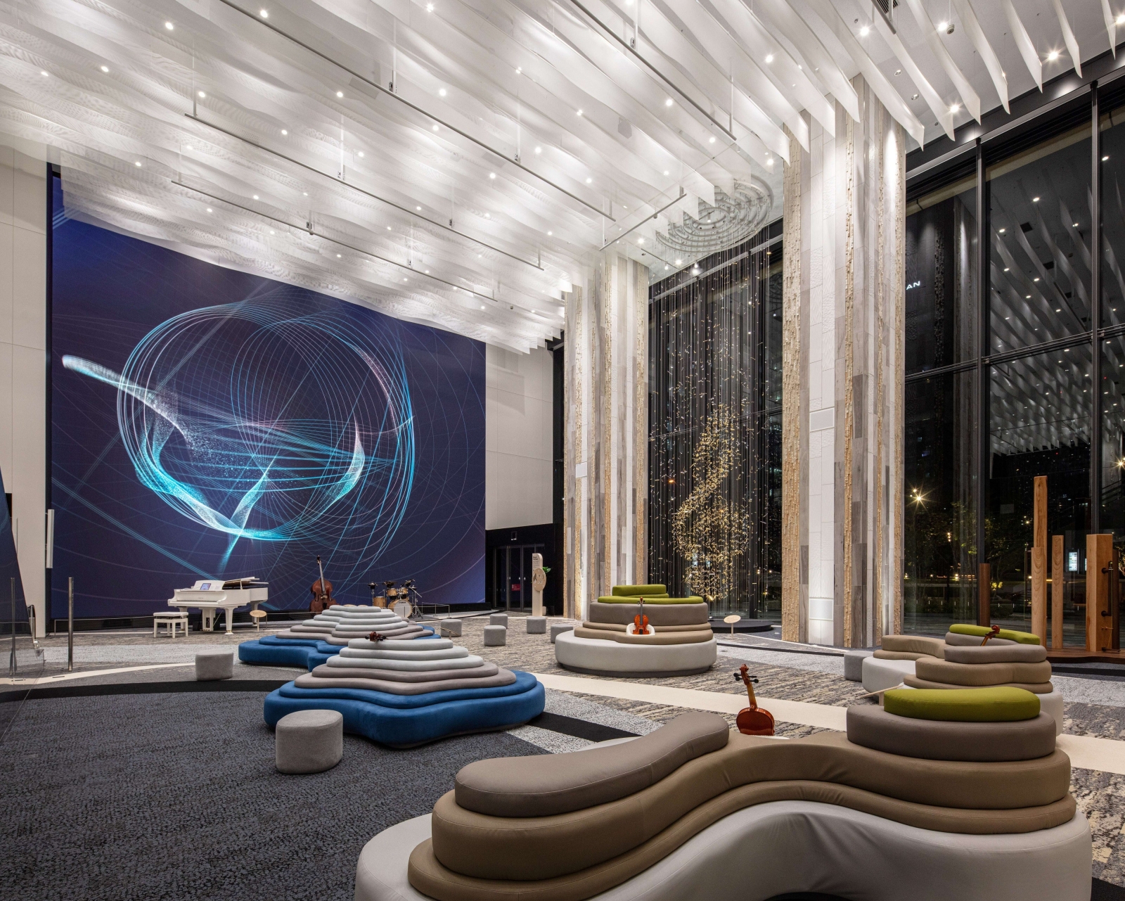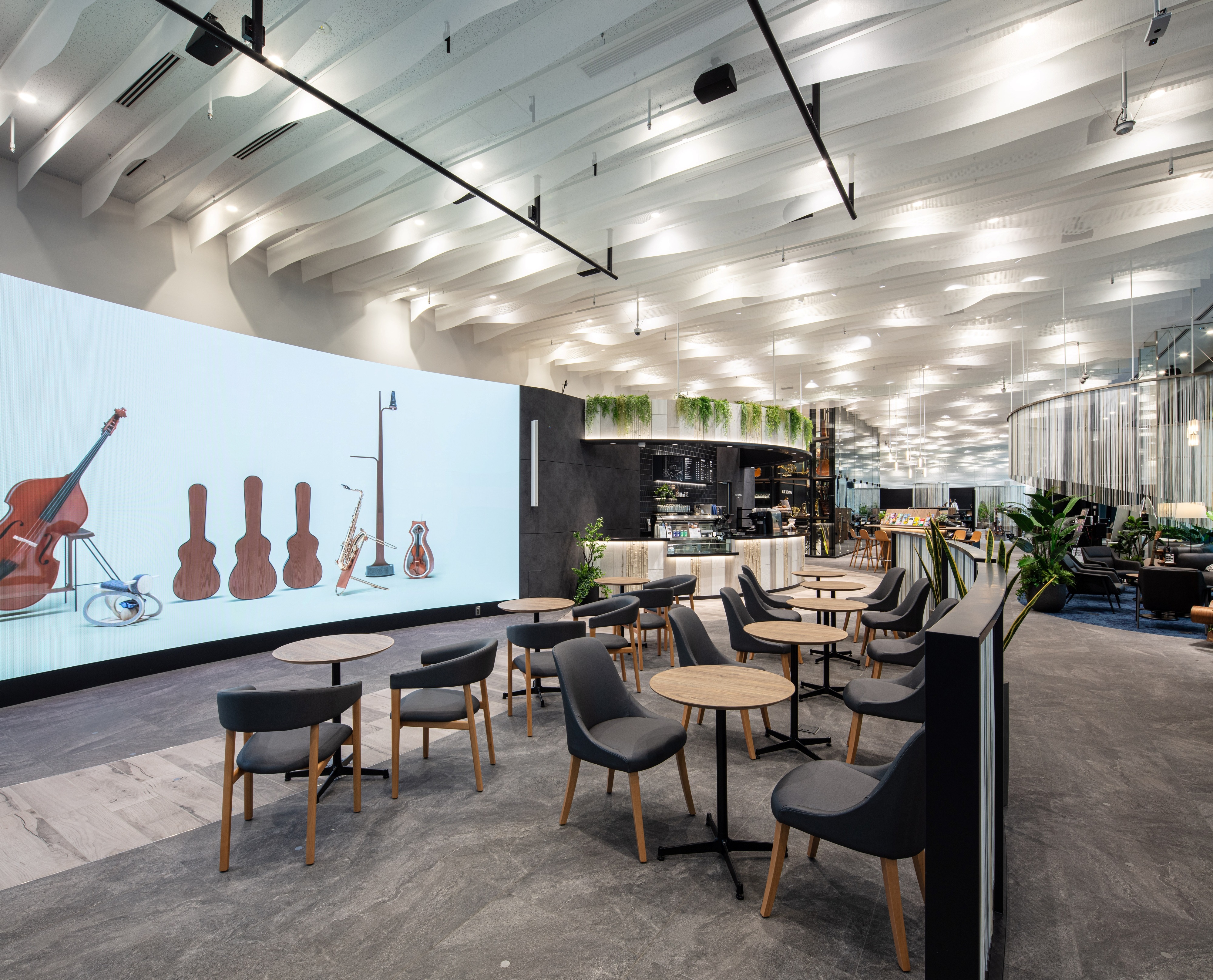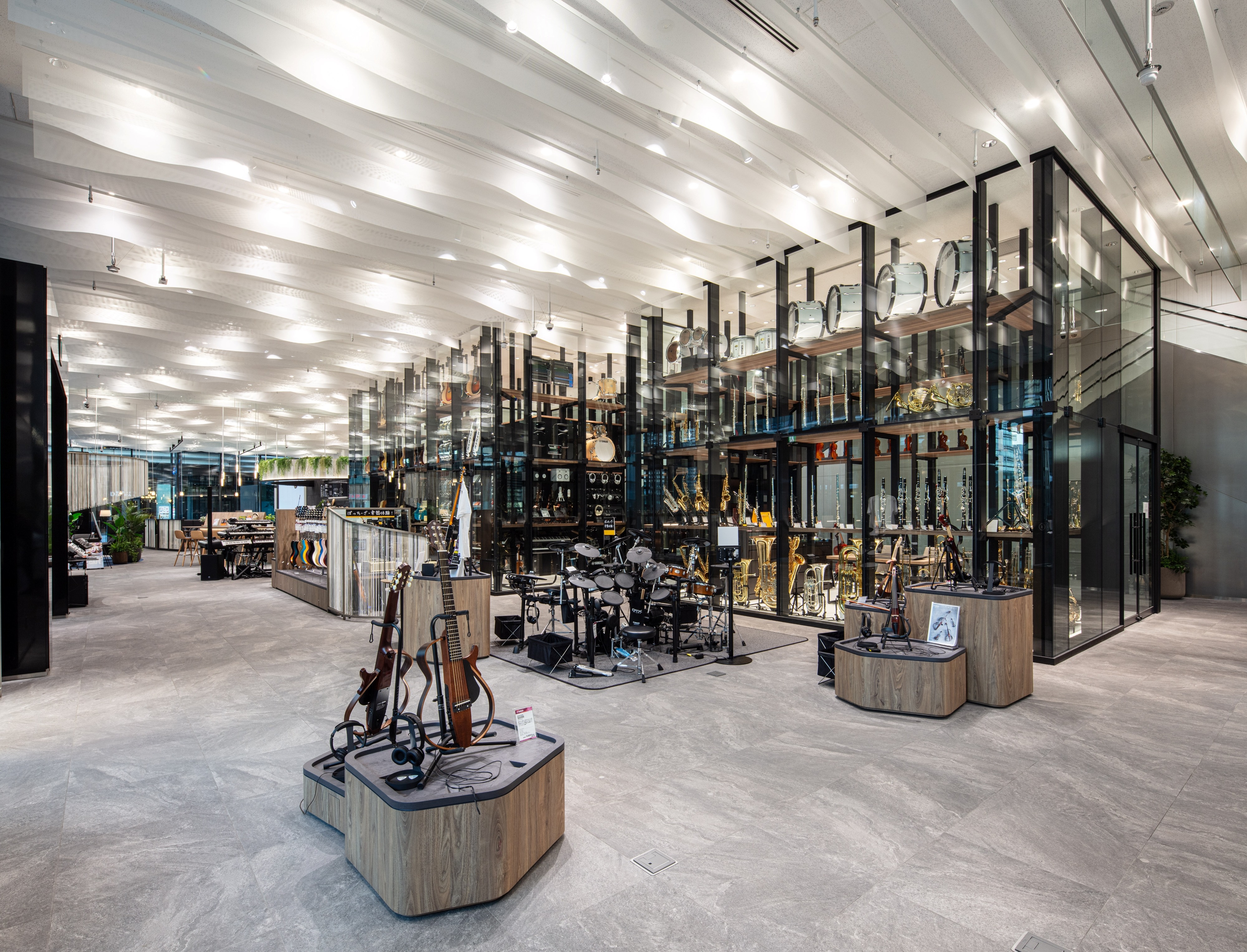 Entry DescriptionAn immersive commercial music facility designed for experiencing and discovering the sounds and instruments that resonate with you.The spatial design is themed around the natural fluctuations and comfortable irregularities found in nature, the facility intentionally avoids excessive artificial decoration, instead evoking the serene tranquility of being immersed in nature.In contrast, the lighting design is based on the theme of 1/f fluctuation, introducing a pleasing rhythm of light that harmonizes with the soothing tones of the music space.A cloud-like louver extending approximately 100 meters is conceptualized as a single musical score that diagrams the natural fluctuation of wavelengths. Downlights are strategically placed at key wavelength points, creating a natural, comfortable lighting environment while eliminating artificial regularity.Since using a single wavelength alone would appear monotonous, multiple wavelengths—such as the twinkling of stars or ripples on water—are orchestrated in concert to achieve a richer, more randomized expression.Simply arranging downlights exactly at those wavelength points can compromise both the presentation of instruments and user convenience. Therefore, a pseudo?computational design approach has been adopted: lighting balance is simulated and fine-tuned using 3D software to ensure an optimal harmony between light, sound, and usability.