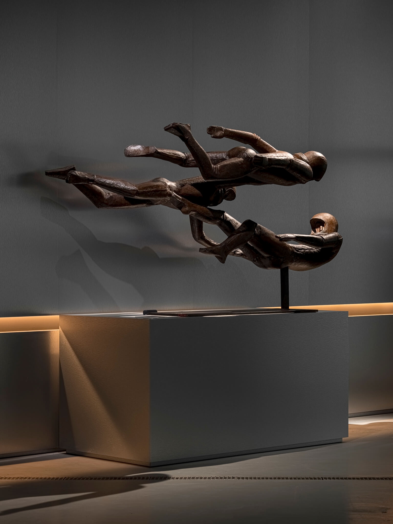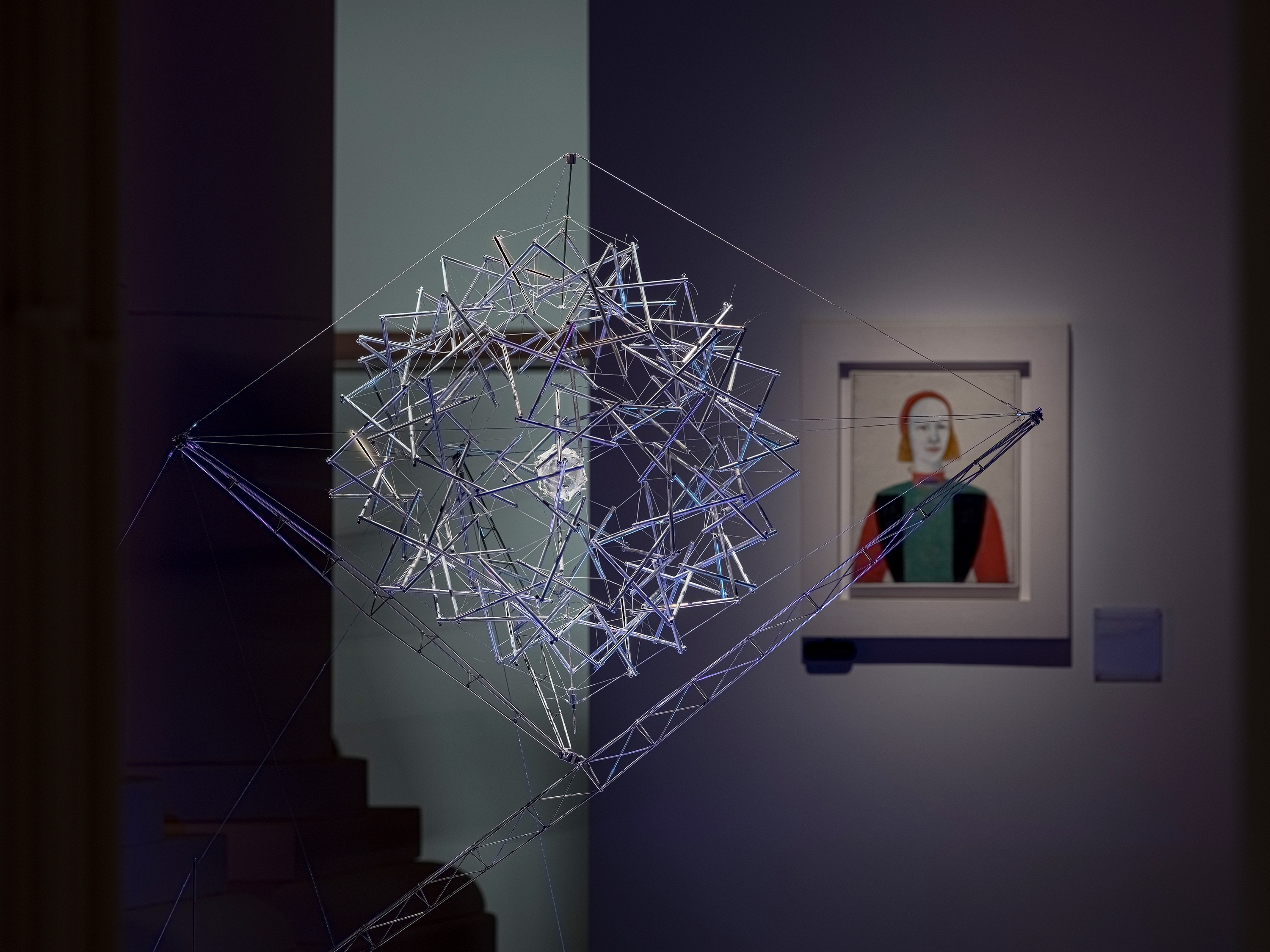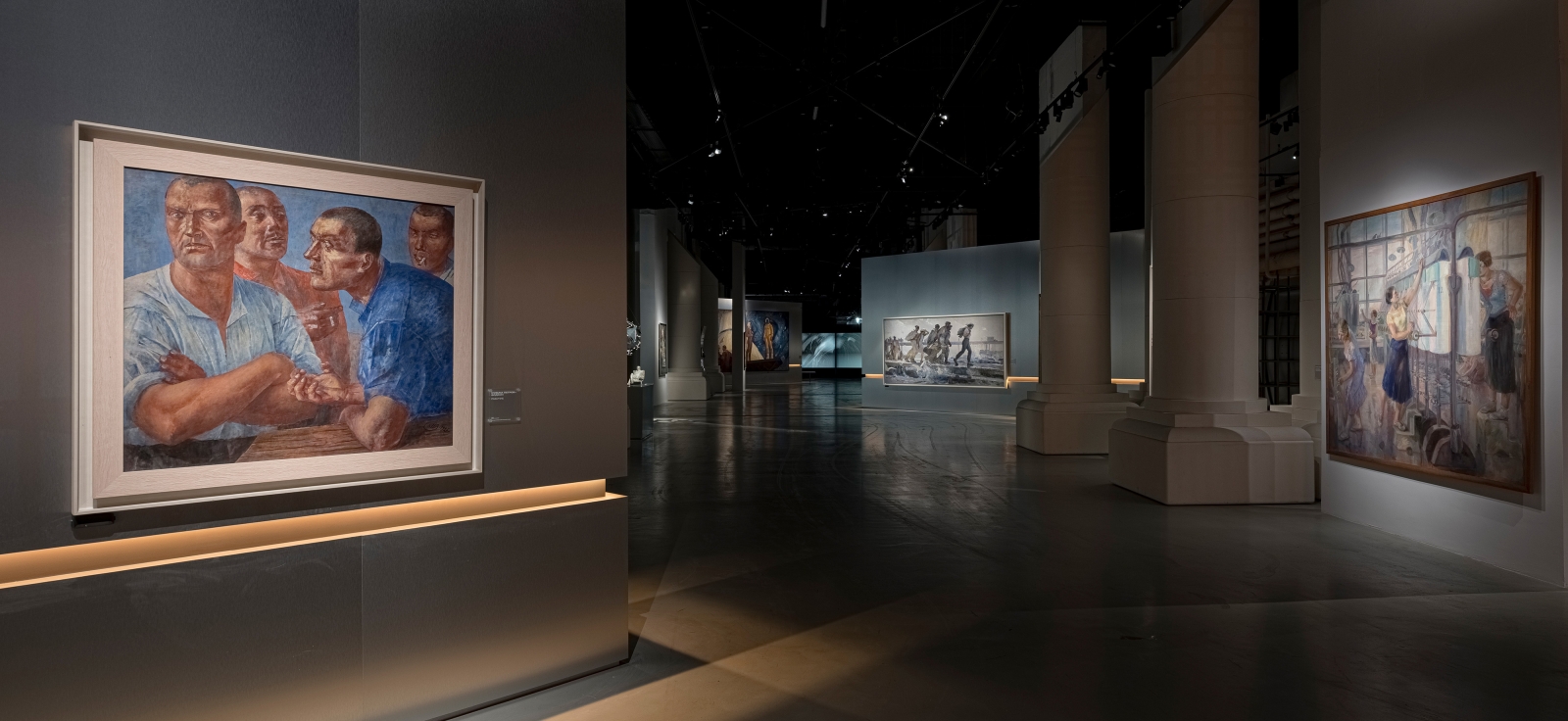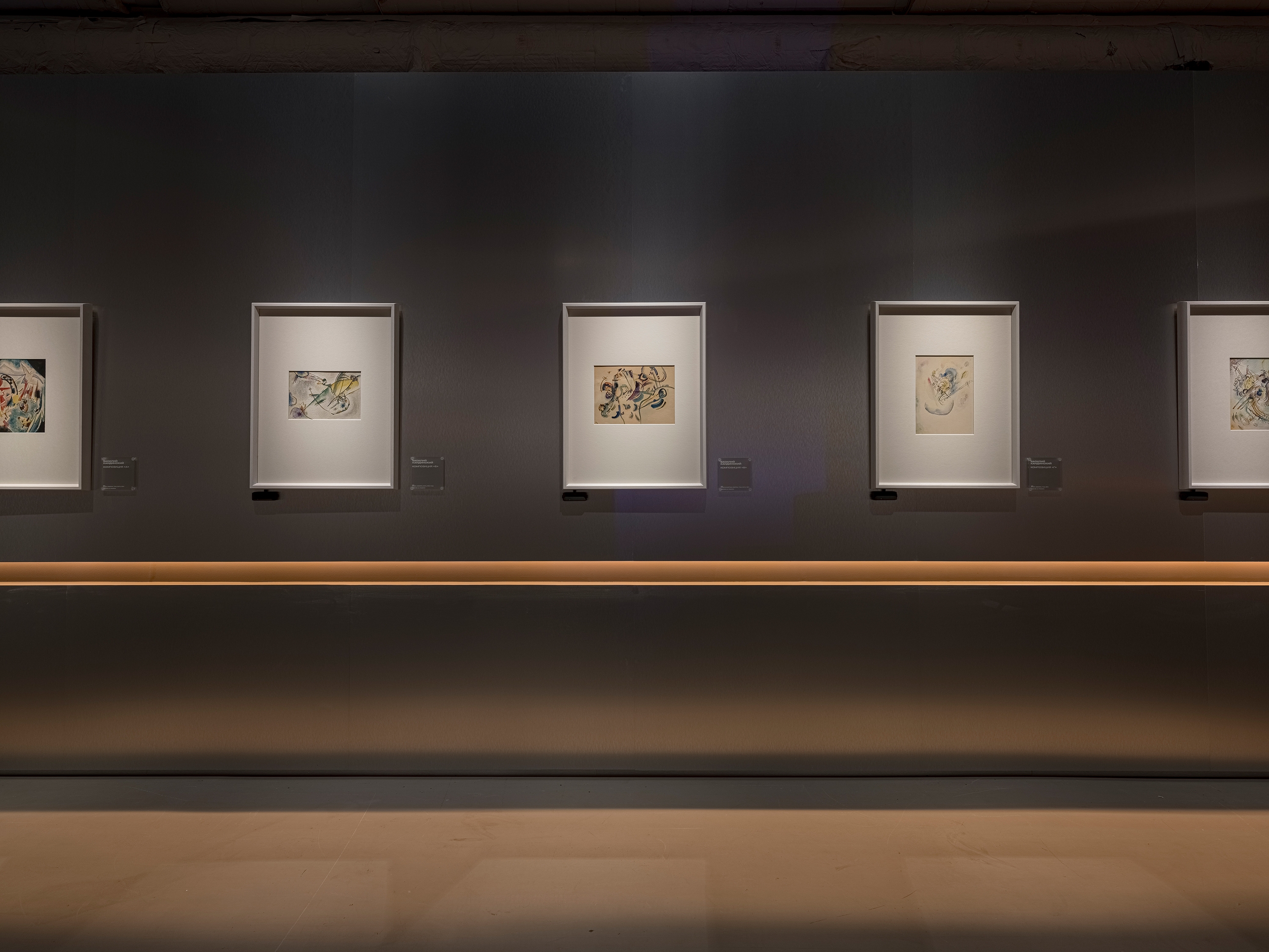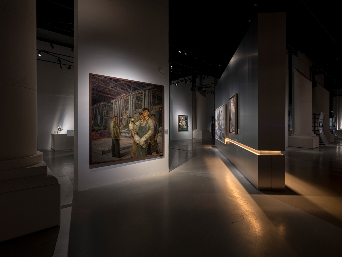According to the vision of the architects and curators, visitors enter the exhibition through a portal symbolizing the energy flows of a nuclear reactor. This portal consists of two enormous lightboxes with gradient lighting ranging from ultra-warm orange to neutral white. These energy flows serve as the central leitmotif of the entire exhibition, continuing into each of its sections through accent warm light elements built into the walls. The exhibition lighting required extremely delicate work, as it was essential to maintain a balance between darkness and light. The light was meant to capture the artworks as if emerging from the darkness, enhancing the atmosphere of creation and focusing the viewers’ attention on the works of art.