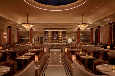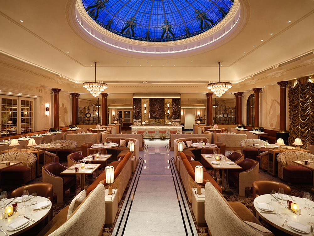 “Tea at The Savoy”? Although iconic the original Thames Foyer was an airy space appealing for breakfast or afternoon scones; with high ceilings and a vast glass dome overhead, the area was deserted by noon and again by dinner. The brief was to recreate the space to entice lunchtime diners through to pre-dinner drinkers. Creating an evolving atmosphere complimentary of the hour encouraging guests to stay and not pass through to other F&B outlets.