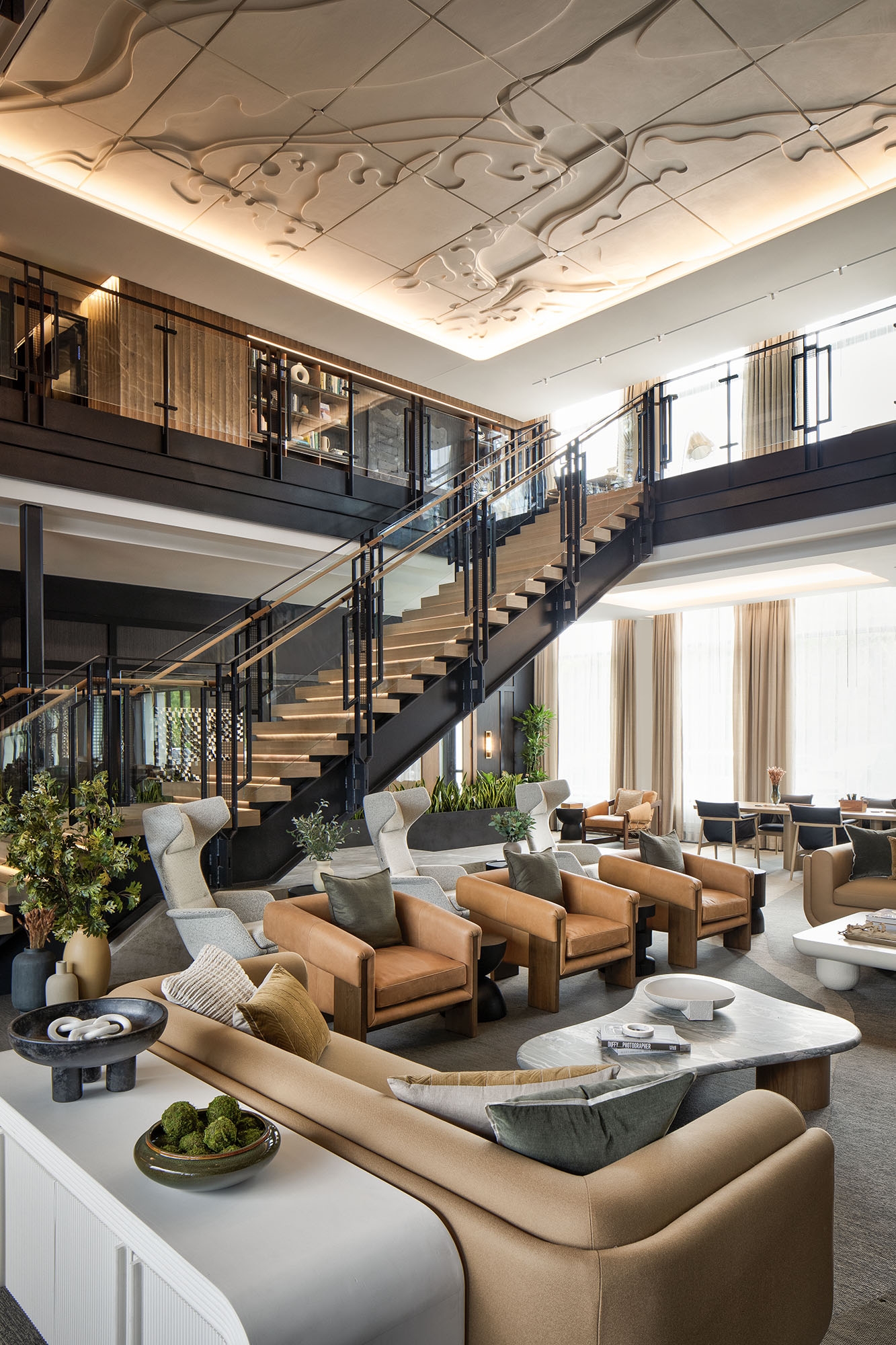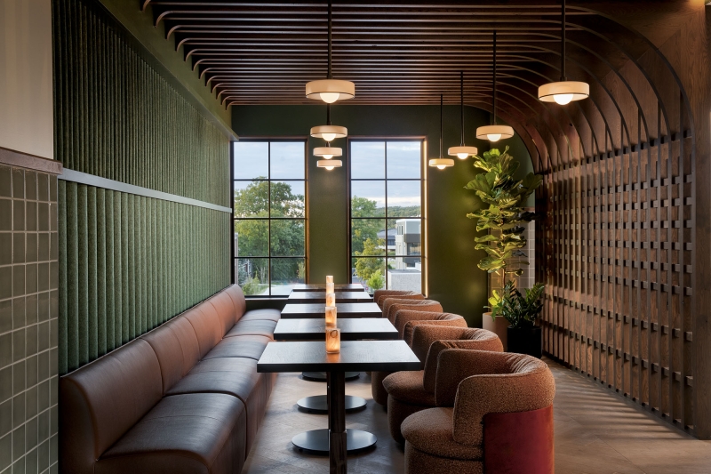 The result is a warm, layered environment where thoughtful lighting reveals material richness and enhances the guest experience, merging timeless character with contemporary design.