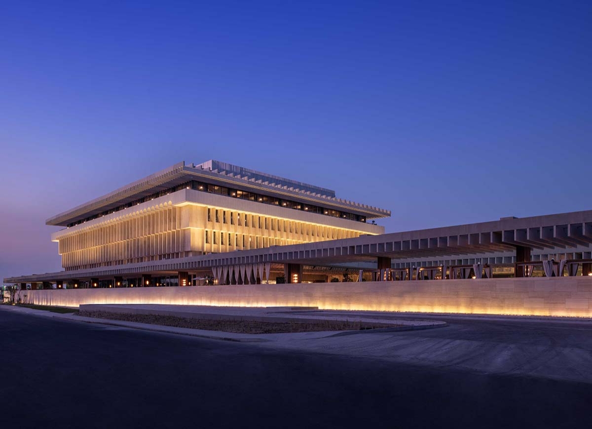 Entry DescriptionThe Ned Doha is where history and modernity converge, transforming the former Ministry of Interior into a striking hospitality landmark. Designed in the 1970s by Lebanese architect William Sednaoui, this Brutalist masterpiece, with its rhythmic façade and sculptural form, embodies Middle Eastern modernism. A symbol of ambition and progress, its illumination required a delicate balance—honoring its past while seamlessly guiding it into a new era.