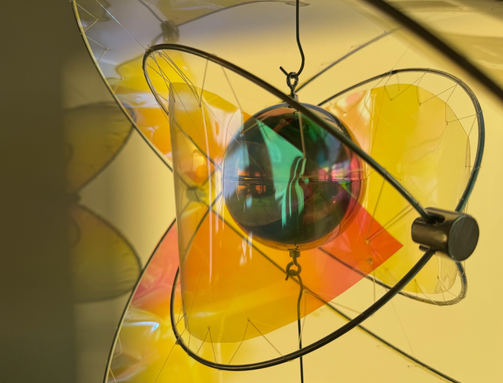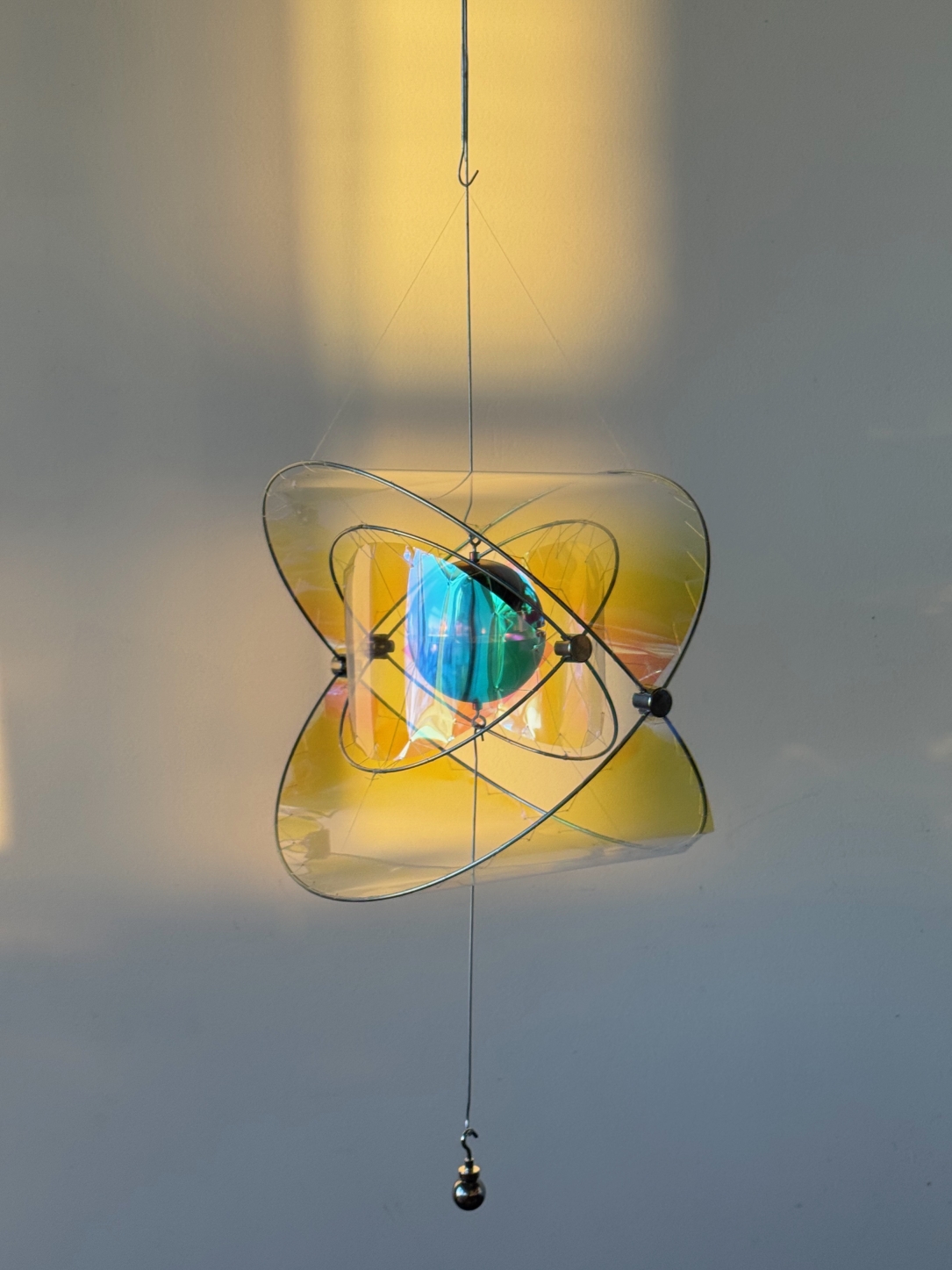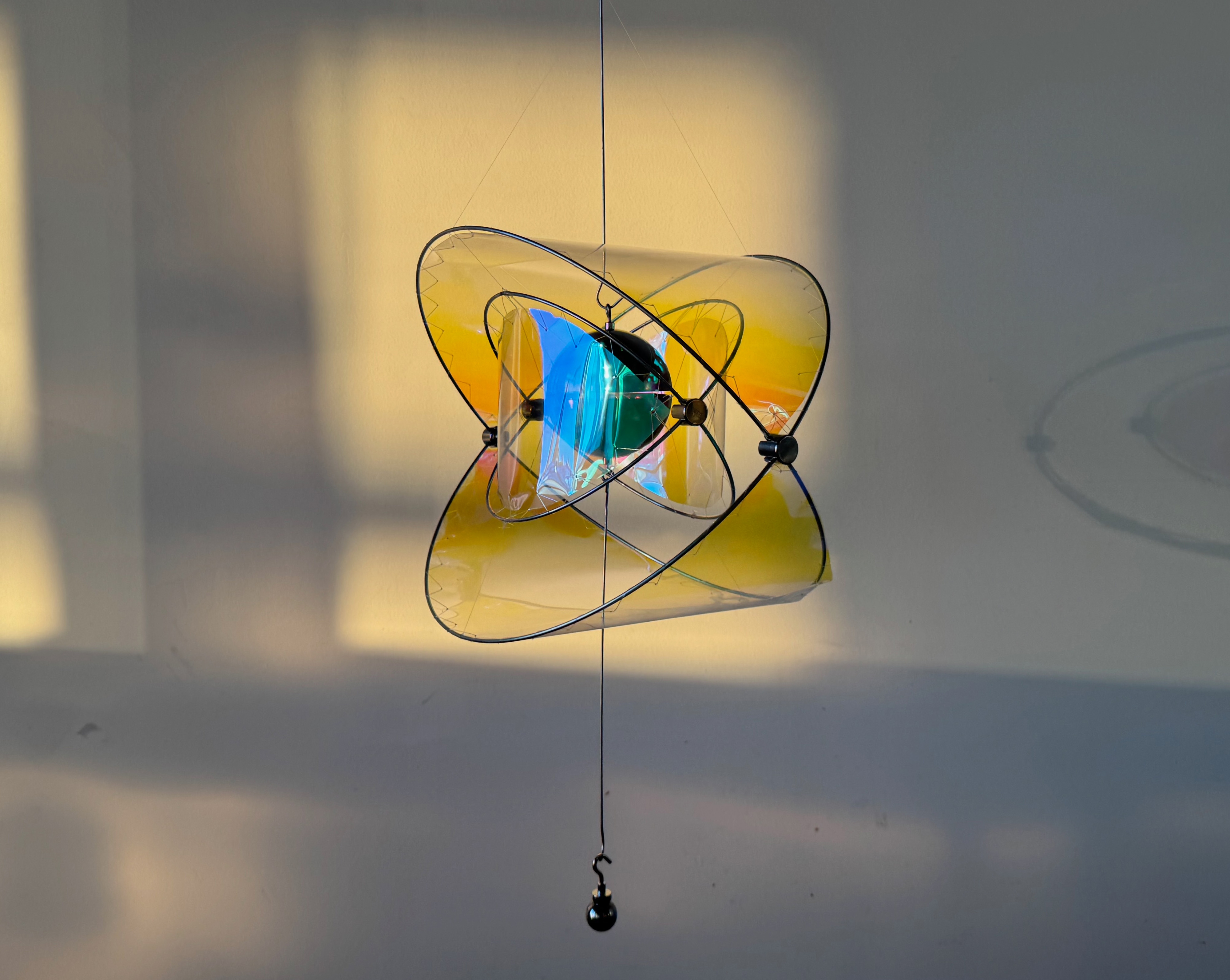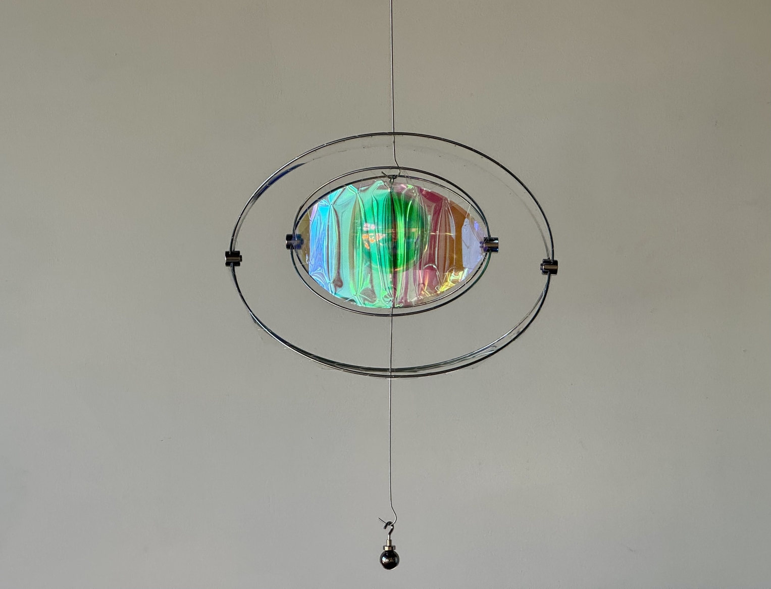 Entry DescriptionLumen Touch is an interactive decorative luminaire that redefines the way users experience illumination. Rather than switching or dimming the light directly, users influence its behavior through subtle physical interaction: adding weight to the lower hook shifts the structure, expanding the space between two polished metal hemispheres, each containing an internal light source. Reflected uplight and downlight pass through iridescent filters, casting evolving color patterns onto the surrounding environment. Under daylight, the reflective surfaces scatter delicate hues, keeping the piece alive without artificial illumination. Acting as a reflective sculpture by day and an atmospheric luminaire by night, Lumen Touch invites users to explore light through touch and movement—transforming every interaction into a tangible, playful, and poetic experience that blurs the boundaries between product, art, and interaction.