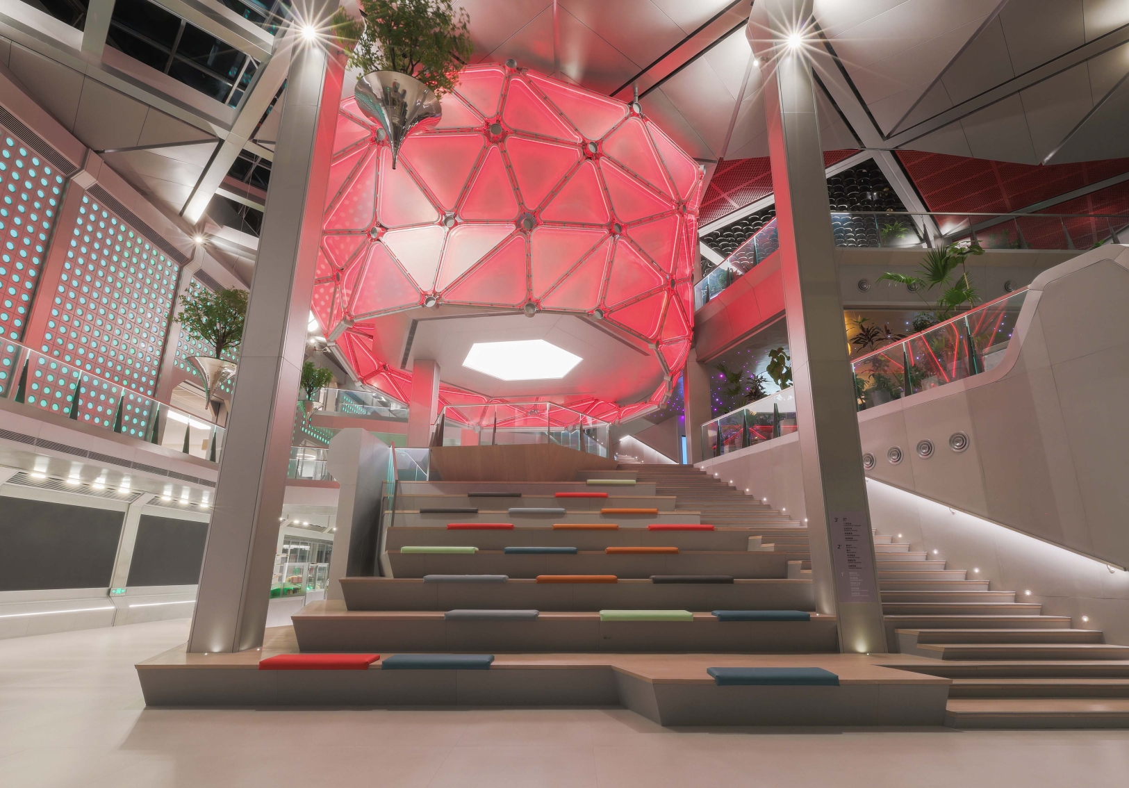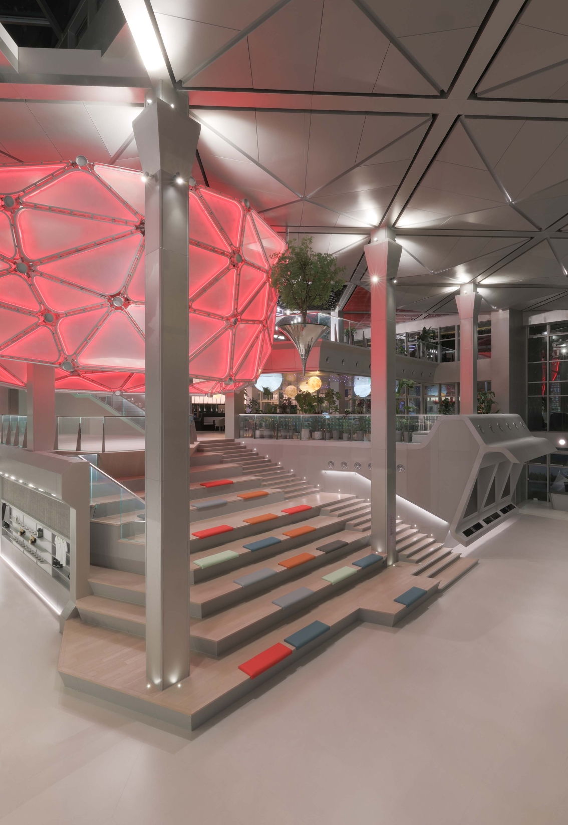 The lighting design is anchored in four core concepts: futuristic technology, sustainability, a deep connection to local culture, and the extraction of industrial heritage as a former quarry. These principles merge harmoniously to create interior spaces that elegantly blend contemporary technology with traditional grace, radiating a sense of intelligence, sophistication, and a visionary spirit.