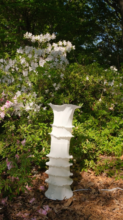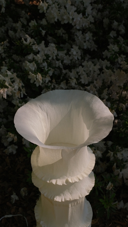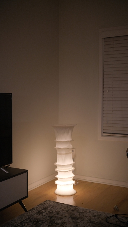 Through a careful balance of form, materiality, and illumination, KOMOREBI creates a sense of openness and breathability. The subtle folds in the crepe paper lend it structural integrity without the need for an armature, allowing the form to emerge in a way that feels both effortless and intentional.