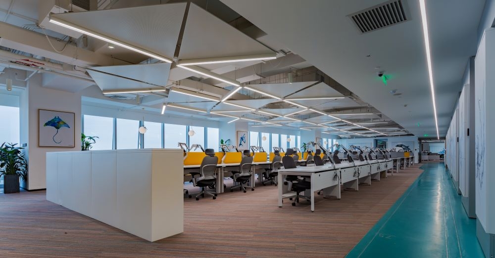 The project carefully selects high-efficiency lighting fixtures to maximize their potential and significantly improve lighting efficiency. At the same time, it is equipped with an advanced intelligent lighting control system. Rhythmic lighting is applied in the office, which can adjust the light according to working hours and task requirements. This helps to enhance employees' work efficiency and alertness, reduce fatigue and stress, and improve the working environment. It not only meets the lighting needs of various spaces but also achieves rational allocation of energy, greatly reducing energy consumption and practicing the concept of green office.