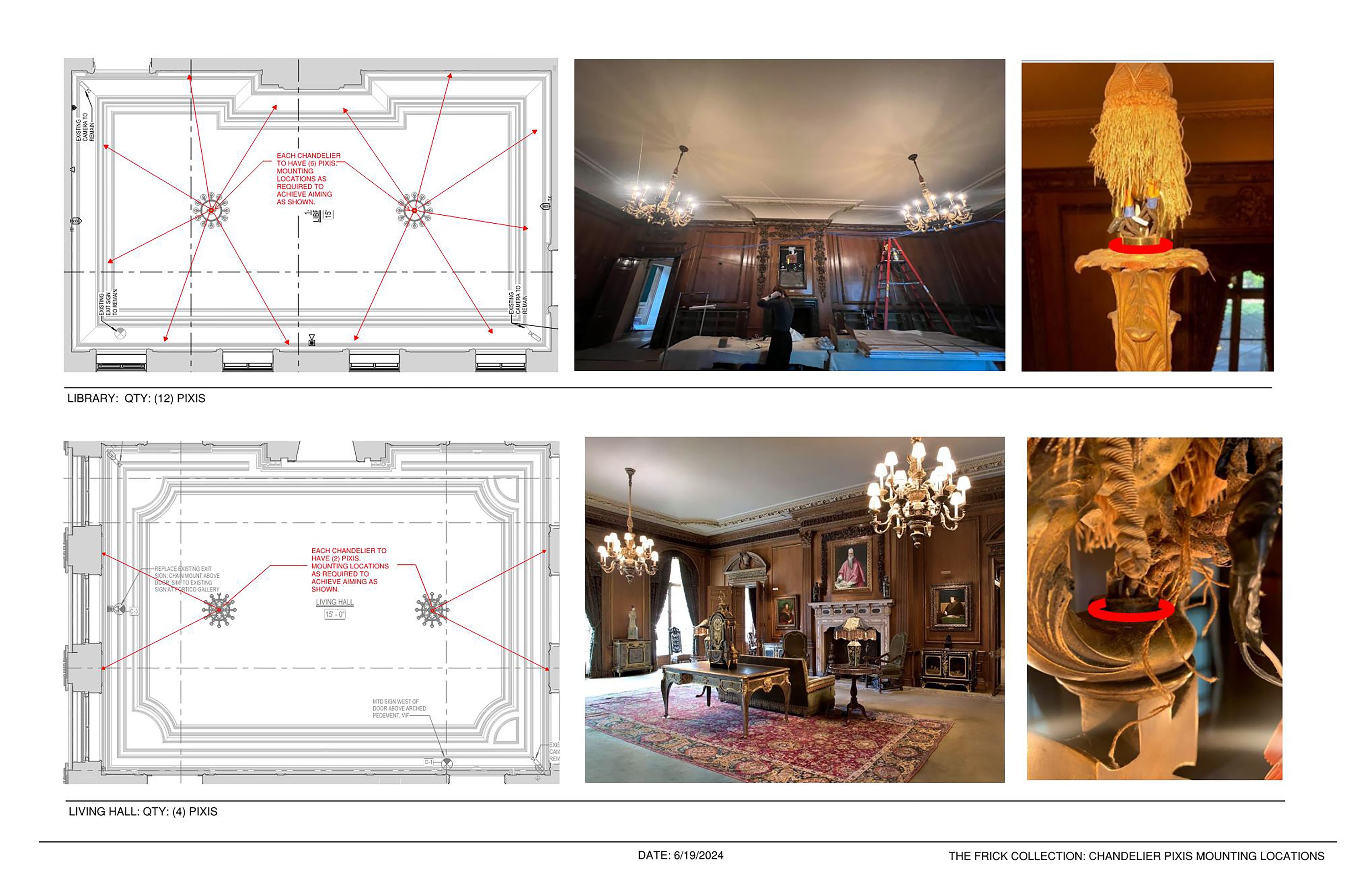The mansion’s historic living quarters' chandeliers are fitted with micro LED spotlights to invisibly highlight objects.
