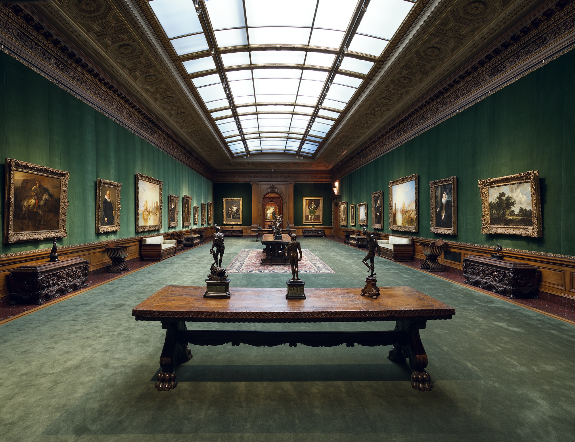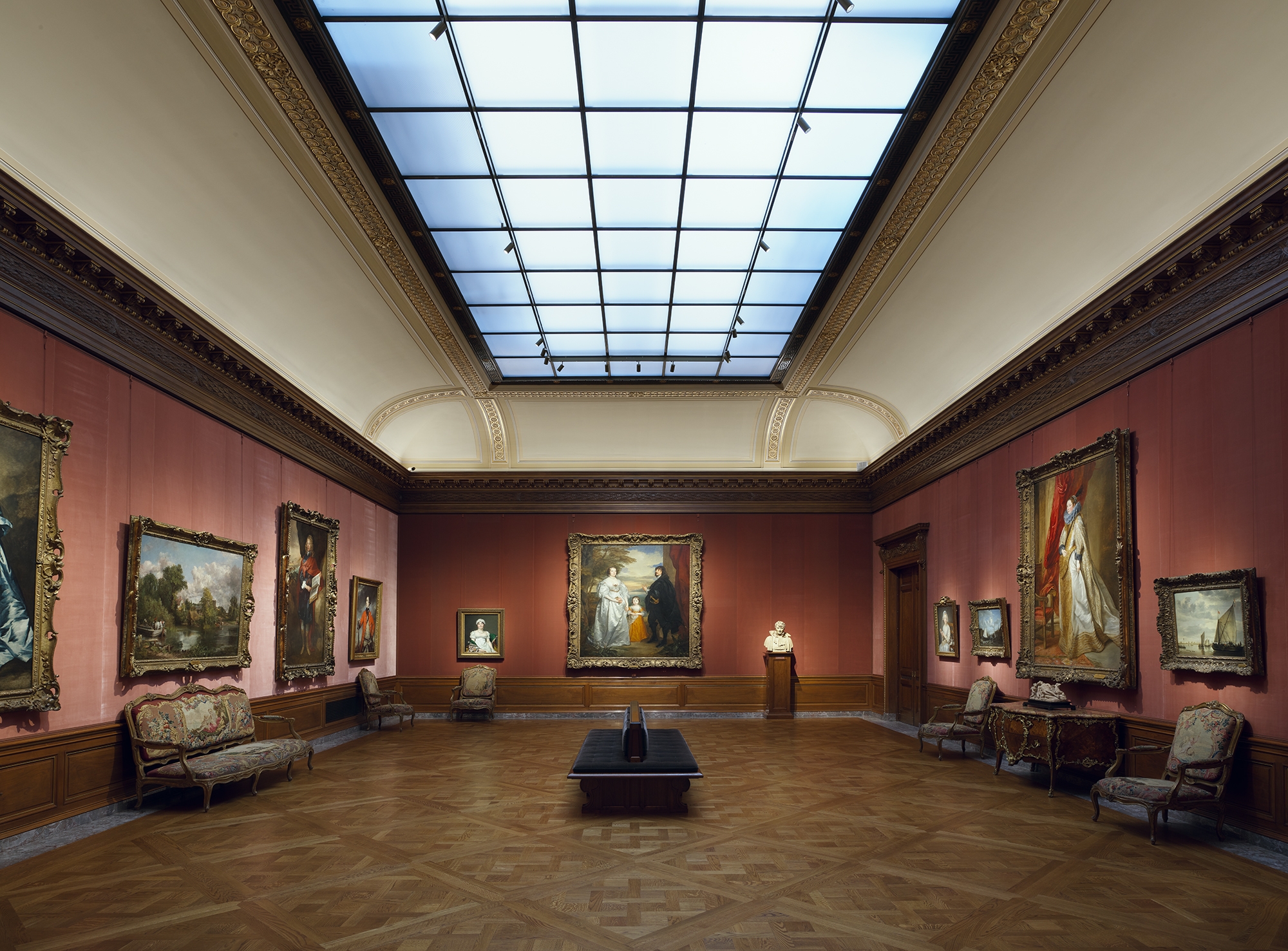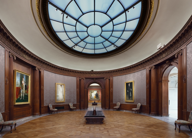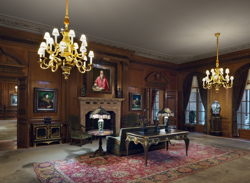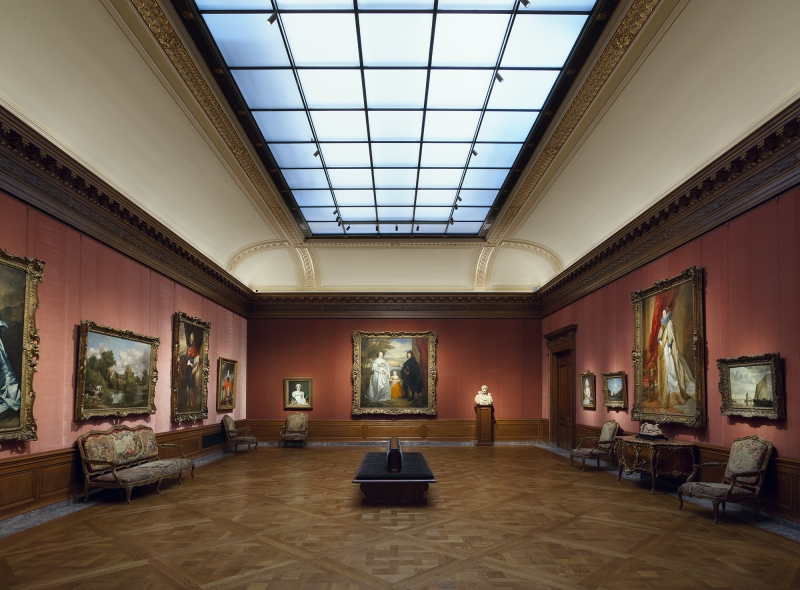 Entry DescriptionIn the freshly renovated Frick Collection, the visitor experiences the mansion as it originally appeared in 1915 when the Fricks first occupied it. The interior finishes were returned to their original glory, yet the colors are crisper, and, while only one or two paintings were conserved, all appear to be cleaner. The newly installed high color rendering, highly efficient, neutral white 3,000º Kelvin LED light sources render the various color palettes of the paintings and objects more accurately than before when they were lit with tungsten halogen. Since LED lighting technology has more energy present in the blue wavelengths of the visible light spectrum, cerulean tones come forward rather than being dulled by warm 2,700º Kelvin illumination.