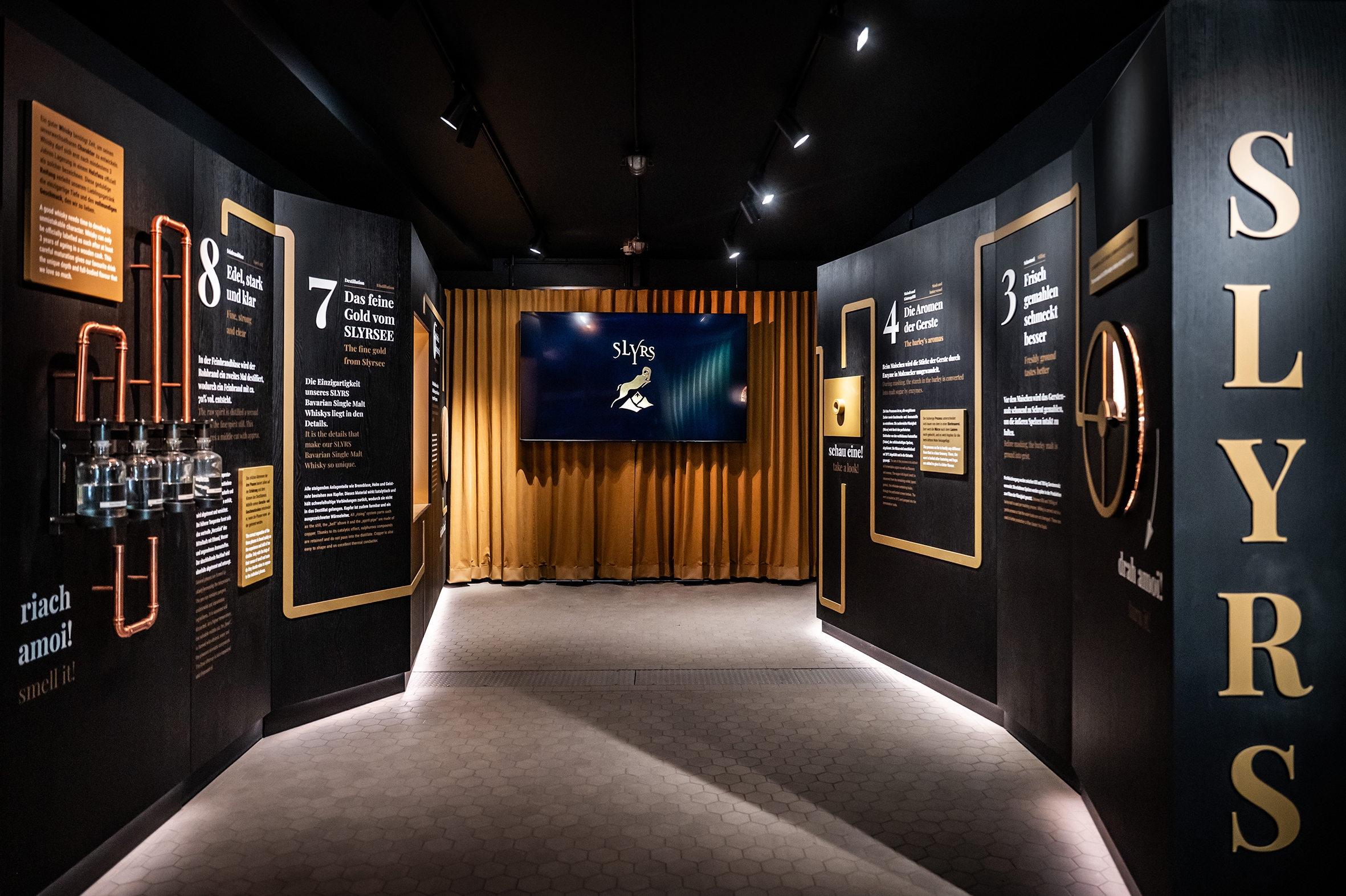 The result is an immersive world where light guides, tells stories, and reveals the essence of SLYRS whisky—just as multifaceted as the whisky itself.
