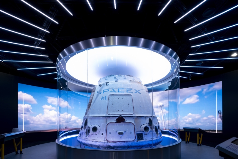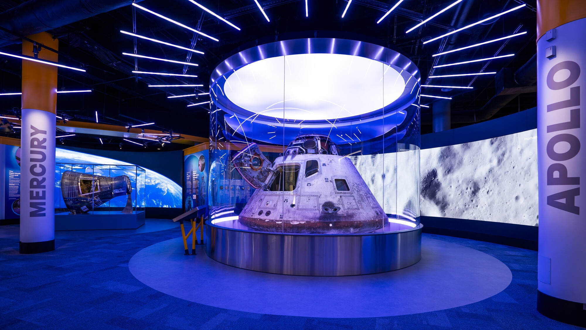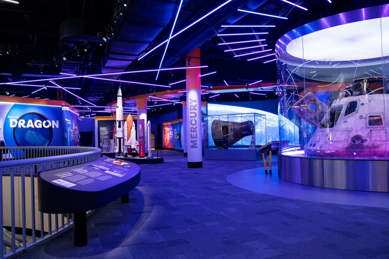 Entry DescriptionHuman curiosity finds its highest expression in the exploration of space. To honor this bold spirit, the designers created a rich spectrum of lighting solutions that both protect and showcase treasures like the SpaceX Dragon Spacecraft, NASA’s Apollo 8 Command Module, the Mercury Aurora 7 capsule, space suits, a Moon rock and more.