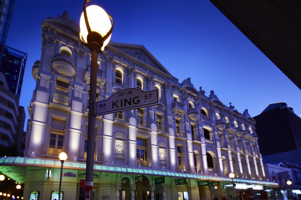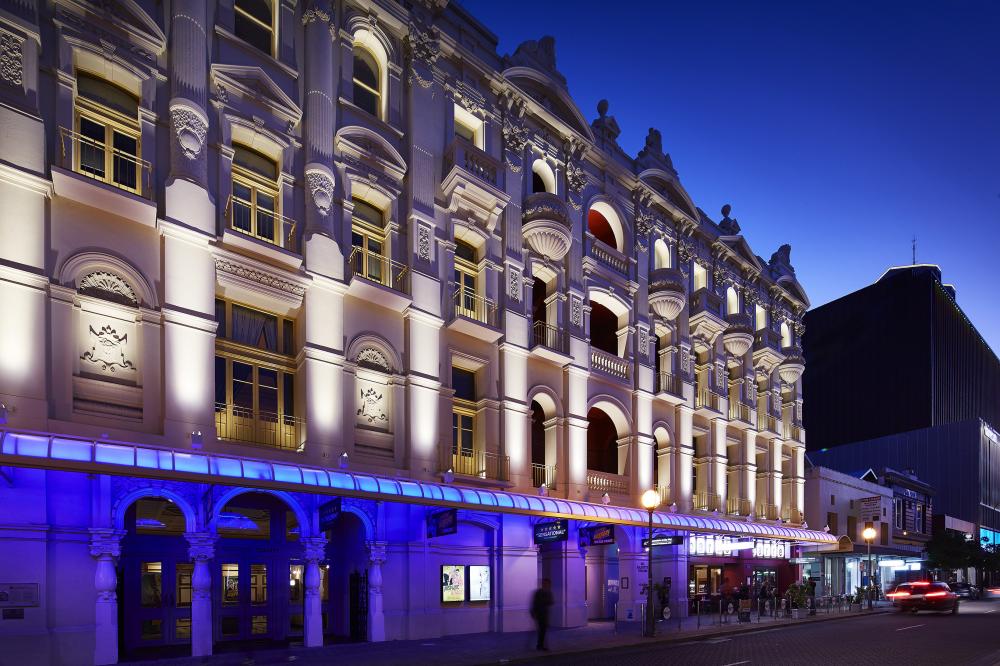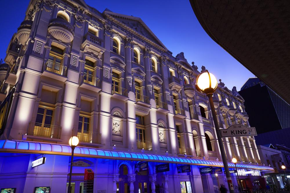 The lighting design concept for His Majesty’s Theatre was developed to provide a subtle contrast in lighting levels with the brightness decreasing upwards on the columns and increasing on the balconies and window frames to accentuate the inherent architectural signature of the building.