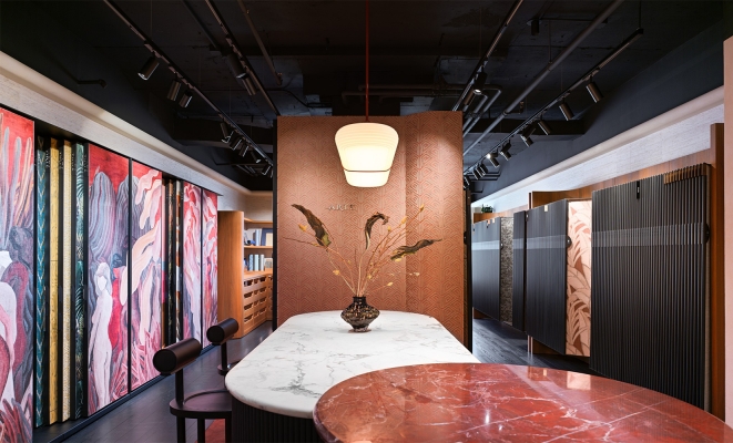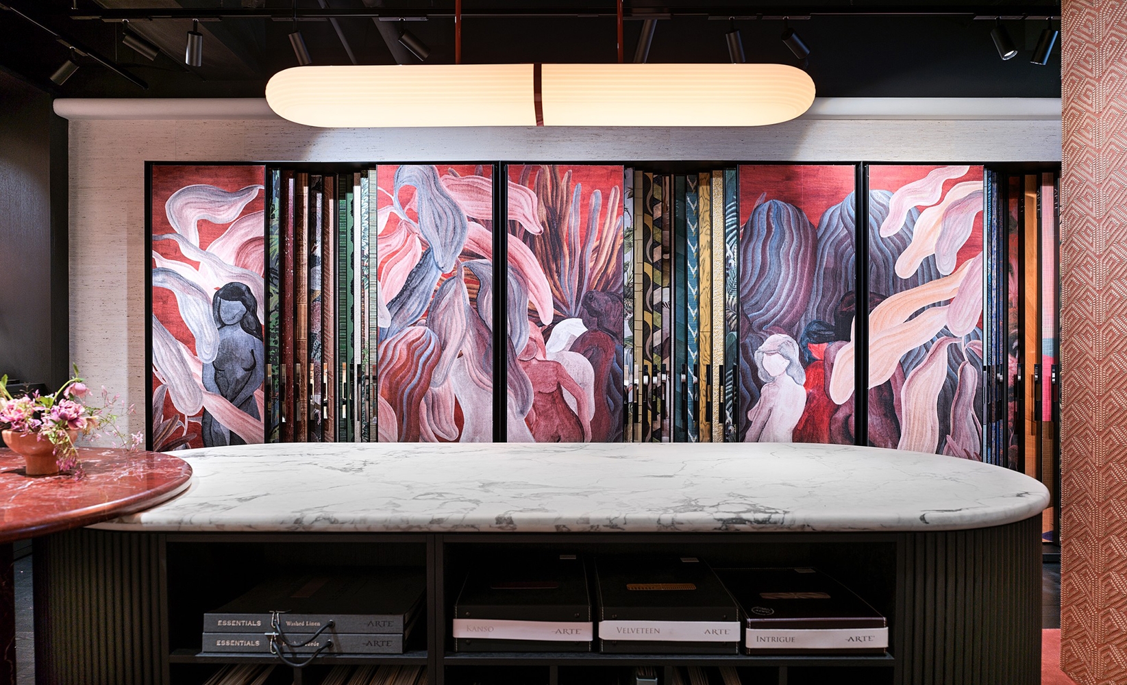 Departing from conventional retail norms, Arte’s merchandise ranges from small swatches to large pivoting panels and fully dressed walls.