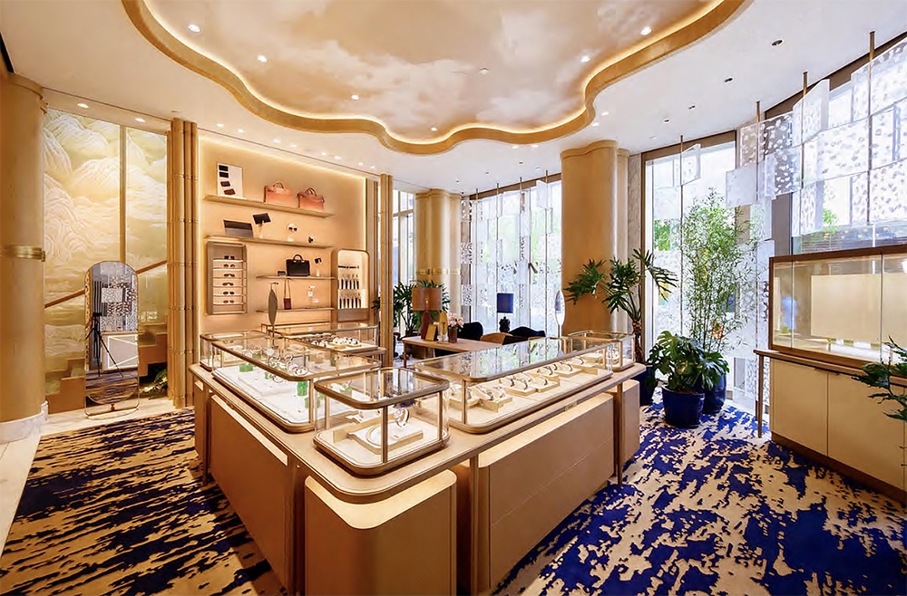Each area, bridal, icons, high jewelry, or tea house, has its own rhythm and emotional signature. Light reveals the textures, supports the flow between spaces, and enhances the unique character of each collection without ever overpowering it. The design avoids ostentation: instead, it plays with transparency, glow and shadow, to cultivate intimacy, elegance, and discretion.