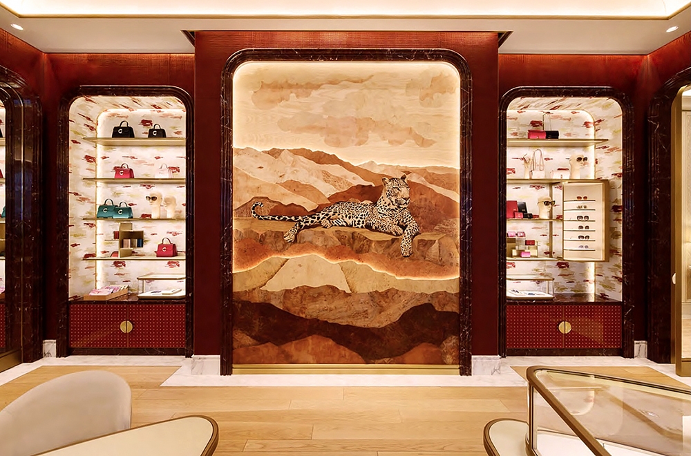 Fixtures are integrated with precision to highlight architectural details and materials, champagne-toned metalwork, carved wood, handwoven fabrics, while ensuring seamless functionality for a luxury retail environment. The result is an atmosphere that elevates the brand experience through light: immersive, tailored, and culturally rooted.