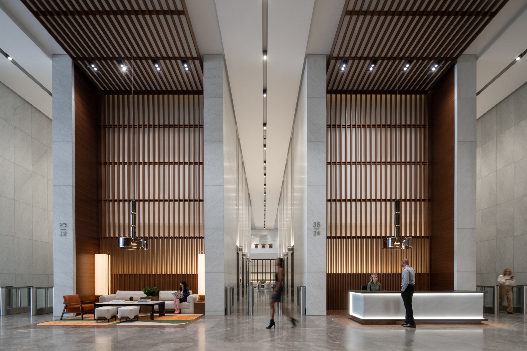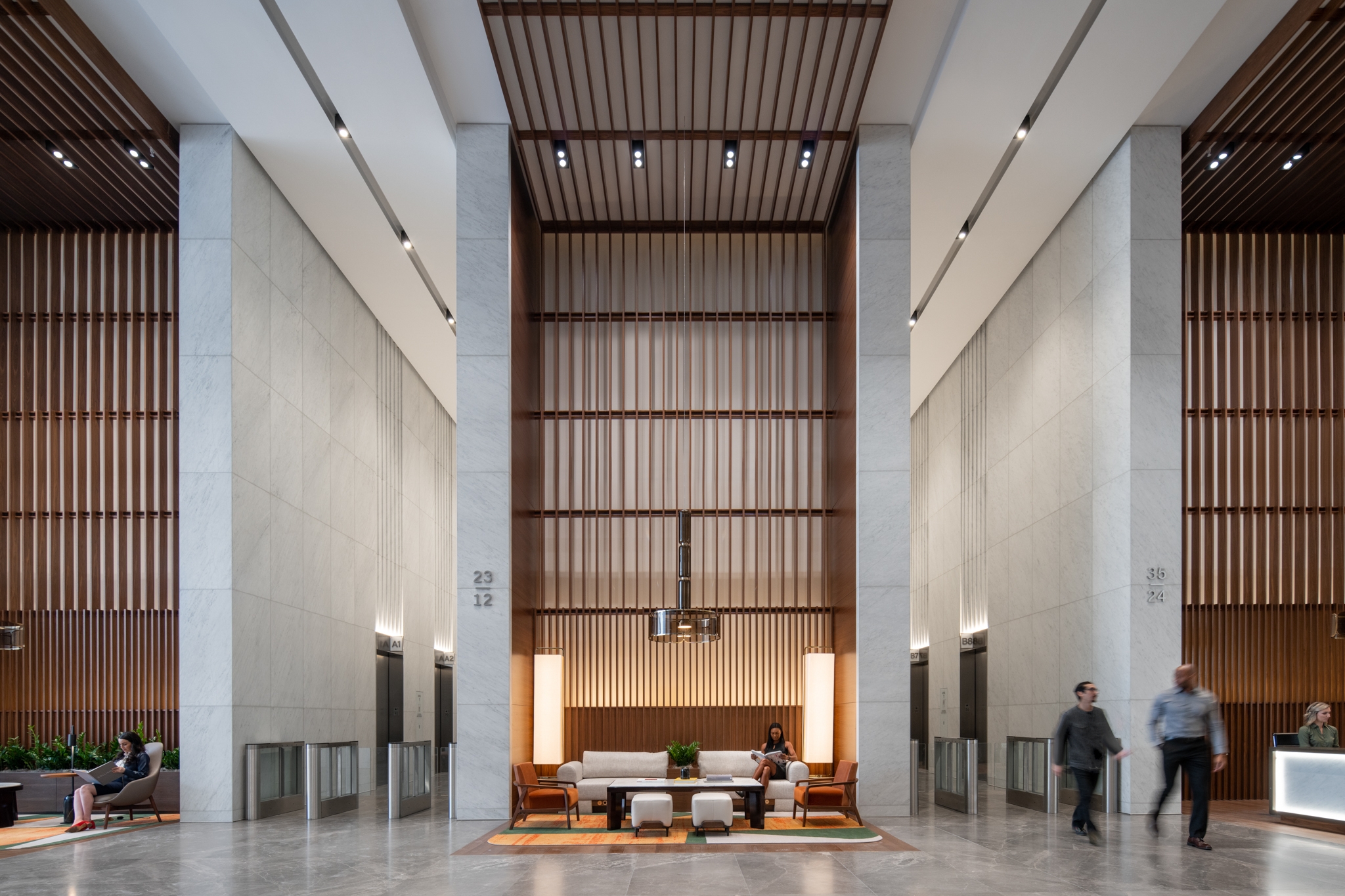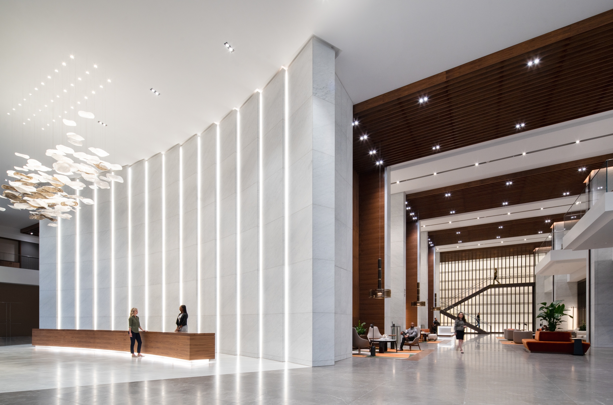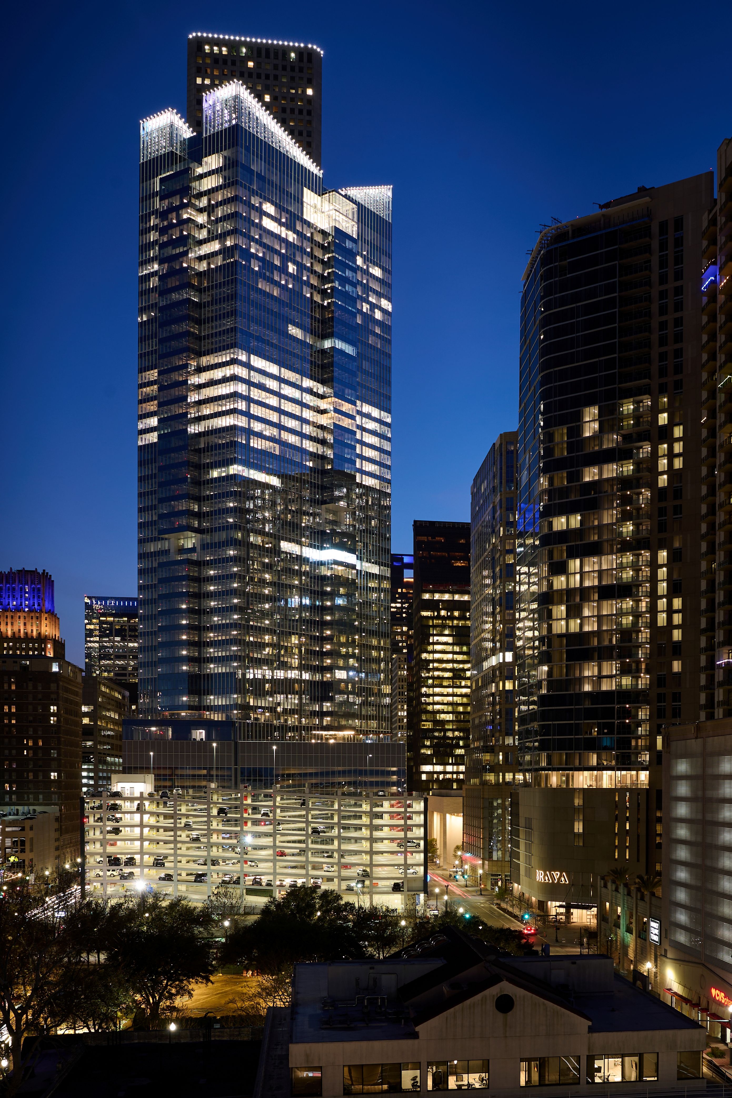 Entry DescriptionIn Downtown Houston, the newly erected Texas Tower, a 47-story architectural marvel, enchants with its sophisticated design. The lobby's interior lighting seamlessly integrates into the structure, featuring a striking stone wall for added allure. Progressing deeper into the building reveals amenity spaces adorned with gradually warming lighting and strategically placed decorative fixtures, culminating in a hospitality-inspired aesthetic. The exterior lighting, spanning ground plane and façade, serves as a beacon, fostering downtown nightlife and distinctly defining the building within the city's panorama. Texas Tower stands as a beacon of elegance, both day and night, in the vibrant heart of Houston.