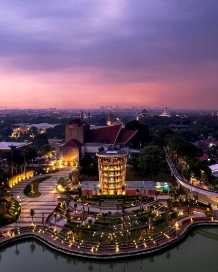 Entry DescriptionTaman Mini Indonesia Indah (TMII), a 147-hectare cultural park in Jakarta, celebrates the spirit of Indonesia by bringing together 33 provincial pavilions, 7 houses of worship, 17 museums, and a central lake adorned with a miniature representation of the Indonesian archipelago. Designed to represent the country’s motto of unity in diversity, TMII serves as both a cultural showcase and a beloved public space.