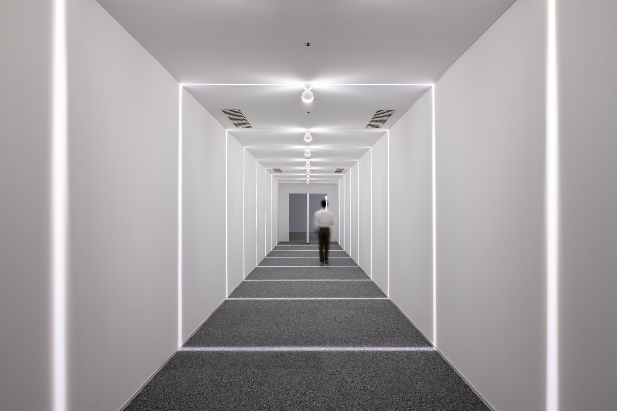 Functional areas like offices, classrooms, and the café extend the lighting concept. The art corridor uses linear "light blades" for a dimensional effect, while the café has starry downlights and playful cabinet lighting. These experimental designs merge art with urban life, offering a fresh narrative for the museum and city.