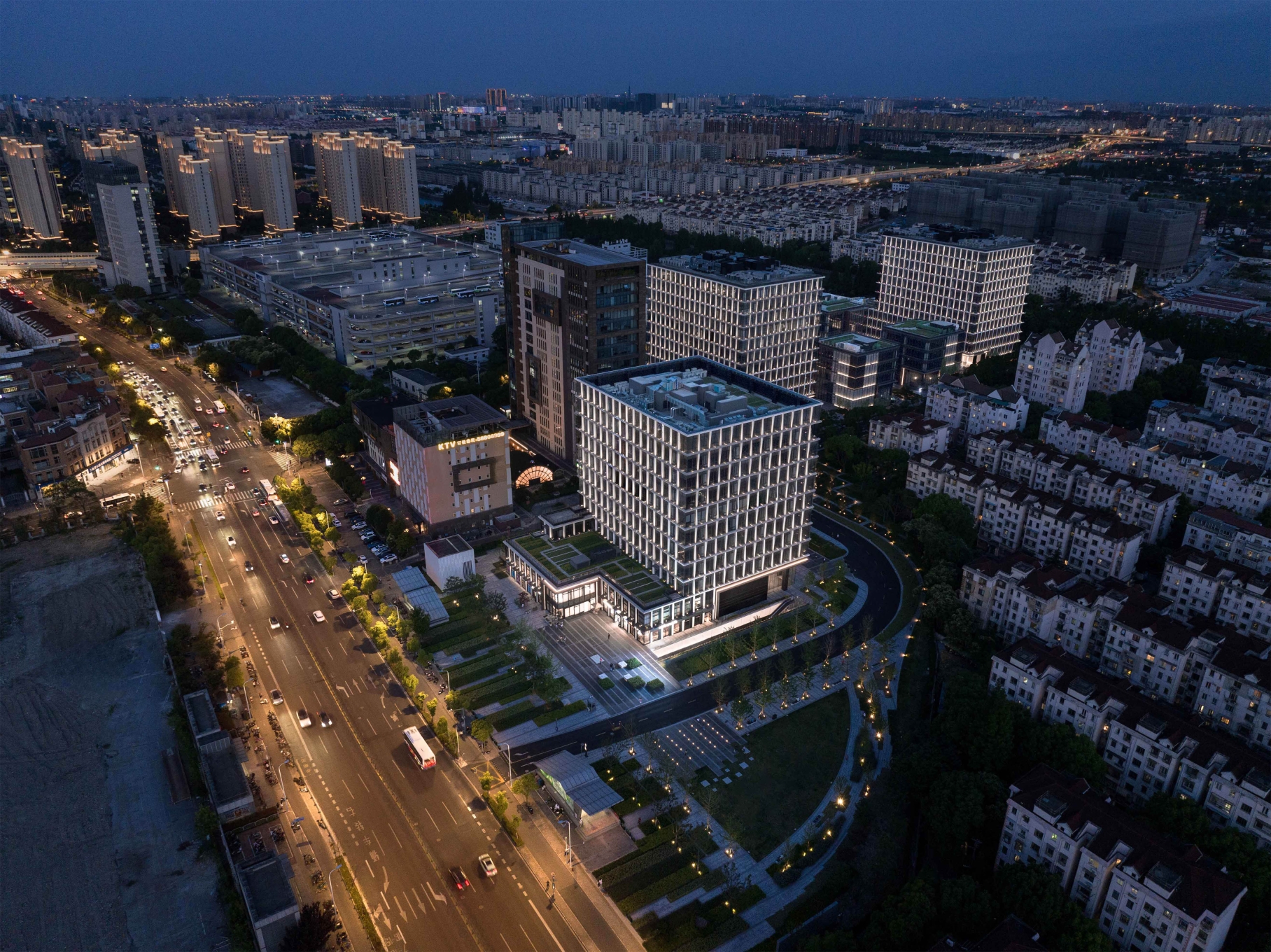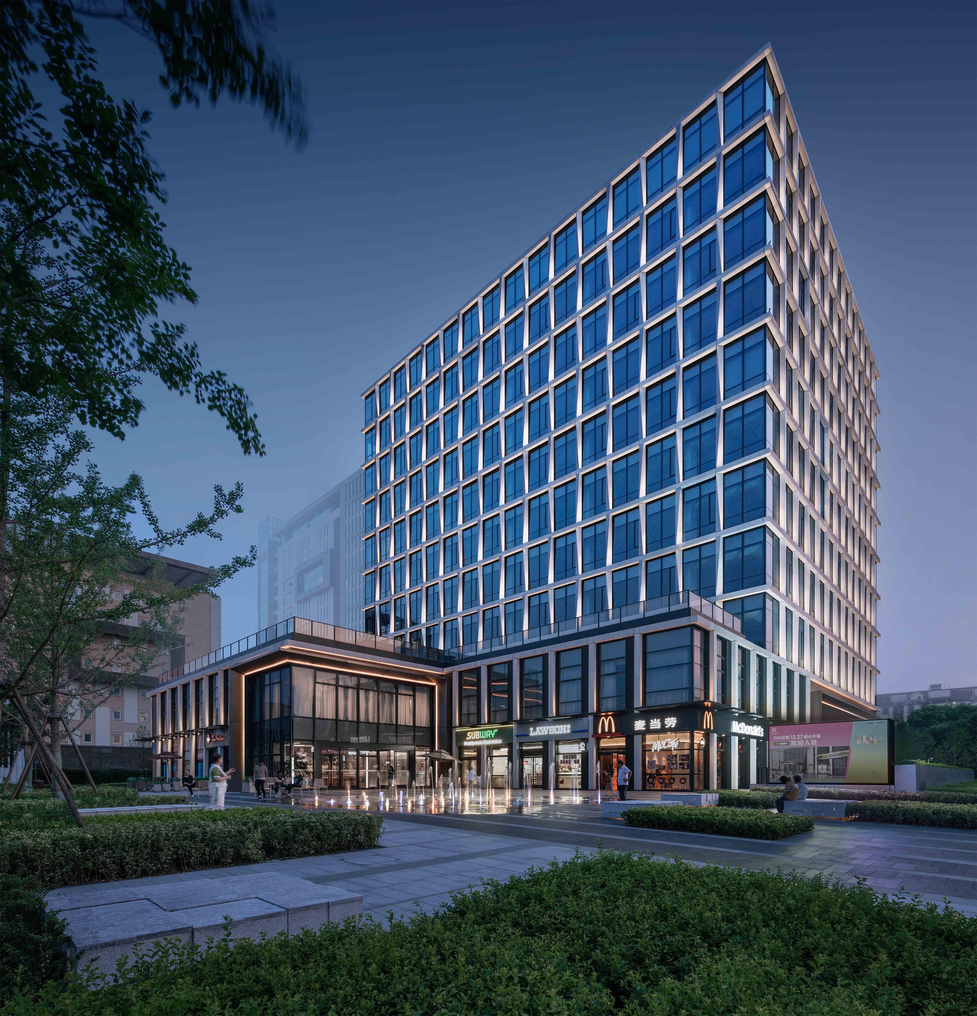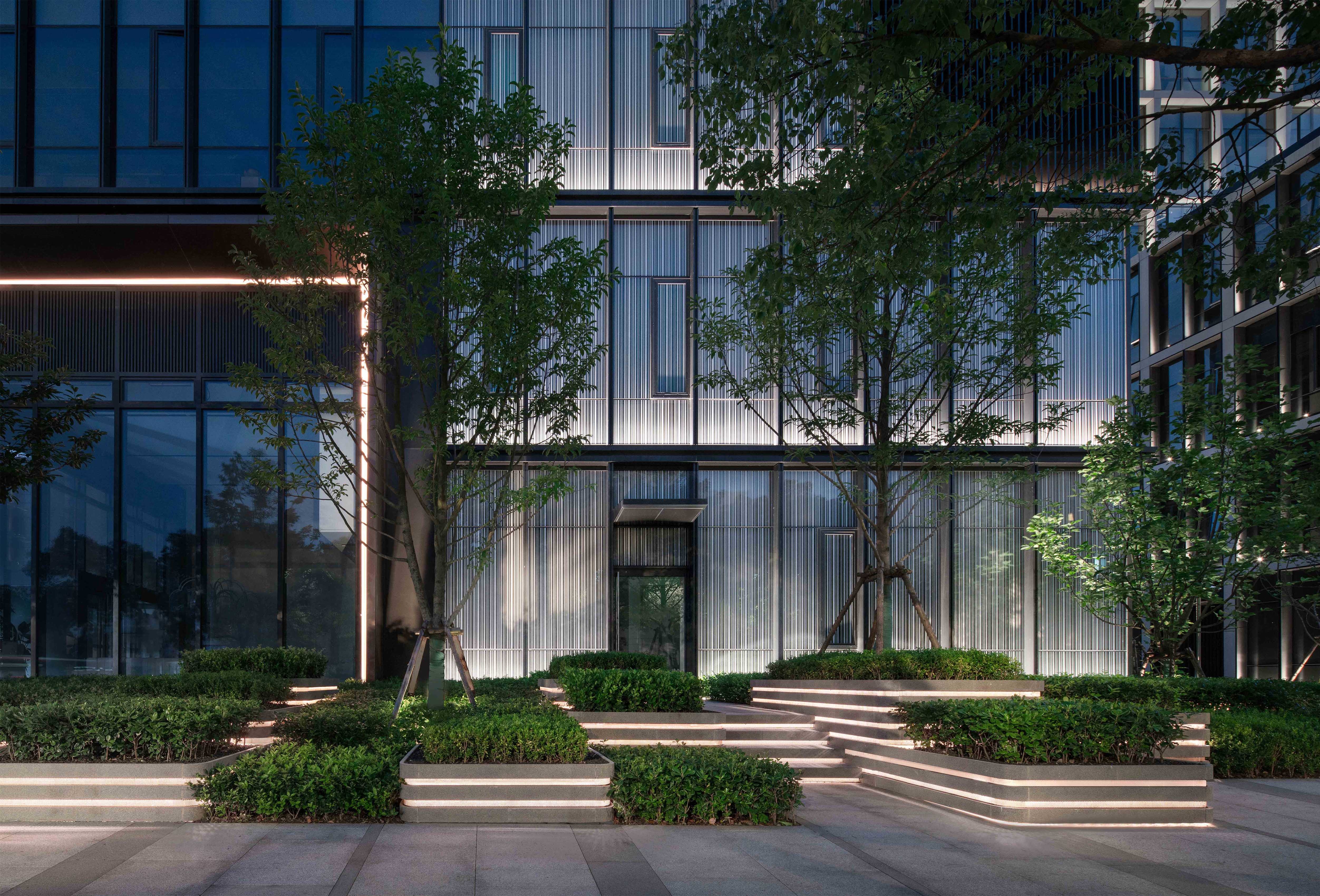 Entry DescriptionWe create a modern urban life center through the design and expression of light for architecture, landscape and interior, add a more diversified side to the city, and create a quiet and elegant open urban leisure environment. The core concept of lighting design is to enhance the beauty of architecture and landscape through the use of light and shadow and create a unique visual experience.We hope to improve the recognition of the project building through lighting, create a comfortable landscape night environment, create a suitable indoor lighting scene, and provide people with a convenient, beautiful and comfortable night activity space.The building facade combines the design of window frames, and uses lighting to emphasize the line beauty of the building, highlight the vertical and horizontal lines of the facade, and create a simple and bright modern commercial and office rhythm. The color temperature of the facade is overall coordinated in the range of 3000K~4000K to form a unified plot image, of which the commercial part uses a color temperature of 3000K to create a warmer and more approachable atmosphere.According to different regional functions, the landscape lighting design is divided into first-level lighting key points, second-level lighting key points and secondary key lighting.Improve the visual beauty of the landscape at night.