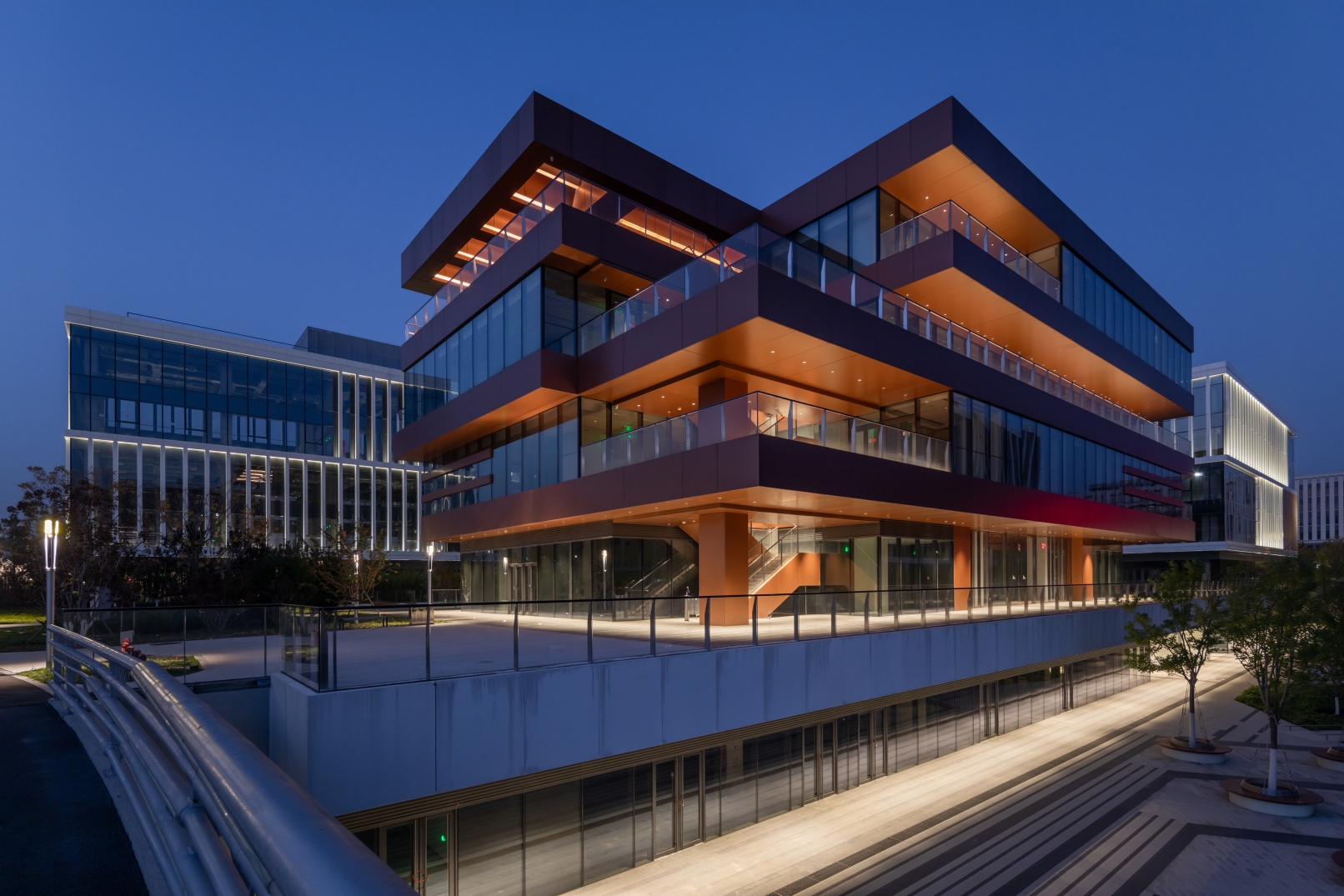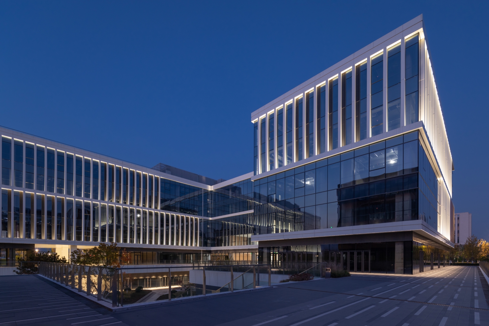 The lighting design here is dedicated to creating an elegant nocturnal environment for scientists, inspiring their future - focused ideas. Moreover, it serves the purpose of scientific outreach, allowing the public to gain insights into scientific research. Eschewing the flamboyant urban lighting style, it pursues a soft, harmonious glow amidst the natural scenery, cultivating a serene research atmosphere. Low - level lighting is implemented, with fixtures placed at ground level. This not only provides a relaxed ambiance for scientists to think while walking but also starkly contrasts with the bustling city.