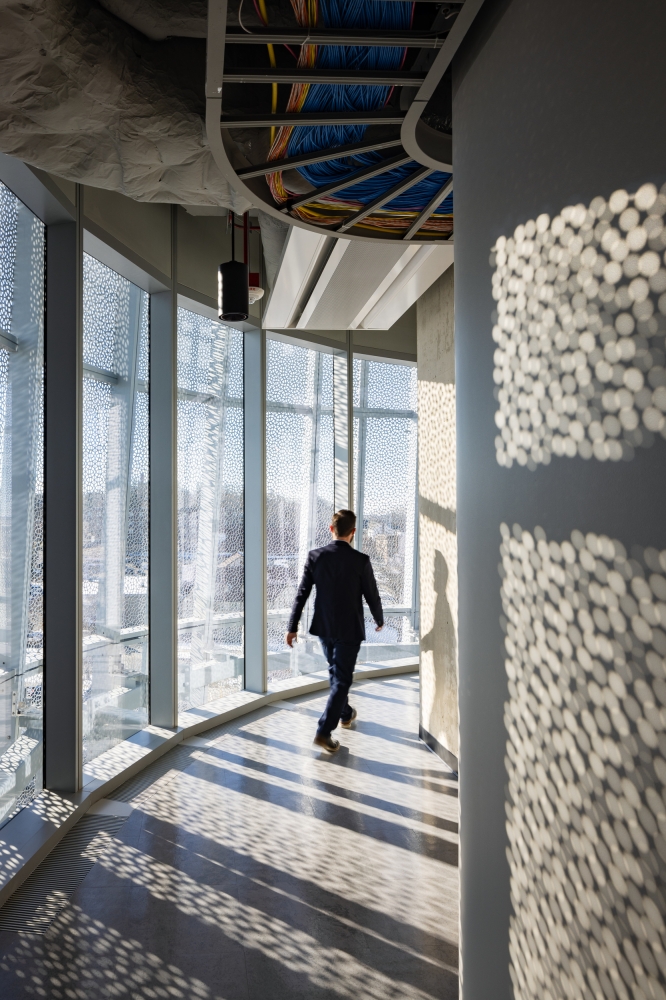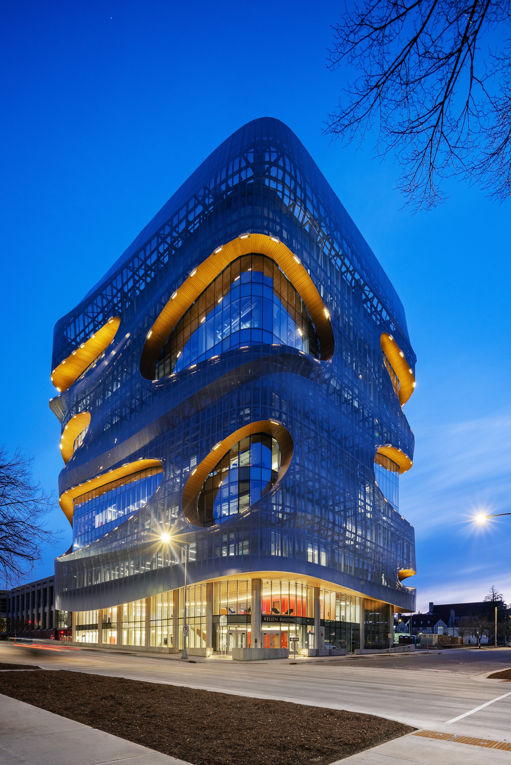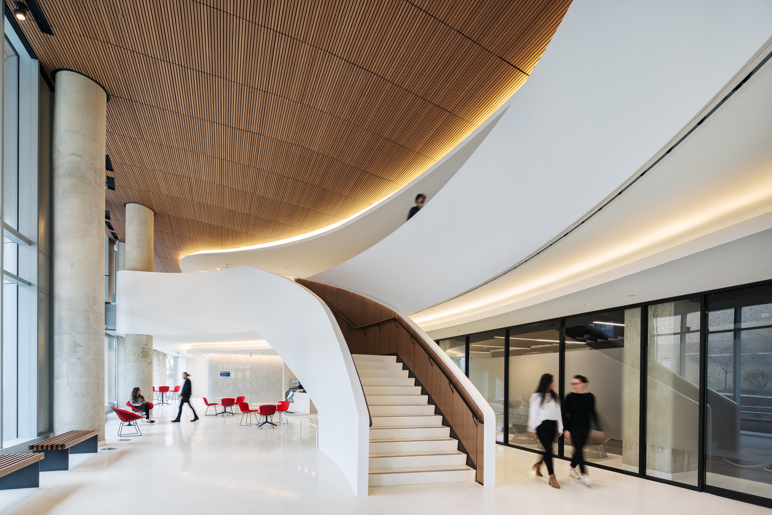 Entry DescriptionThis world-class medical research laboratory pioneers modern cancer research and reimagines what a “lab of the future” can be. An adaptable, collaborative space where lighting plays a central role in shaping user experience, architecture, and performance. The lighting design solves a fourfold challenge: enhance human comfort, express interior and exterior architectural form, integrate daylight, and support the building’s mission. Inside, a balance of technical precision and architectural intent results in a motivating, high-performance research environment. Graze, cove, indirect, and decorative lighting emphasize form and materiality, while magnetically mounted, movable task luminaires offer personalized flexibility. On the exterior, a perforated metal scrim becomes a symbolic dermis, opaque by day and translucent by night, revealing internal activity through illuminated oculi. Warm accents and landscape glows reinforce the facility’s presence in the community. Throughout, digital controls enable precise lighting balance across all spaces, day and night.