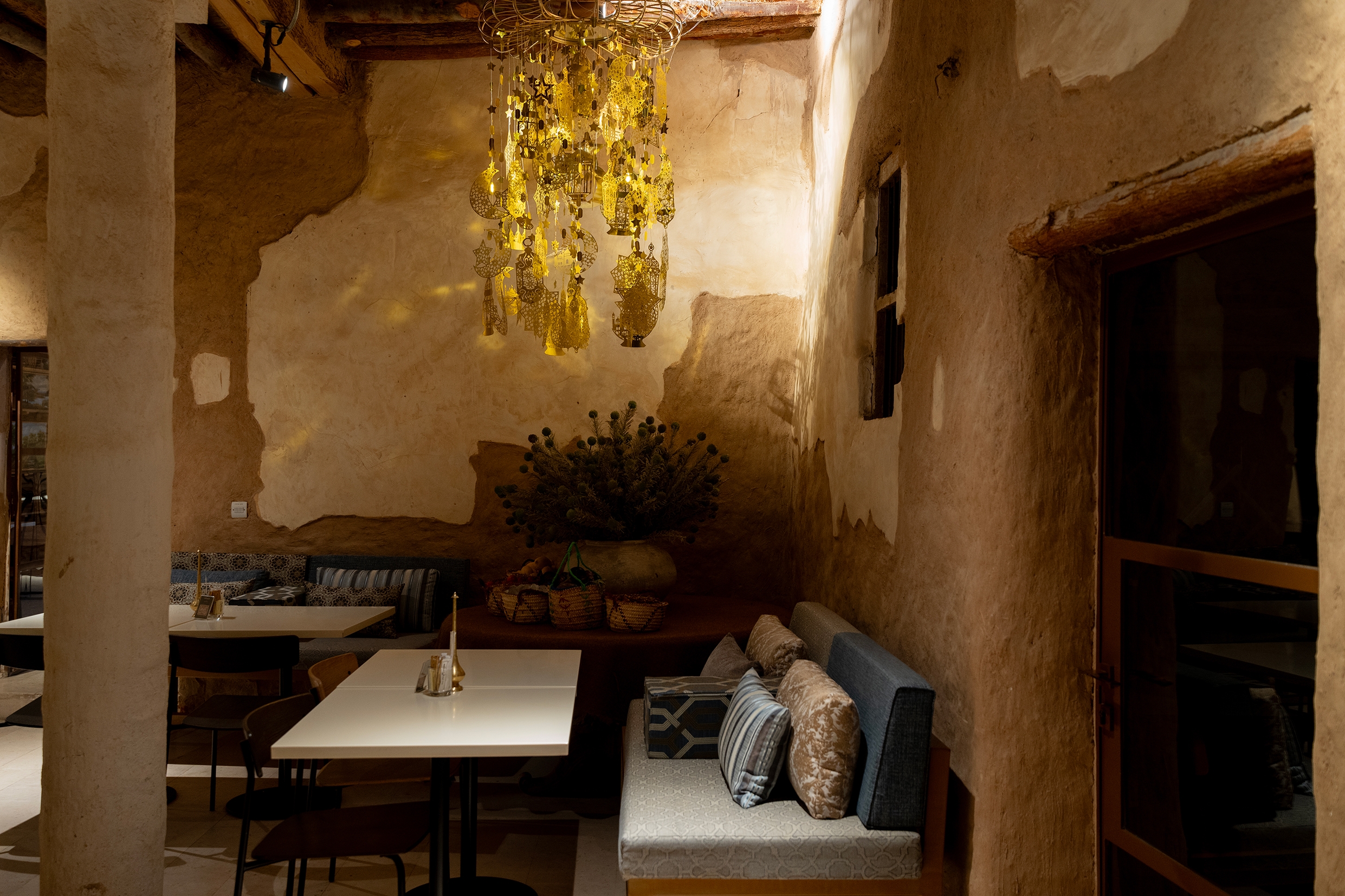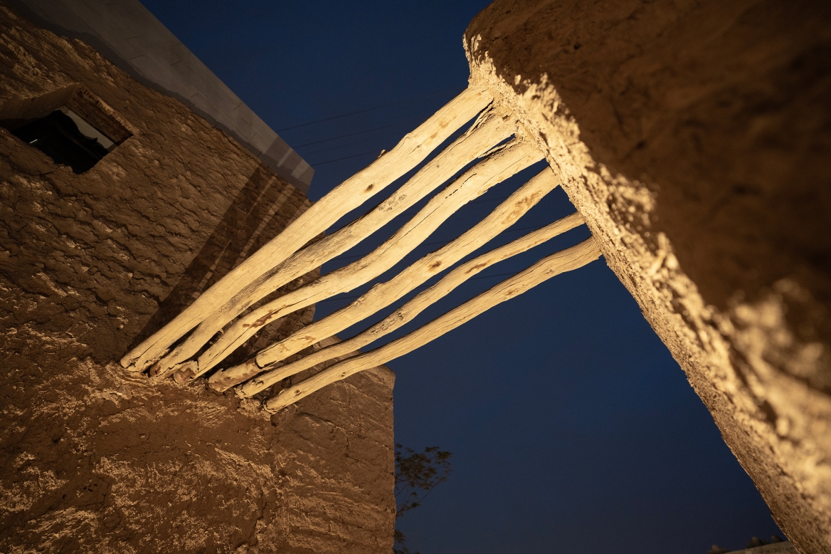 Exterior lighting emphasizes the natural character of the historic stone and adobe walls, using warm tones to accentuate materiality and depth. Ground lighting reveals rugged textures, while overhead fixtures ensure safe navigation. The design avoids visual clutter, enhancing spatial rhythm and guiding movement through light.