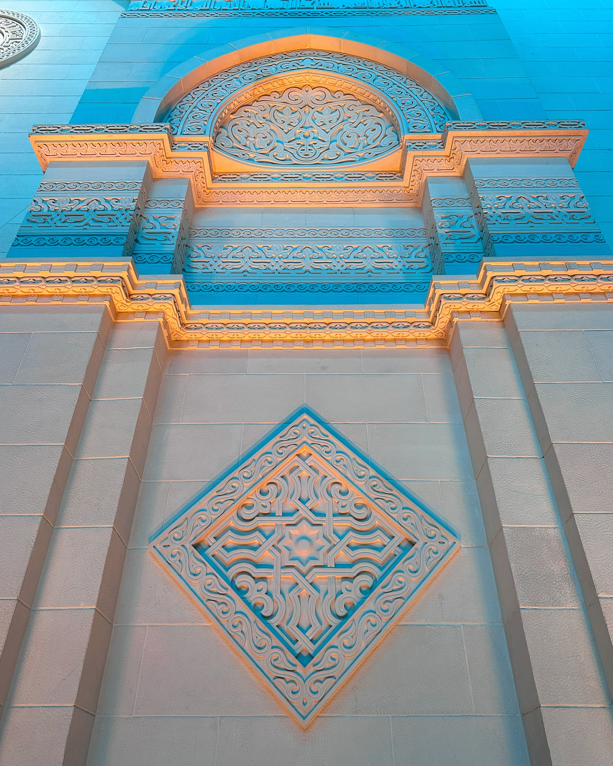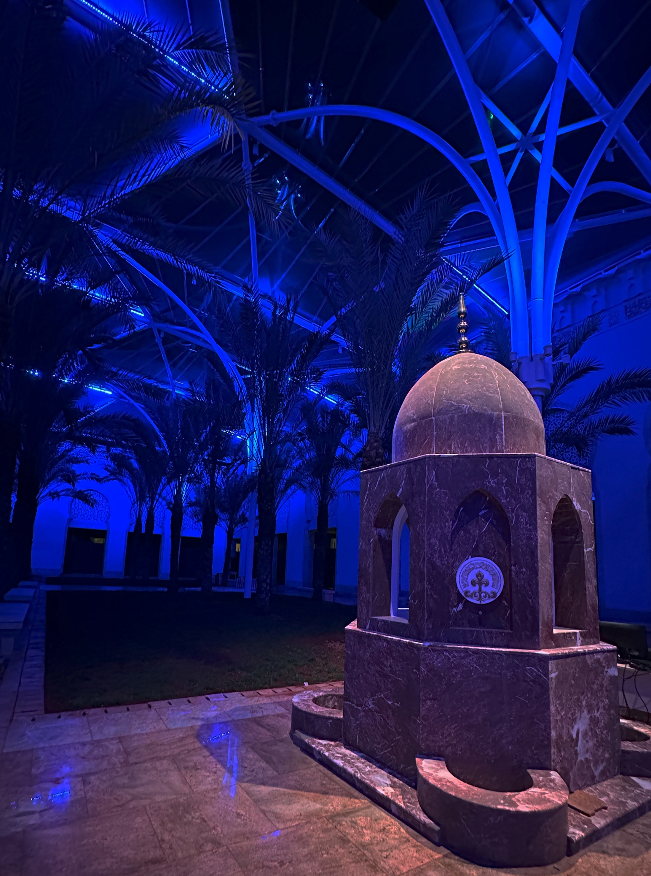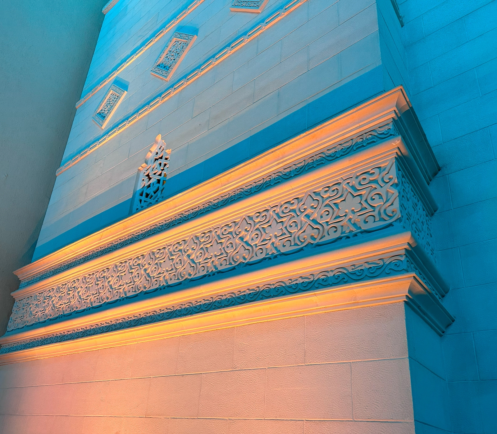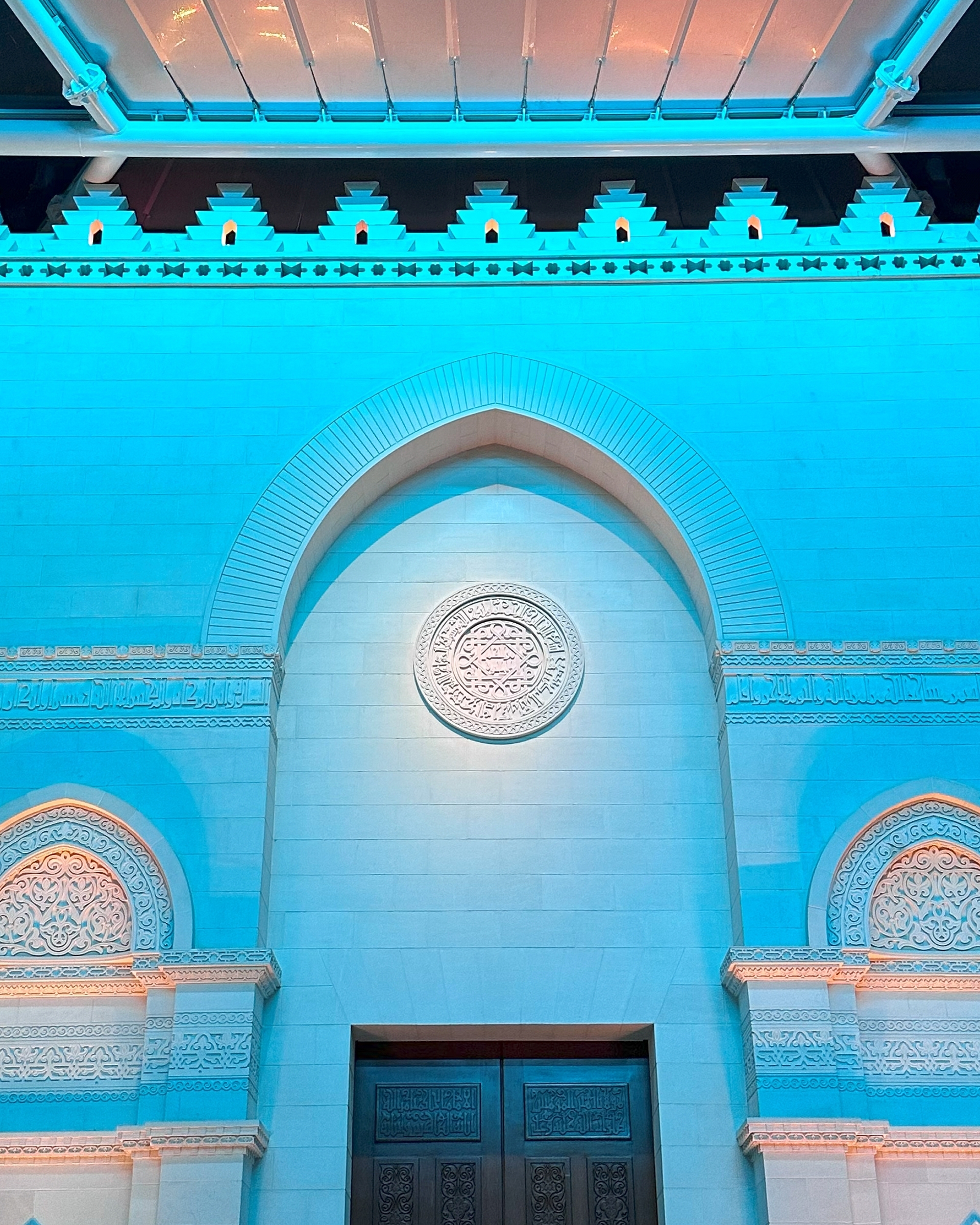 Entry DescriptionIn AlJamea tus Saifiyah University’s main courtyard, architecture bridges past and present, creating a gathering space framed by facades inspired by 10th-century Fatimid architecture and covered by a contemporary ETFE canopy supported by soaring steel arches. By day, it is a hub of student activity; by night, it transforms into a luminous sanctuary for reflection, prayer, and events. The lighting honors both historic heritage and modern functionality. Mosque and colonnade facades with intricate carvings, stone medallions, and recessed arches are revealed by strategically placed low-profile accent fixtures, while 8-degree narrow-beam grazers along canopy arches create ribbons of light overhead. Recessed in-grades softly wash the details while maintaining low ambient levels. The design prioritizes user comfort with louvers, shielding, and precise aiming to prevent glare, and support natural adaptation. Programmable RGBW luminaires with preset scenes produce illuminance ranging from 5–25 lux for calm reflection to 250 lux for AV/stage needs, with an overall 0.06 W/sq.ft. installed. At quiet hours, shadows reveal intricate stonework, creating meditative stillness; during celebrations, the courtyard pulses with color and energy, uniting the community in joy. This interplay of calm and vibrancy demonstrates lighting’s power as an emotional medium, blending historical craftsmanship.