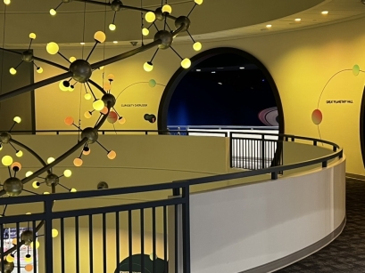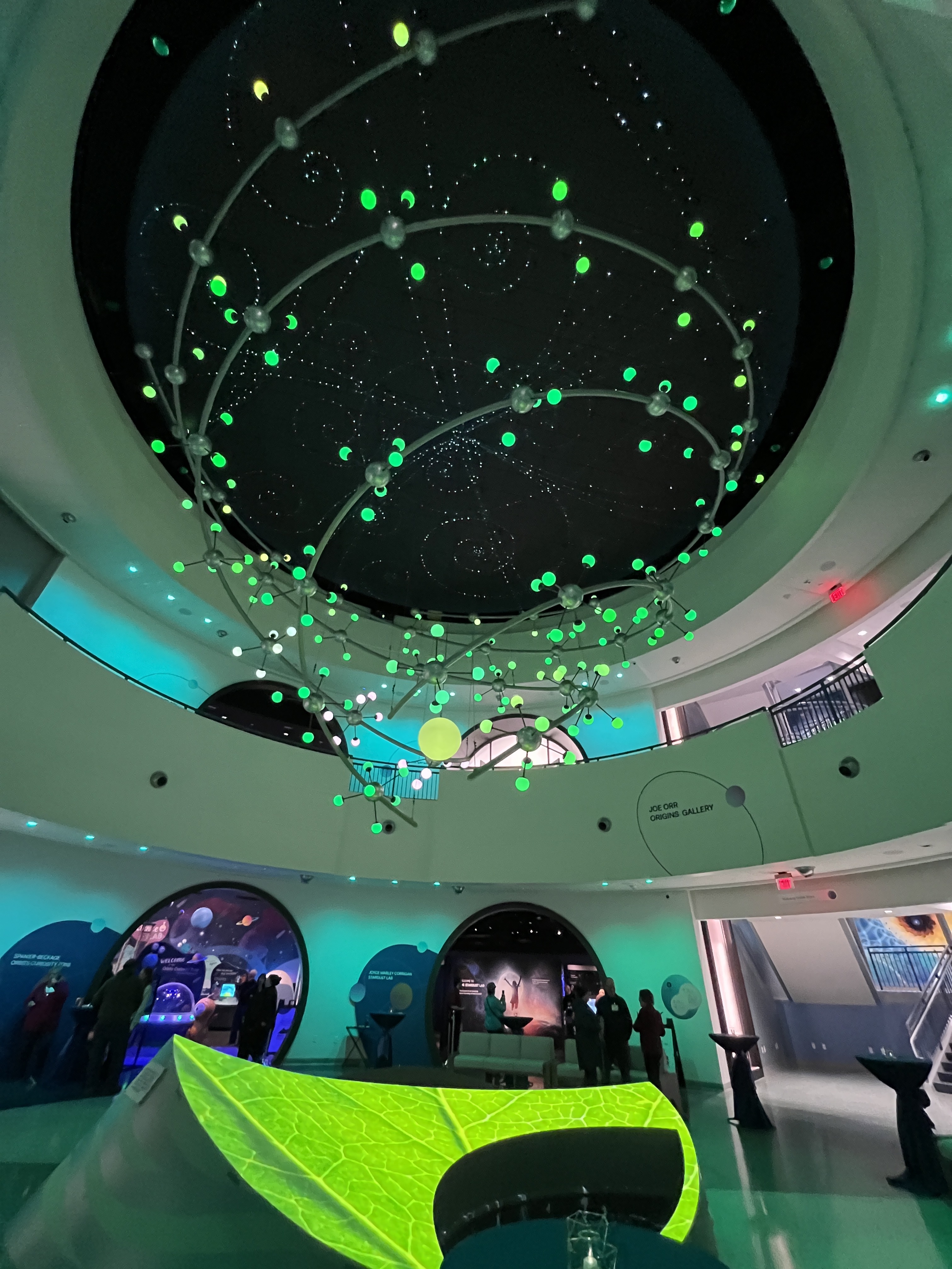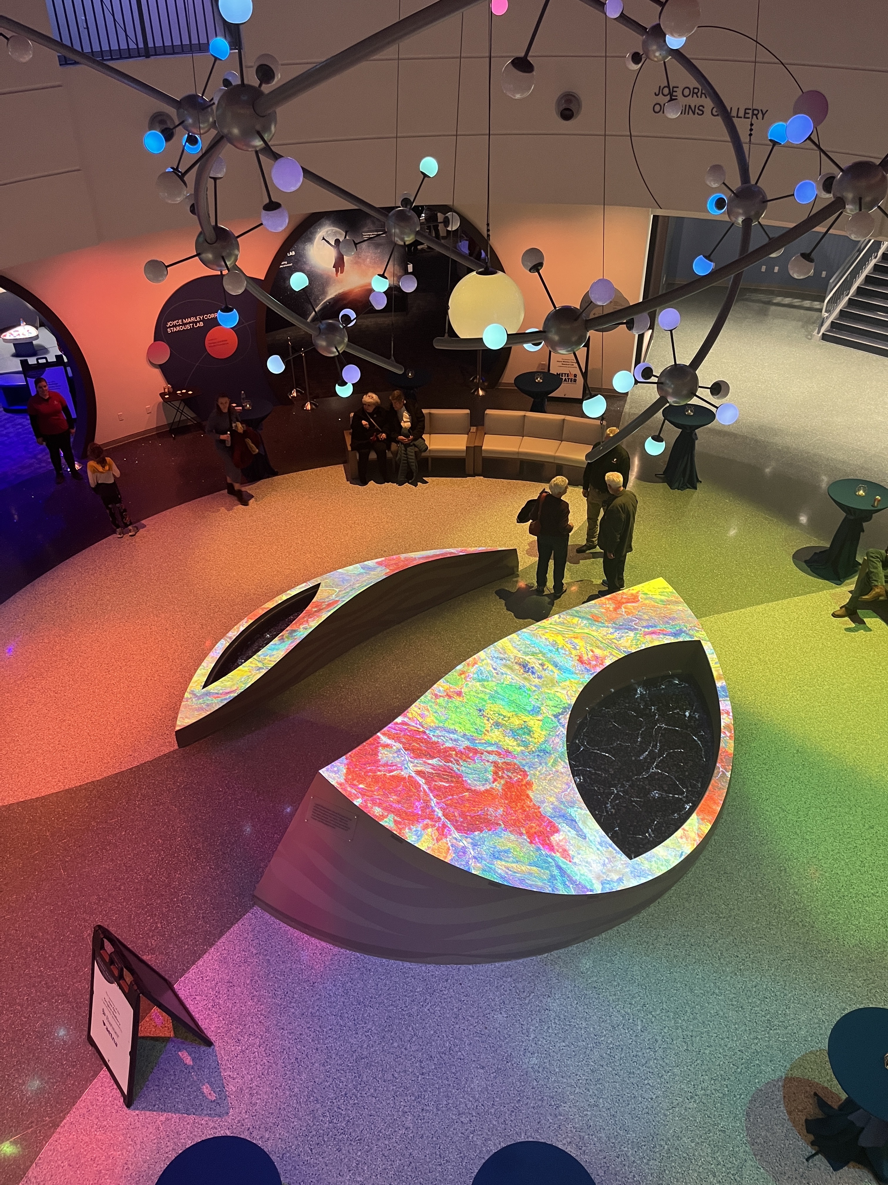 Entry DescriptionThe specialty lighting for the Dark Sky Planetarium is integrated with audiovisual systems and interactive technology to create an immersive, educational experience. Each of the project’s spaces has a unique design criteria: the Atrium features striking architectural lighting to welcome visitors, the Astro Gallery utilizes adaptable lighting to support exhibits on cosmic phenomena, the Children’s Gallery offers safe and playful illumination to engage young audiences, and the Presentation Area includes flexible lighting for diverse programming. The Origins Gallery, the central hub of the Astronomy Discovery Center, is highlighted with a suspended sculptural centrepiece representing the universe’s evolution, brought to life with choreographed lighting and projection-enhanced 3D landforms that showcase Earth’s biodiversity, blending science and art to inspire curiosity and a deeper understanding.