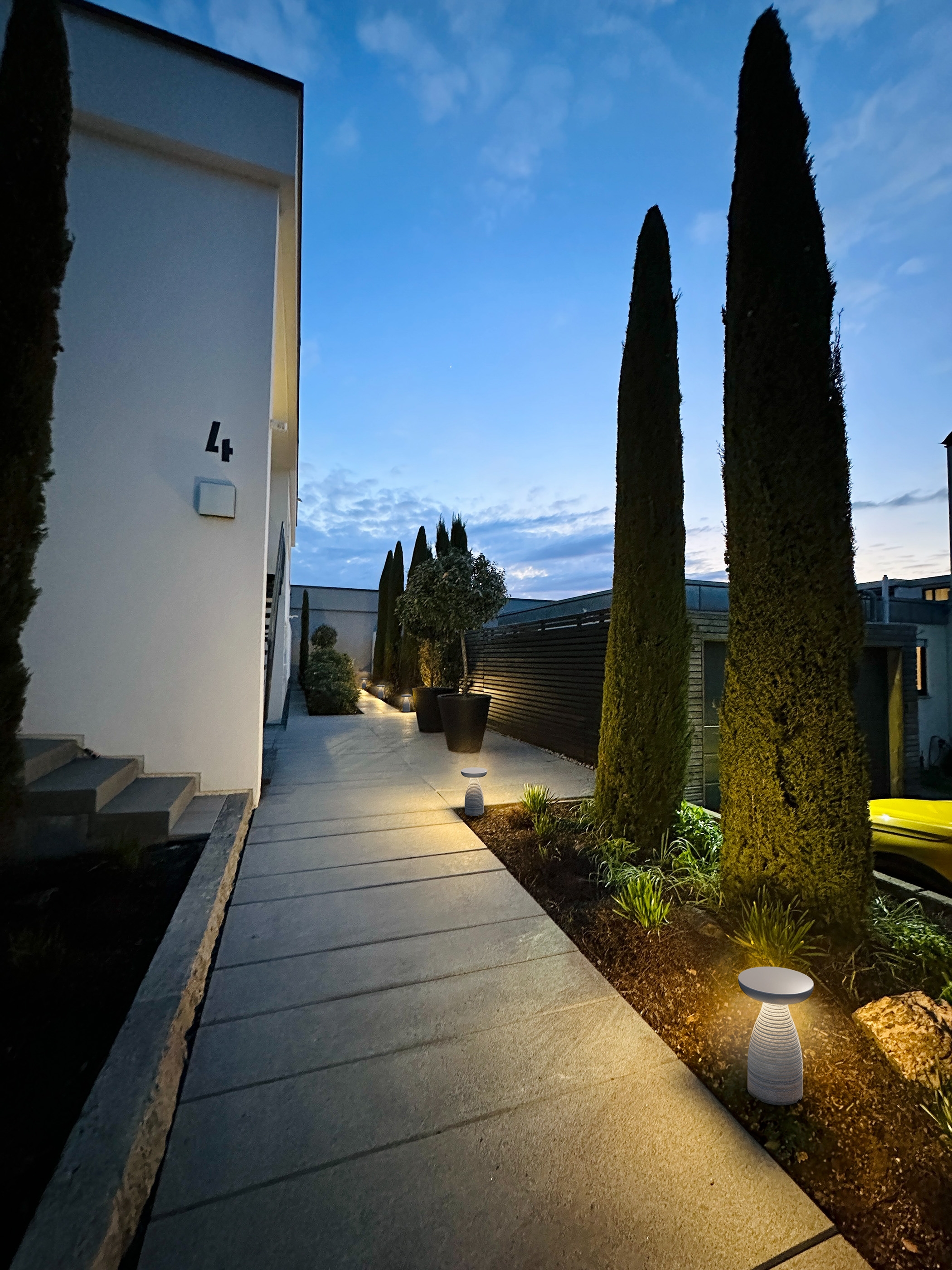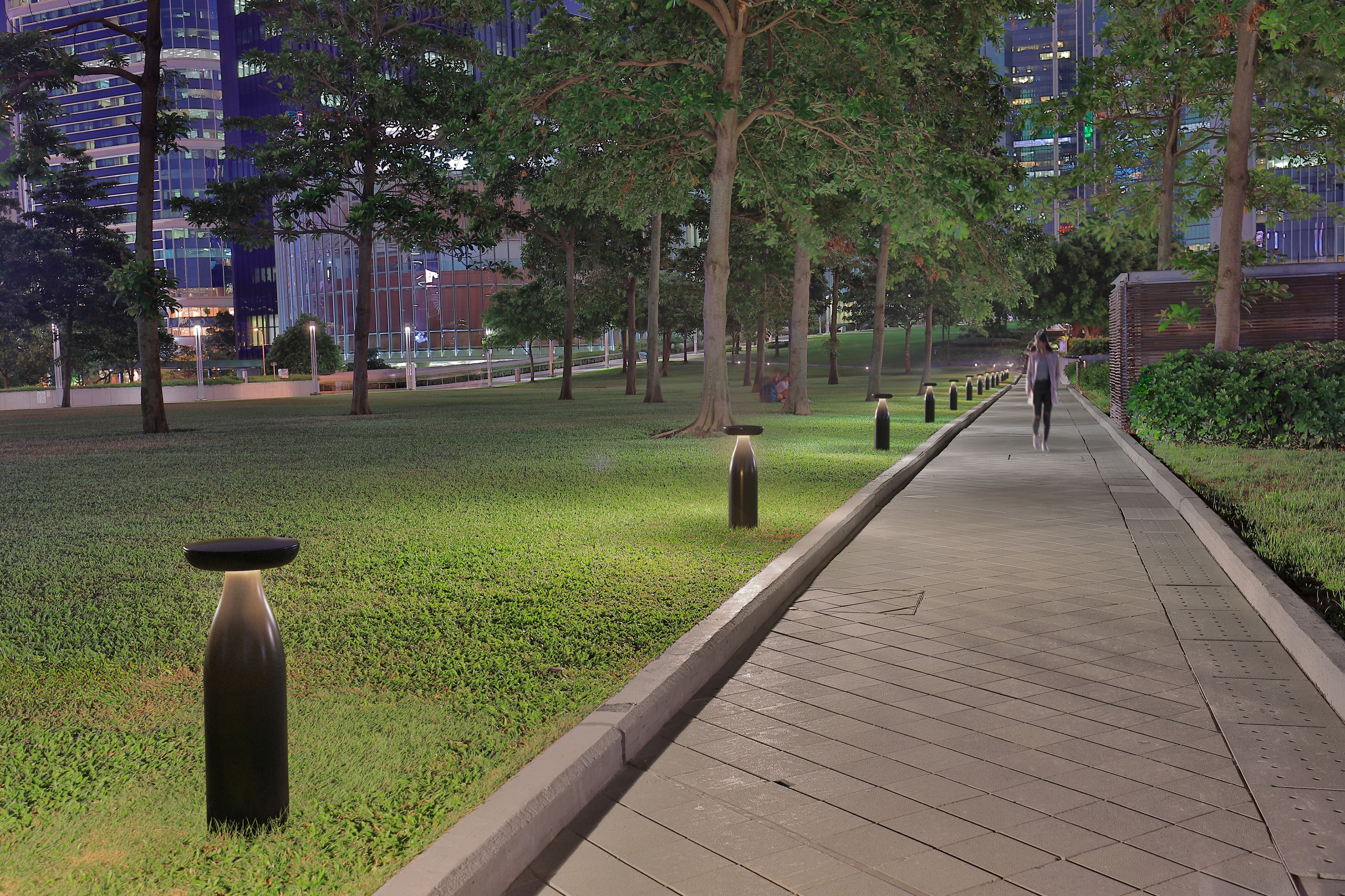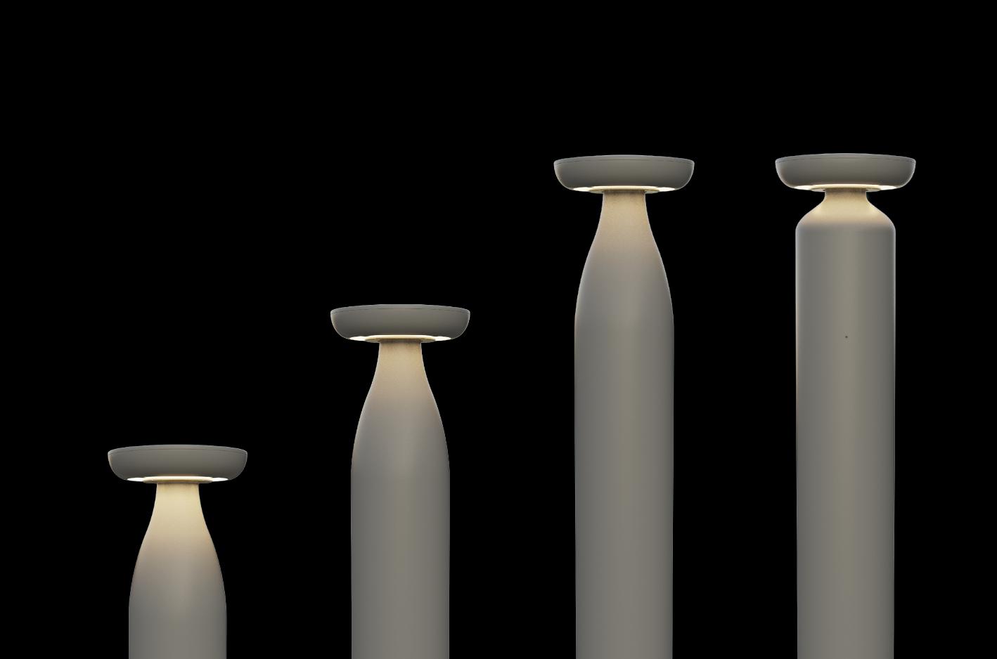 This unique bollard family enhances architectural beauty and design. The lighting system includes a discrete LED light source at the top of the base, which comes in a variety of materials including metal, stone, or porcelain. This comfortable, highly efficient lighting is designed for consistent brightness and visibility, thanks to the completely sealed optical chamber that provides an IP65 rating.