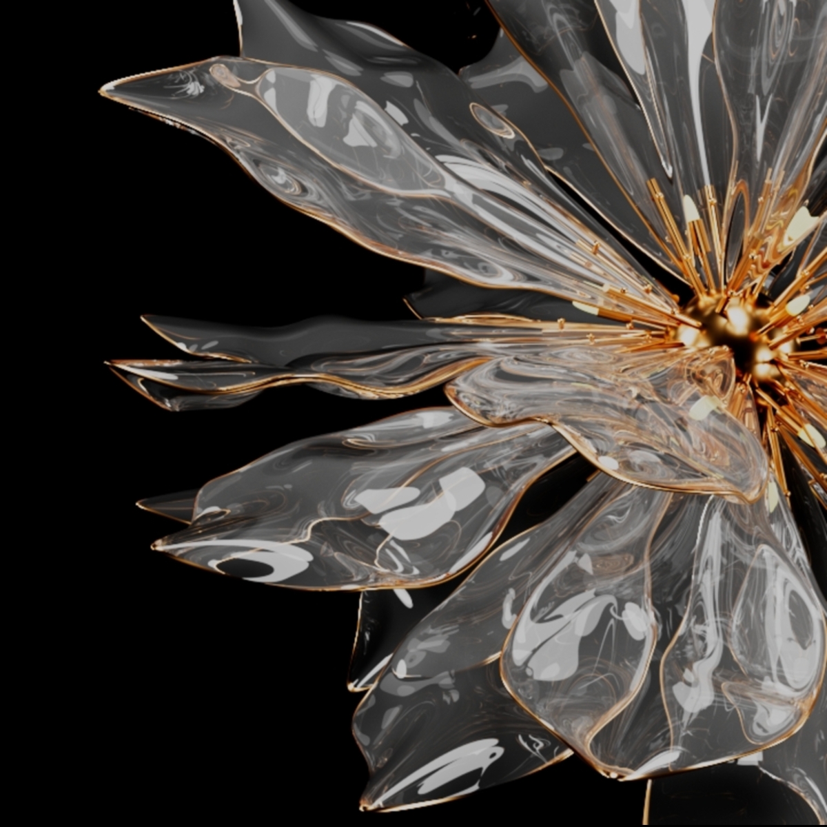 Entry DescriptionThe Alba Lux Chandelier is a masterpiece of modern luxury, combining the purity of crystal with the opulence of gold. Its delicate, transparent petals, skillfully crafted to mimic the grace of nature, are adorned with fine gold-plated veins that create a mesmerizing play of light and shadow.