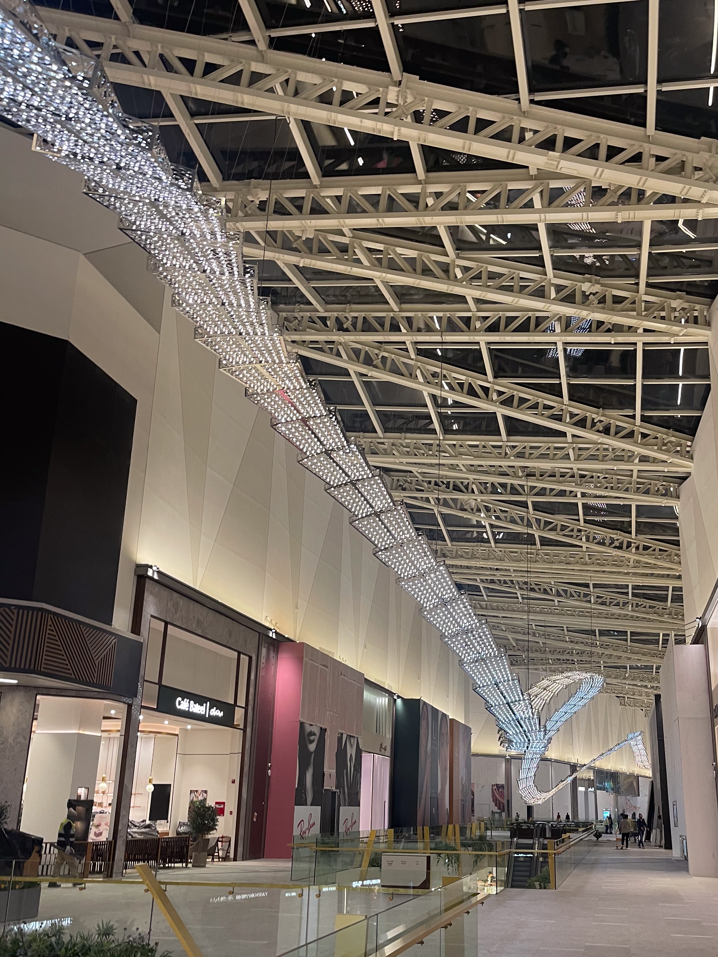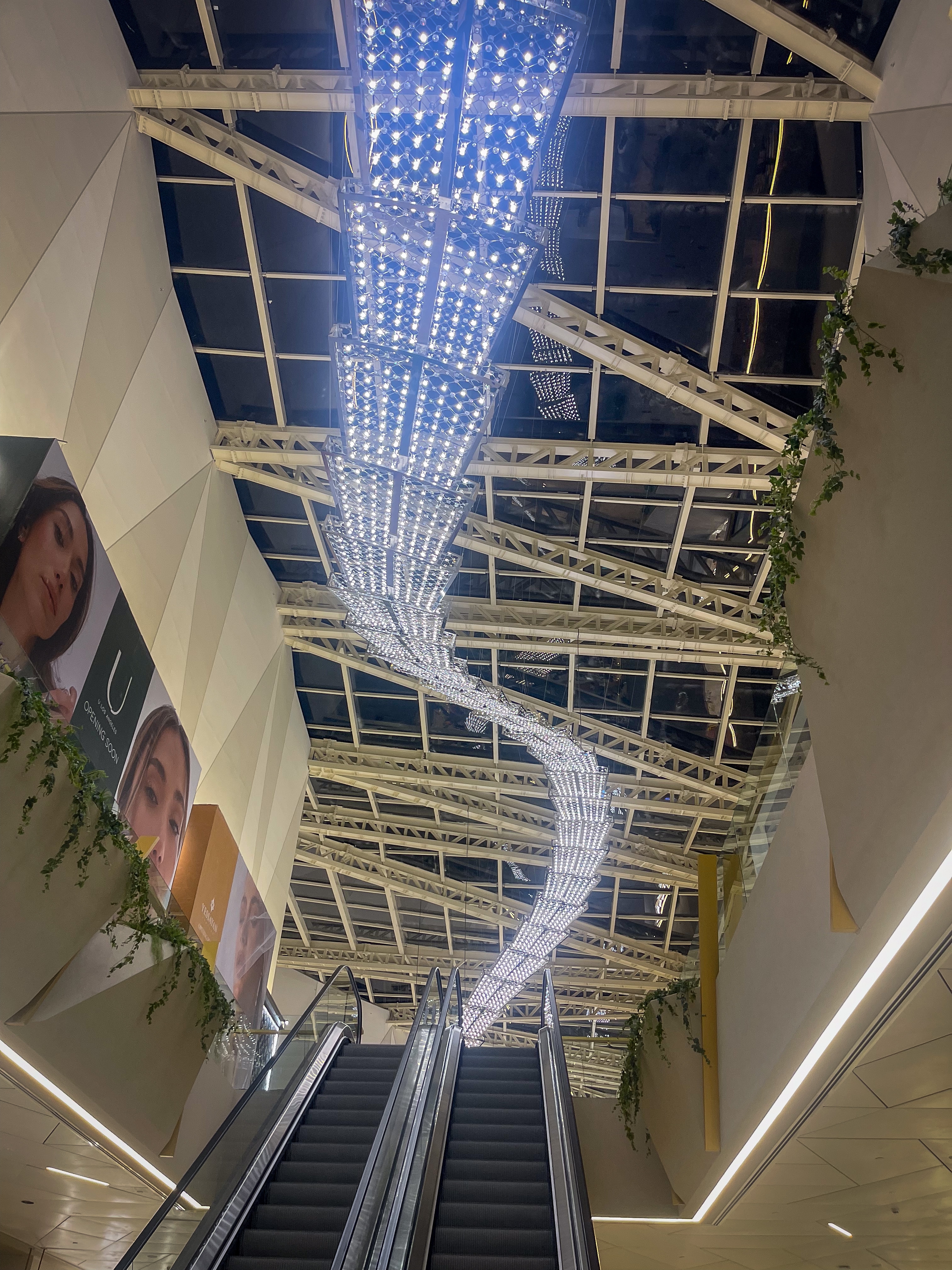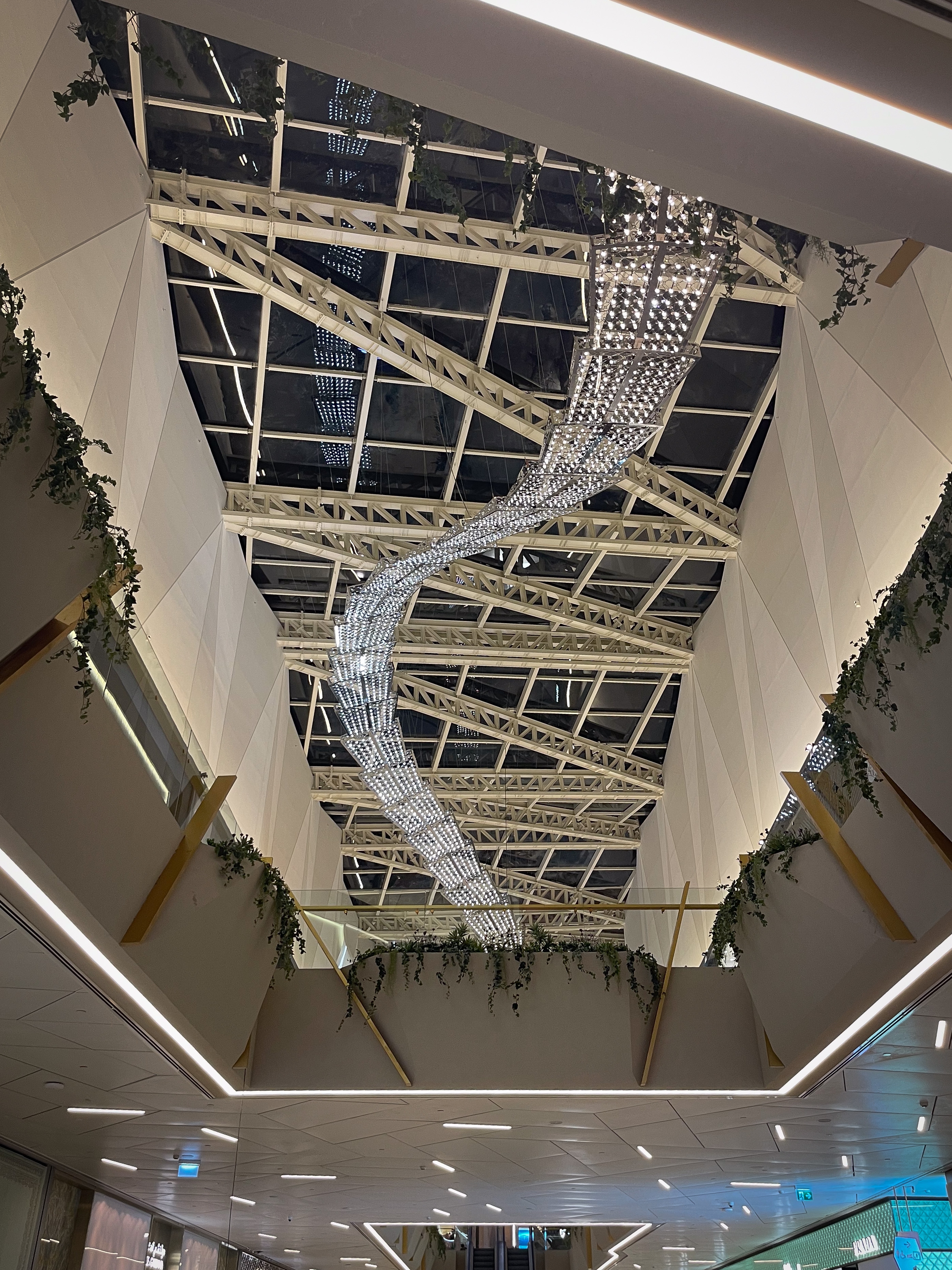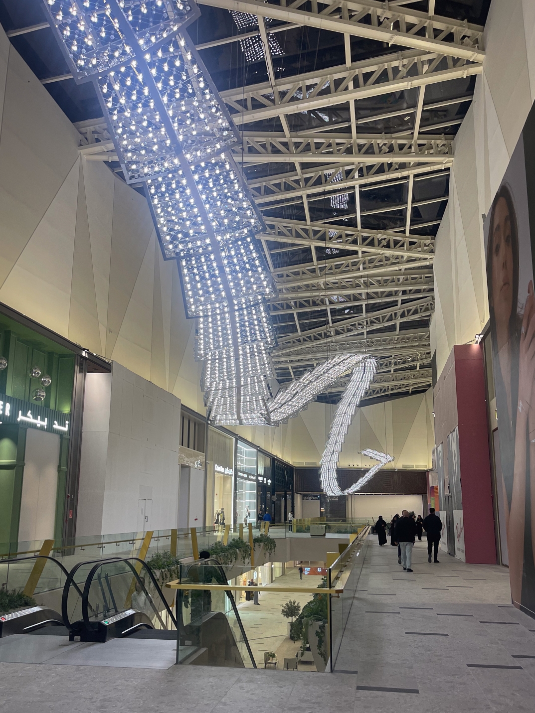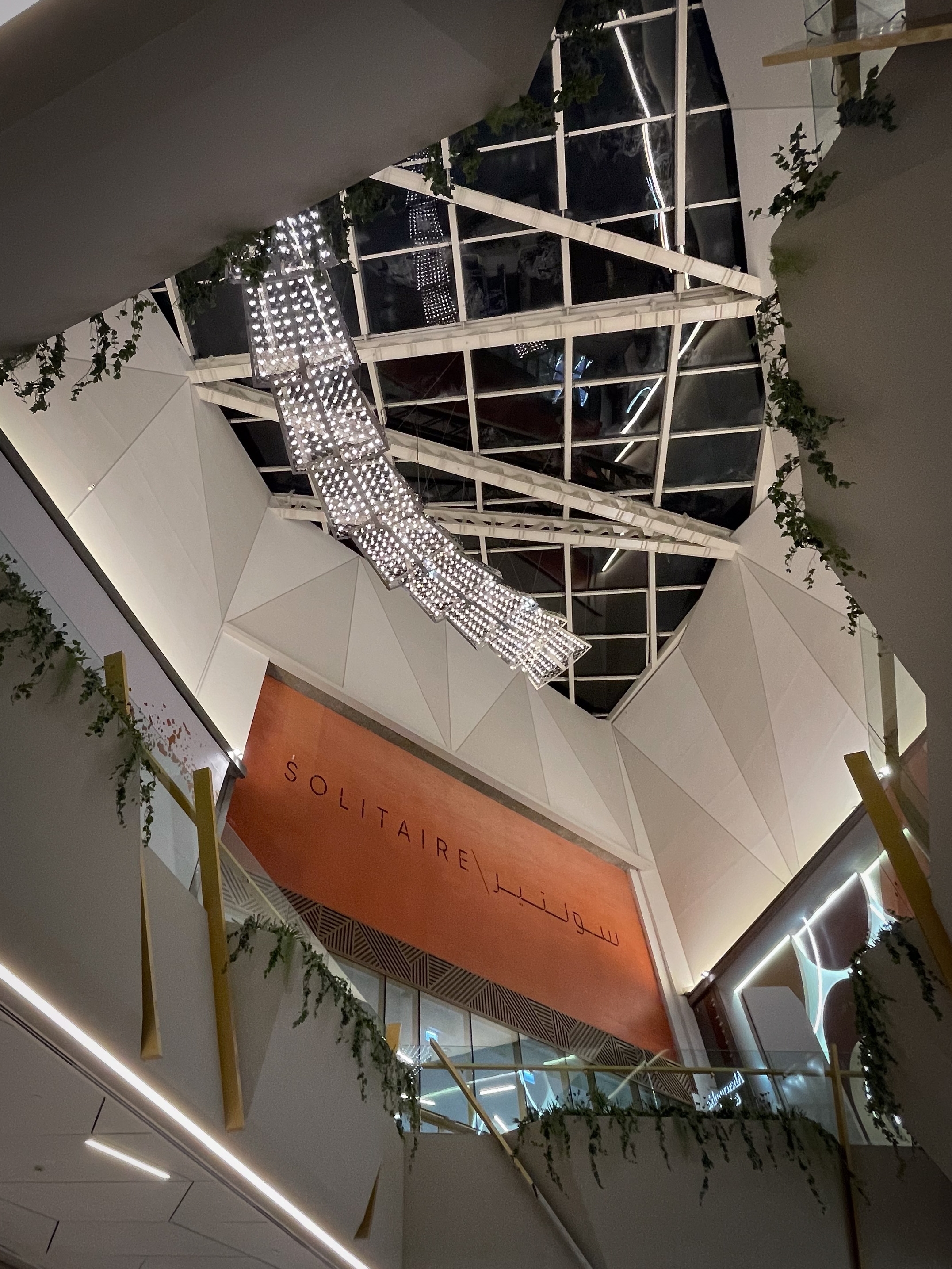 This chandelier is installed in a most luxurious newly built commercial centre Solitaire in Riyadh, Saudi Arabia. It was being developed for almost a year, and after the final approval, it took another year by Crystal Caviar to produce the components. The company Subfossil Oak supplied the electrical components to the project.