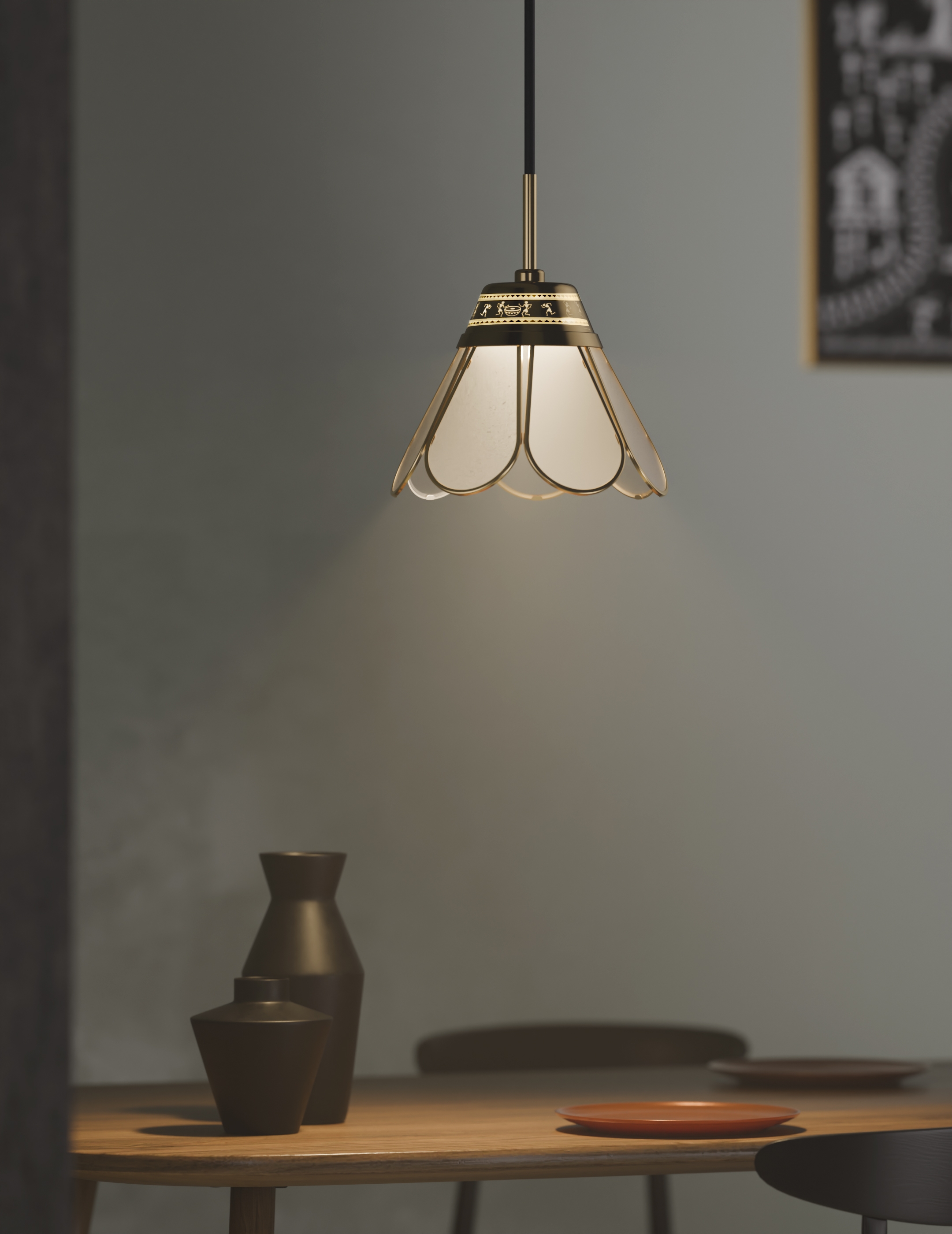 Viraasat—meaning Heritage—is a lighting collection that reimagines this legacy through contemporary design. Comprising six lamps, each draws inspiration from Indian art forms such as Warli and Pichwai, transforming them into sculptural lights that illuminate both spaces and cultural narratives.