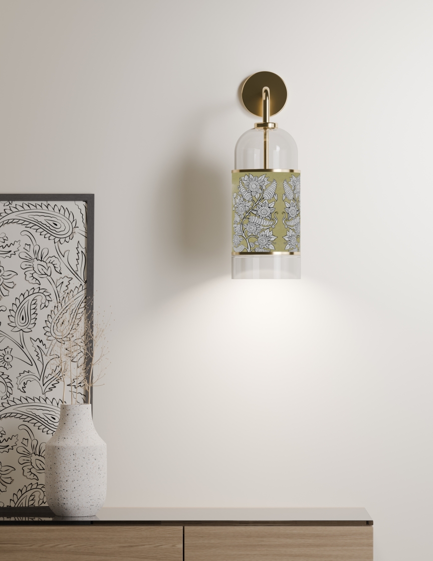 Viraasat embodies sustainability by combining natural, recyclable, and durable materials with India's heritage crafts. Each lamp is crafted from responsibly sourced wood, recyclable brass, glass, paper, natural dyes, and fabric; materials chosen for their low impact and timeless appeal. Wood adds warmth, brass ages beautifully while being endlessly reusable, and glass offers purity with infinite recyclability. Paper and fabrics, often hand-dyed with plant-based colors, carry forward traditions like Kalamkari while remaining biodegradable. By integrating these materials with indigenous artistry, Viraasat reduces its environmental impact & sustains the livelihoods of artists. It preserves heritage not as a relic, but as living craft, reinterpreted for contemporary homes.