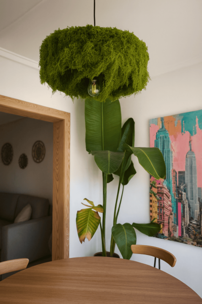 Entry DescriptionThis lamp is a distinctive design object that fuses nature, sustainability, and contemporary elegance. Inspired by organic forms, its structure is enveloped in preserved moss, creating a lush texture and vibrant volume that contrasts beautifully with the warm glow of the exposed Edison bulb. The result is a soft, intimate light that enhances the atmosphere of any space, balancing natural freshness with modern functionality.