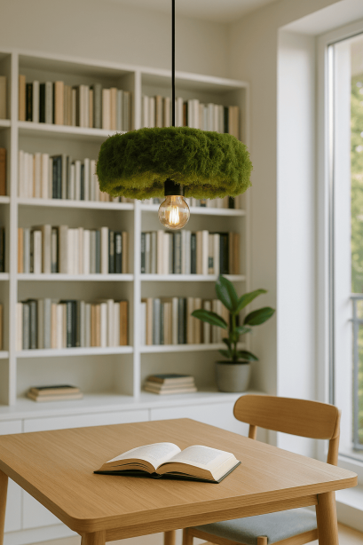 This lamp follows circular economy principles, using natural and durable materials that extend its life and reduce waste. The preserved moss requires no water, soil, or maintenance, while the wood is sustainably sourced. Its handcrafted production minimizes industrial processes and lowers the carbon footprint compared to mass production. At the end of its cycle, components can be recycled or reused, promoting responsible material use. Equipped with an energy-efficient LED Edison bulb, it offers warm, atmospheric lighting with minimal energy consumption. More than lighting, it represents a sustainable design approach that merges beauty, functionality, and environmental responsibility.